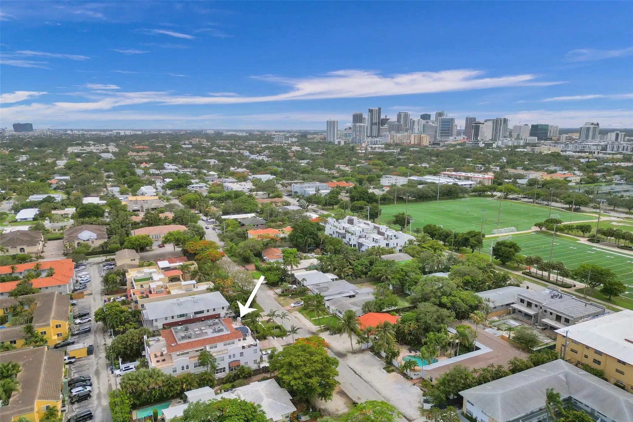 PERFECT FOR AIRBNB. NO HOA. Beautiful townhouse located in the highly desirable Victoria Park neighborhood of Fort Lauderdale. This spacious home offers 3 bedrooms, 3.5 bathrooms, and 2 dens, with 2443 sq ft of living space, plus a private rooftop terrace and pool. Built in 2008 with impact windows and doors throughout. Features include marble floors in the main living areas and wood floors in the bedrooms, two brand new A/C units, a new washer and dryer, and several recently updated appliances. The home has been recently painted and is move-in ready. Fee simple townhouse with no homeowners association and no HOA fees. with a 2-car garage and a driveway that accommodates 4 additional cars. Ideally located about one mile from the beach and Las Olas Boulevard, offering easy access to shop