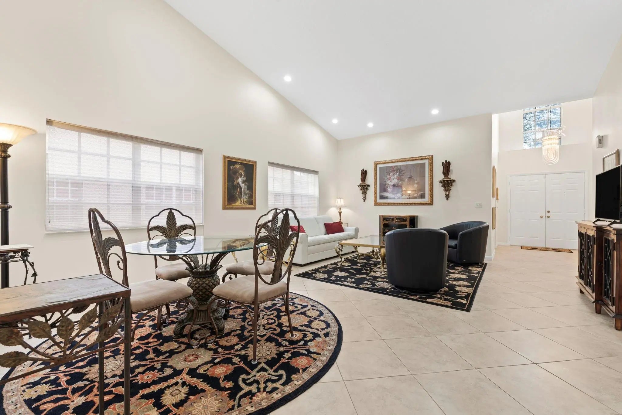 Bright and inviting villa in a vibrant 55+ community boasts 2 spacious bedrooms, 2 baths, and a well-appointed open layout with vaulted ceilings and tile flooring throughout. Enjoy a light-filled living and dining space perfect for entertaining, plus an enclosed Florida room for year-round comfort. Updated kitchen with custom wood cabinets and modern appliances, walk-in closets, attached garage, and spacious laundry room. Relax on your private patio overlooking lush landscaping. Community perks include pool, clubhouse, fitness center, tennis and pickleball courts.
