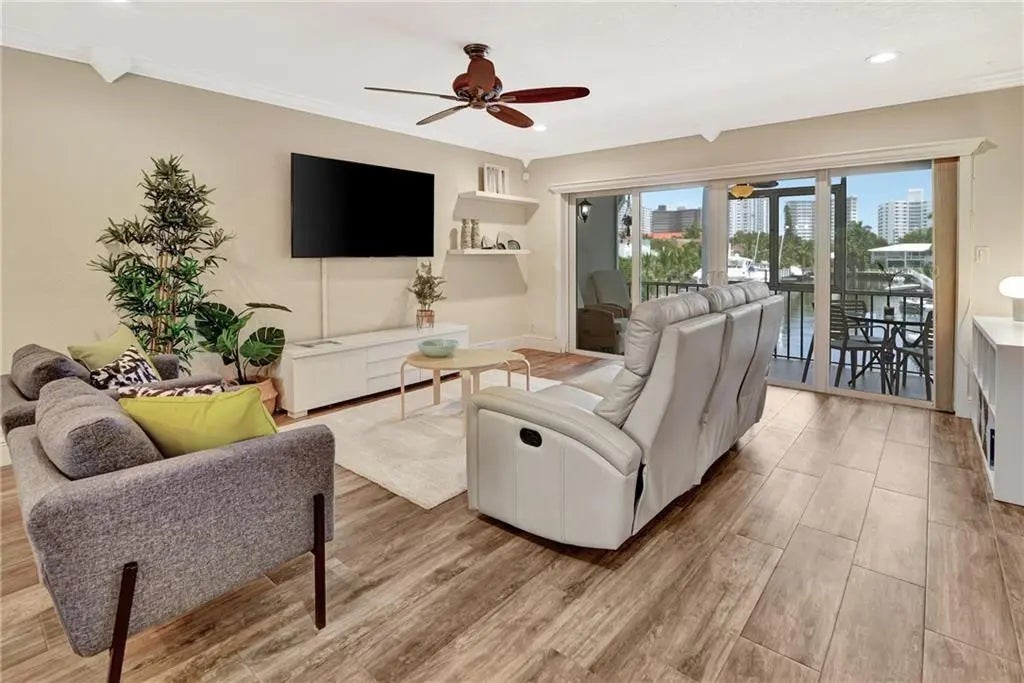 Beautifully updated 2BR/2BA waterfront condo on a wide canal just steps from the Galt Mile beach. This beautifully upgraded residence features impact windows/doors, wood-look tile, upgraded kitchen with stainless appliances, upgraded baths, full-size washer/dryer, tankless water heater, and modern finishes throughout. Enjoy serene water views from the screened balcony. Boat dockage available through the association at an amazingly low cost of just $32 per YEAR! Deep water and direct intracoastal access make this condo a boater's dream. Prime walkable location near dining, cafés, shopping, and the best of coastal Fort Lauderdale living. This is an ideal location for just about any lifestyle or activity level. You simply can't beat it. Turn key sale. Just bring your toothbrush and clothes!