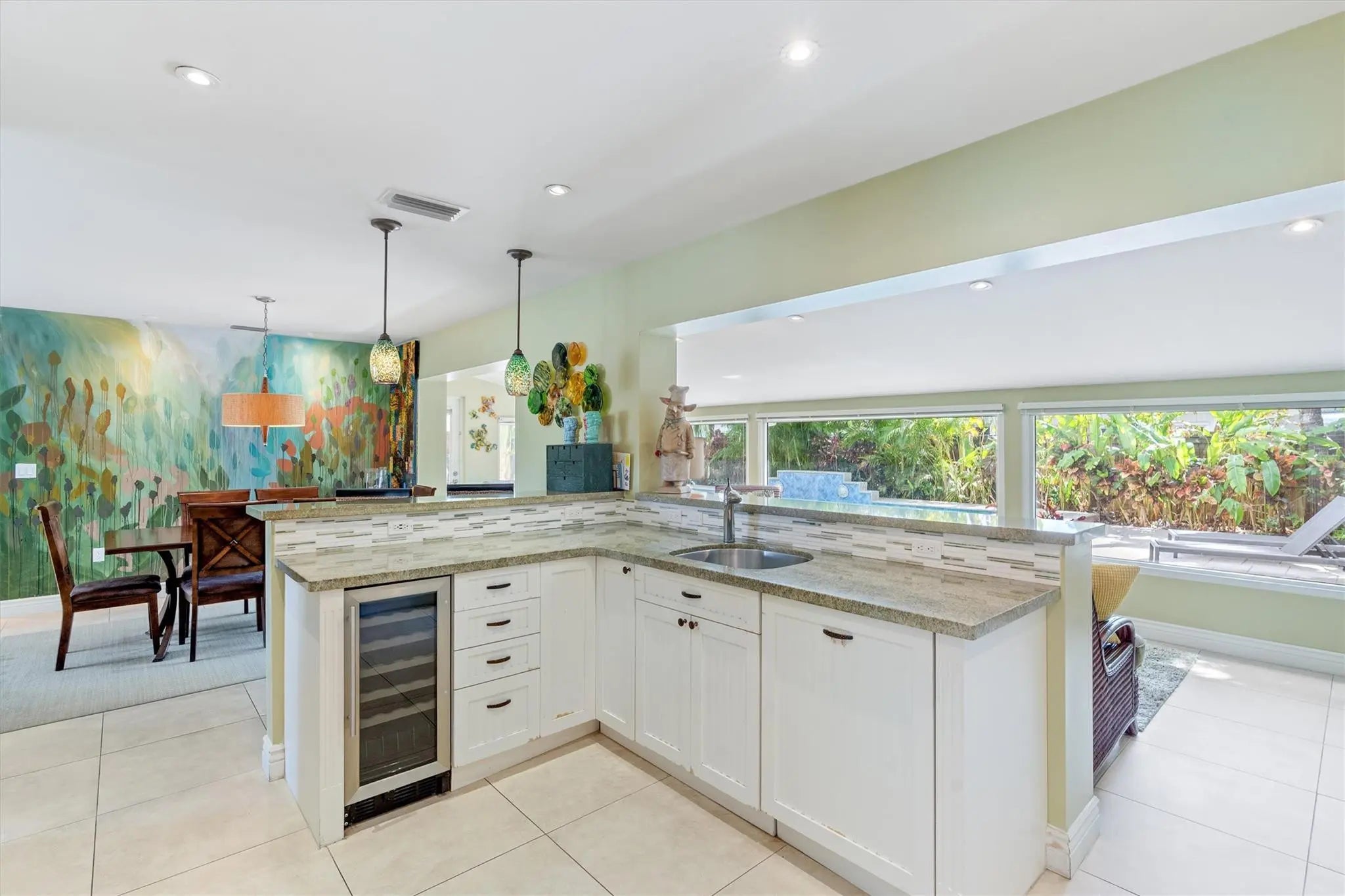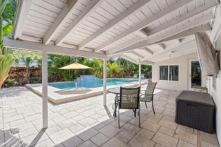 This Tropical Oasis in central Wilton Manors has everything buyers expect in a remodeled home including a new roof (2024); an open floor plan with triple split bedrooms (configured as 2 + Den); a renovated kitchen with breakfast bar, pass-through to the Family room, stainless appliances, stone countertops & wine storage; relaxing views of the heated, salt-water pool (2012); updated mosaic tile bathrooms with frameless glass; impact windows & doors (2012); new AC (2024); 2 carports with circular driveway; and a professionally-landscaped yard with auto sprinklers, landscape lighting & well-water treatment system. Located on a quiet street minutes to beaches and everything Wilton Manors has to offer including restaurants, nightlife, amenities, etc. Come see this special home before it's gone!