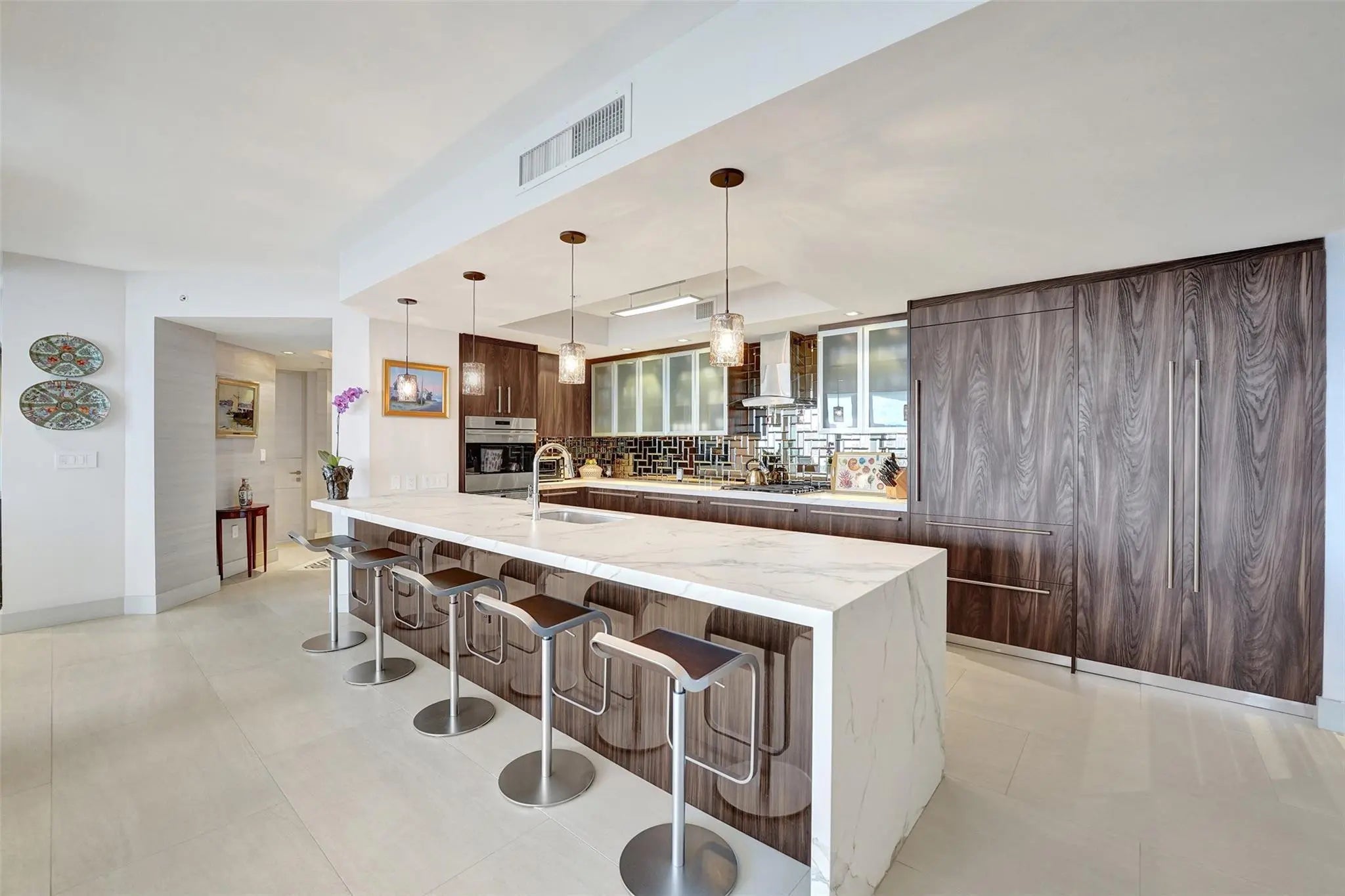 EXPERIENCE THE PINNACLE OF HIGH-END LIVING AT RIVA IN THIS CUSTOM-DESIGNED 3BD/3.5BA PLUS OFFICE RESIDENCE. A PRIVATE ELEVATOR WHISKS YOU TO YOUR OWN FOYER, OPENING INTO A SPRAWLING FLOORPLAN DEFINED BY BREATHTAKING OCEAN AND WATER VISTAS FROM EVERY ROOM. NATURAL LIGHT POURS OVER METICULOUSLY CRAFTED CUSTOM FINISHES, CREATING A MODERN MASTERPIECE. THE PROFESSIONAL KITCHEN FEATURES A SUB-ZERO AND WOLF APPLIANCES WITH A GAS COOKTOP, WALL OVEN, AND GRAND ISLAND. ENTERTAINING FLOWS SEAMLESSLY ONTO THE 70' PRIVATE BALCONY WITH A BUILT-IN ELECTRIC BBQ. RETREAT TO THE OWNER’S SUITE, BOASTING A MASSIVE WALK-IN CLOSET AND A "ZEN" BATHROOM WITH A HUGE WALK-IN SHOWER. RIVA OFFERS LUXURY HIGH-END AMENITIES INCLUDING A WATERFRONT POOL, GYM, VALET PARKING AND MORE! THIS ONE IS A MUST SEE!