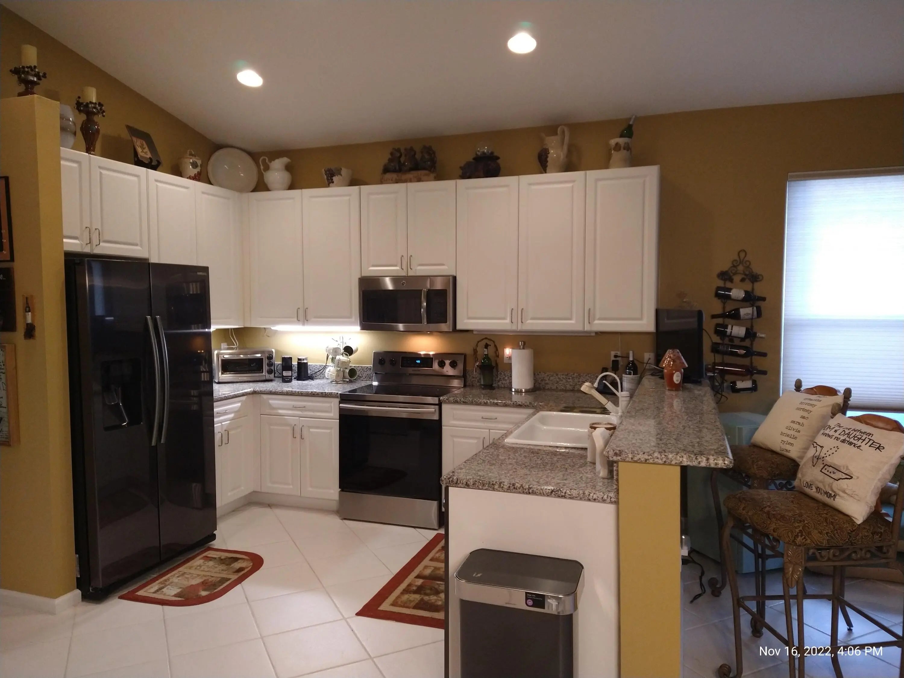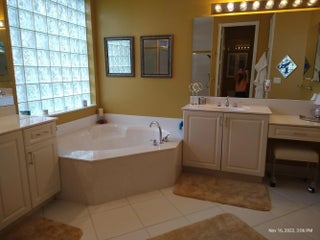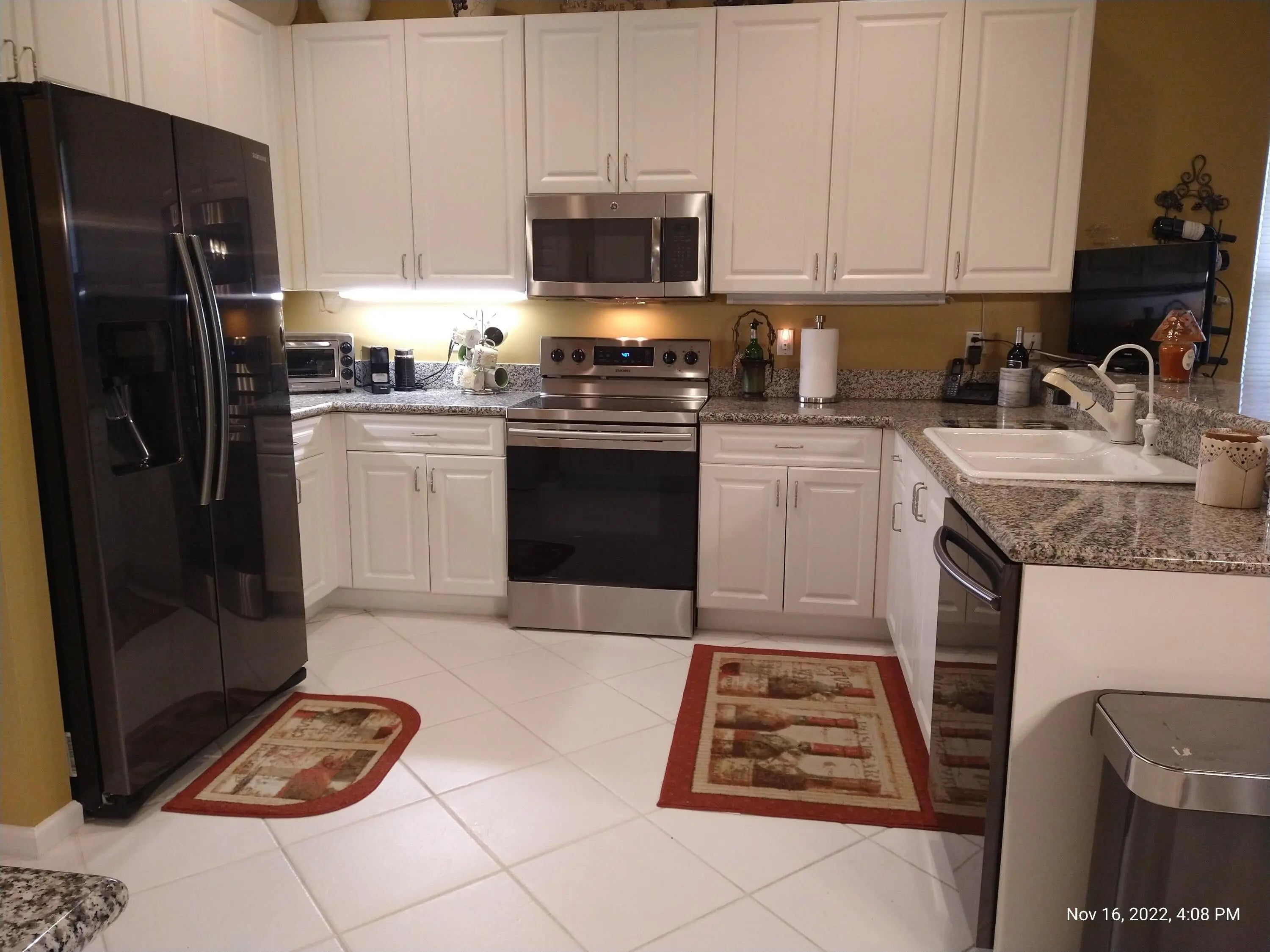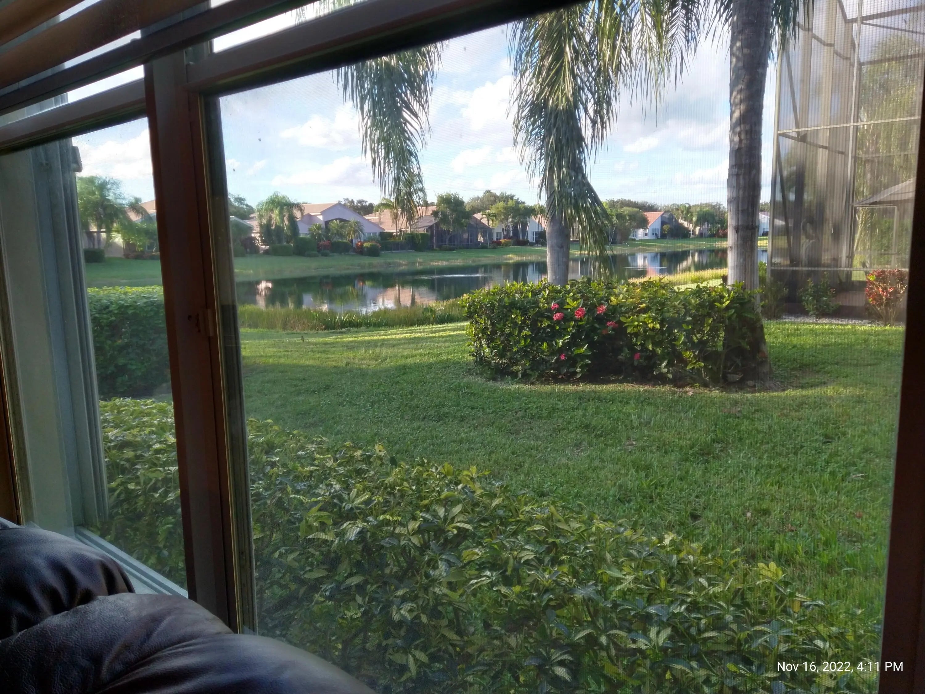 RARE OVERSIZED CORNER LOT w/LAKE VIEWS– DRASTICALLY REDUCED FOR QUICK SALE- BEST OFFER! AMAZING HOME boasts wood look ceramic tile in all bedrooms, open floor plan, vaulted ceilings and neutral tile in all main living areas. Spacious primary suite includes dressing & sitting area, 2 walk-in closets, dual vanities, Roman tub & separate shower. Screened private patio w/view of lake & palm trees. MAJOR UPGRADES: High-end kitchen appliances | LG washer & dryer | Hunter Douglas custom blinds |A/C Quantum LED allergy air purification system | Reverse-Osmosis water filtration | & FULL ACCORDION SHUTTERS. Roof is original-was inspected, written report confirms 7/8 years of remain life. NEW $8 MILLION CLUBHOUSE RENOVATION just done, owner paid all assessments! See listing for what HOA INCLUDES