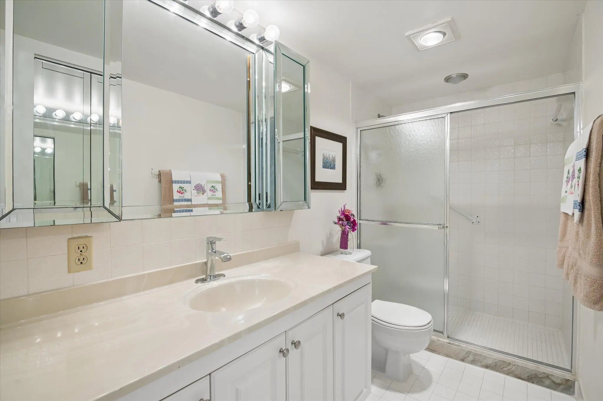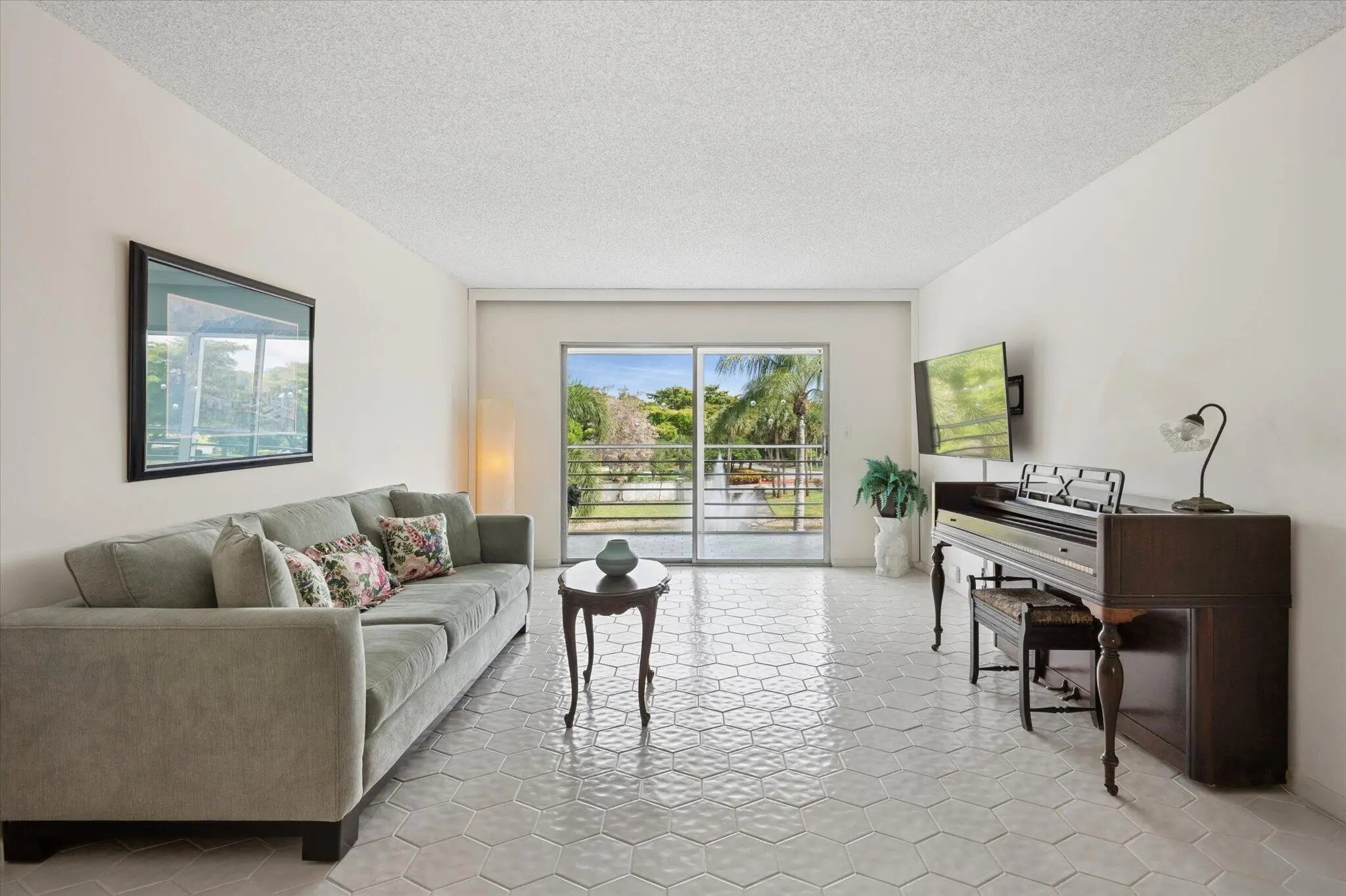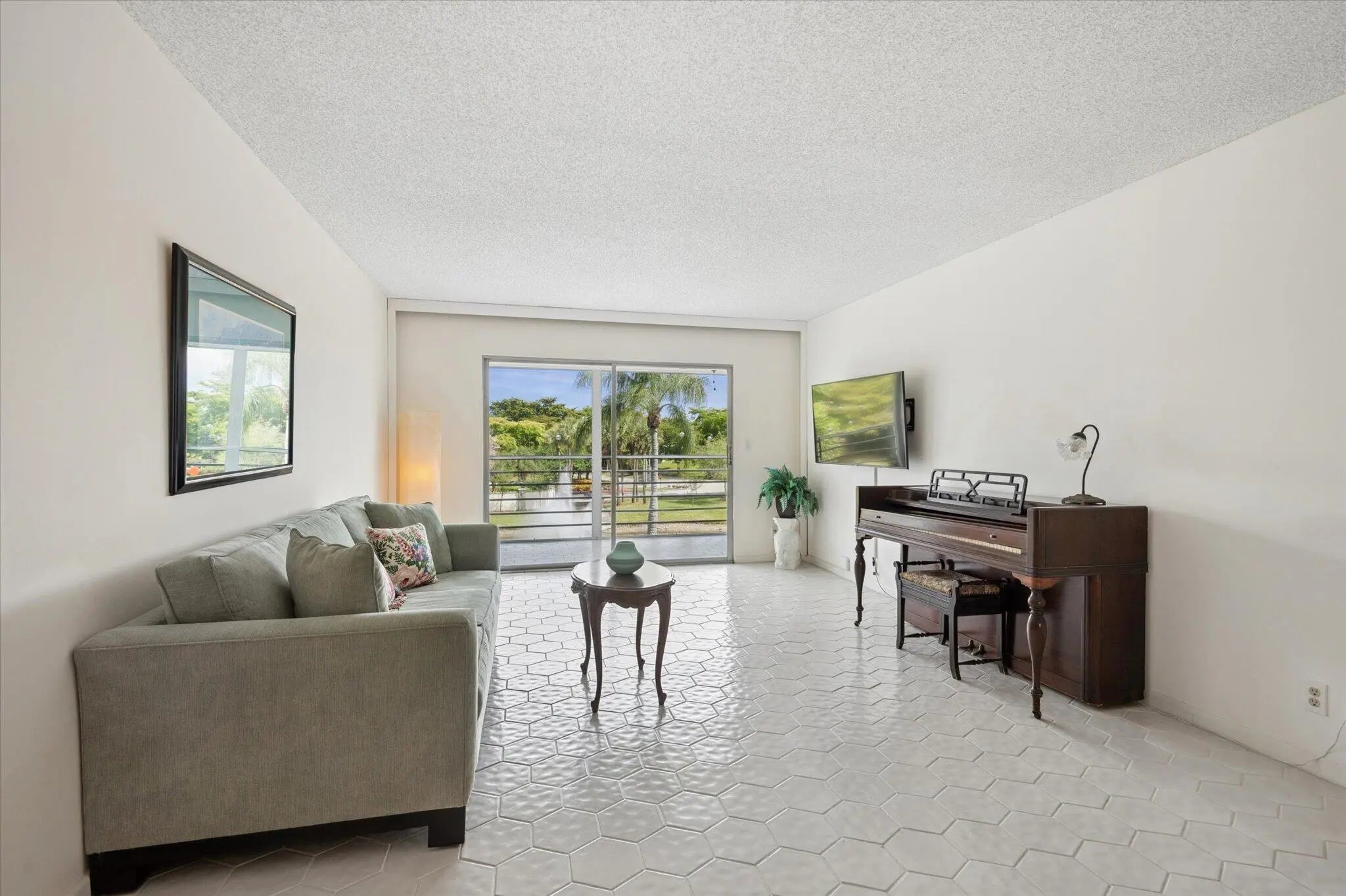 WOW! Unobstructed water and fountain views steal the show in this beautifully maintained condo in desirable Antigua Village/Wynmoor. Light filled and inviting, the spacious layout features beautiful white tile floors throughout, a bright white interior, and elegant plantation shutters. The updated kitchen offers white cabinetry, stainless steel appliances and breakfast area, opening to the living and dining areas. Perfect for relaxing or entertaining. Slide open the doors to the expansive screened patio and enjoy serene lake and fountain views creating a peaceful indoor/outdoor living space. Spacious bedrooms include a primary suite with walk in closet and patio access. Life in Wynmoor means enjoying exceptional amenities: Theater, clubhouse, pickleball, tennis, clubs & more!