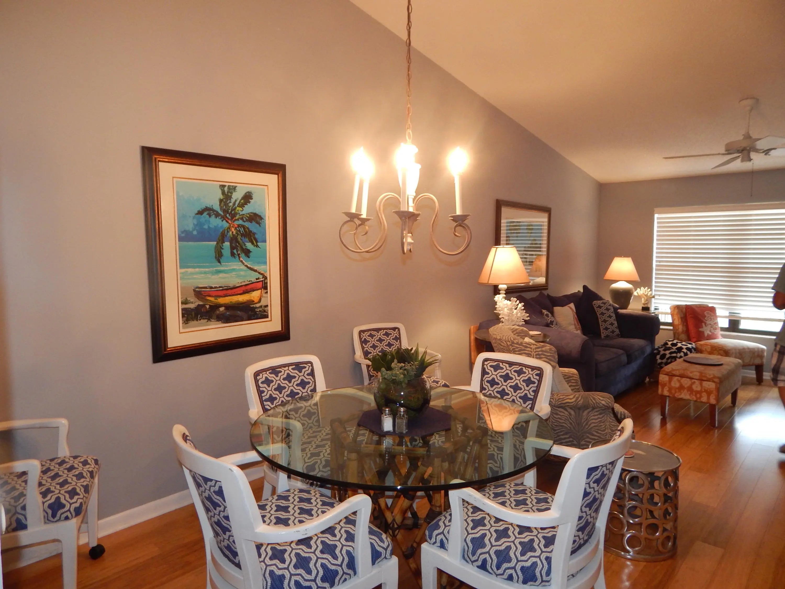 A rare opportunity to lease this super clean and tastefully decorated 2 bedroom villa in desirable Hobe Sound. This villa has new bamboo wood floors throughout, granite counter tops in the kitchen. Unit is open, light and bright with a private screen in patio. The community has a crystal clear solar heated pool so you are able to swim even on our cooler winter evenings. The community is located only a short distance from our beautiful Atlantic coast beaches, shopping, restaurants and entertainment. Rentals less than 6 month and one day are subject to sales tax. Owners will consider annual furnished rental $1800 monthly.