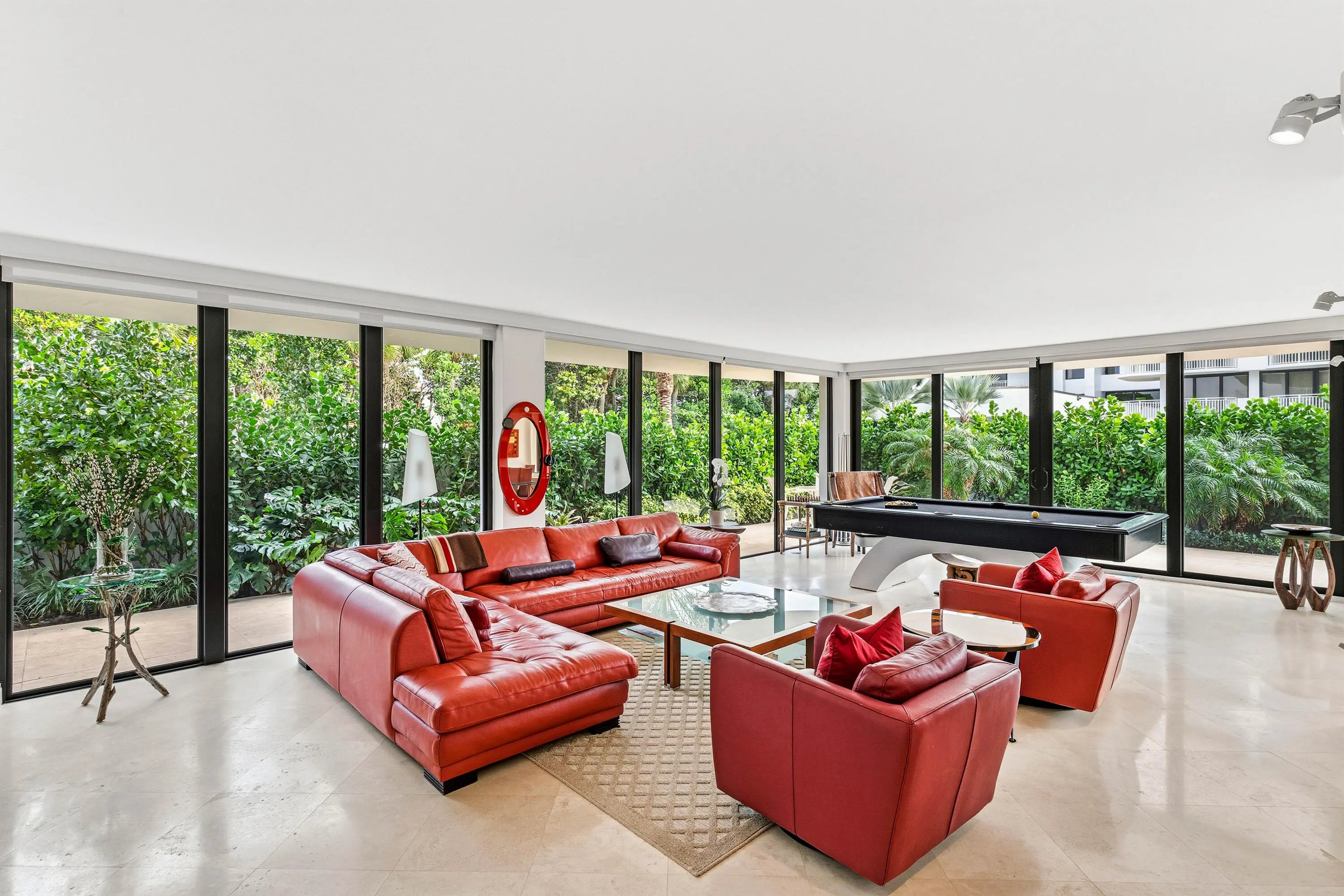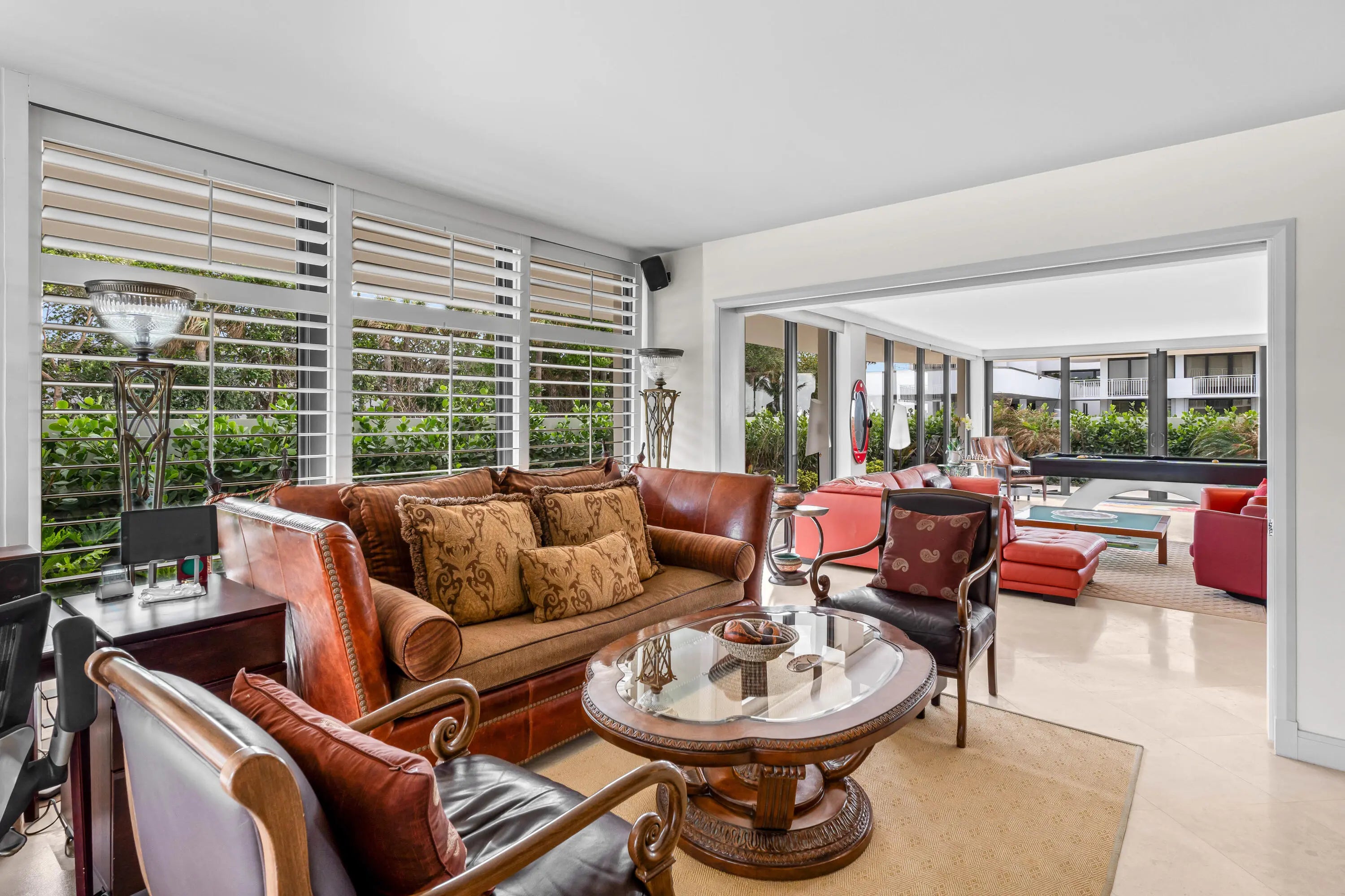 Spacious 3 bedroom, 3 bathroom Palm Beach Stratford garden apartment with a 885 sqft terrace to relax, entertain and enjoy the ocean breezes. Located in a prestigious building with only 42 luxury units, this total high end, modern renovation features floor to ceiling impact doors leading from every room to the terrace surrounded by tropical landscaping, offering living like a private oceanfront home with direct access to the pool and spa, Oceanfront sun deck, and wide beach and Ocean. Other features include marble floors, luxurious baths, and custom chef's kitchen with top of the line appliances and fixtures. Amenities include 24 hour doorman, fitness center, tennis courts, community room, and 2 space garage parking. Located close to Five Star hotels and Palm Beach Par 3 Golf Course with clubhouse restaurant. Short drive to Worth Avenue and cultural centers.