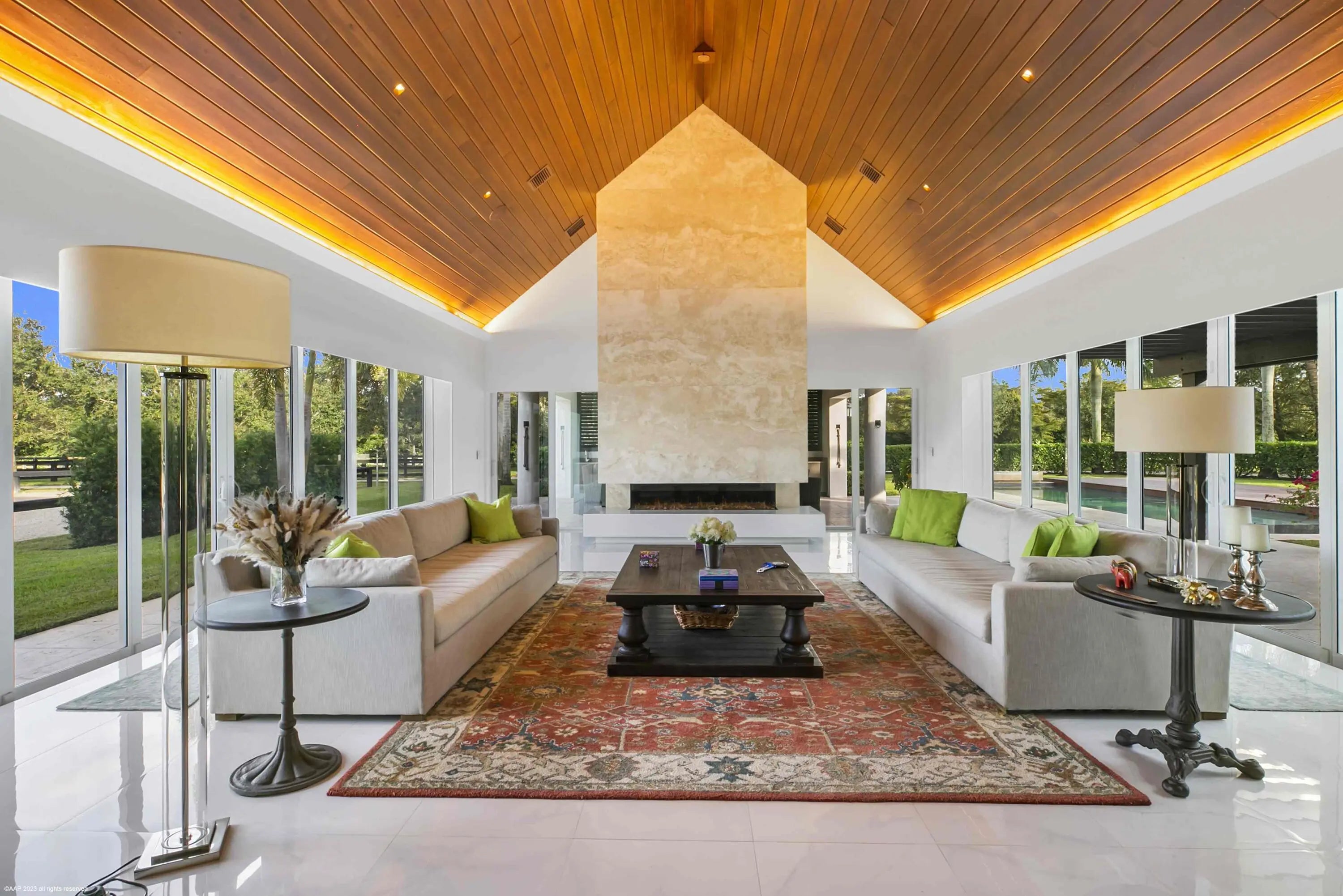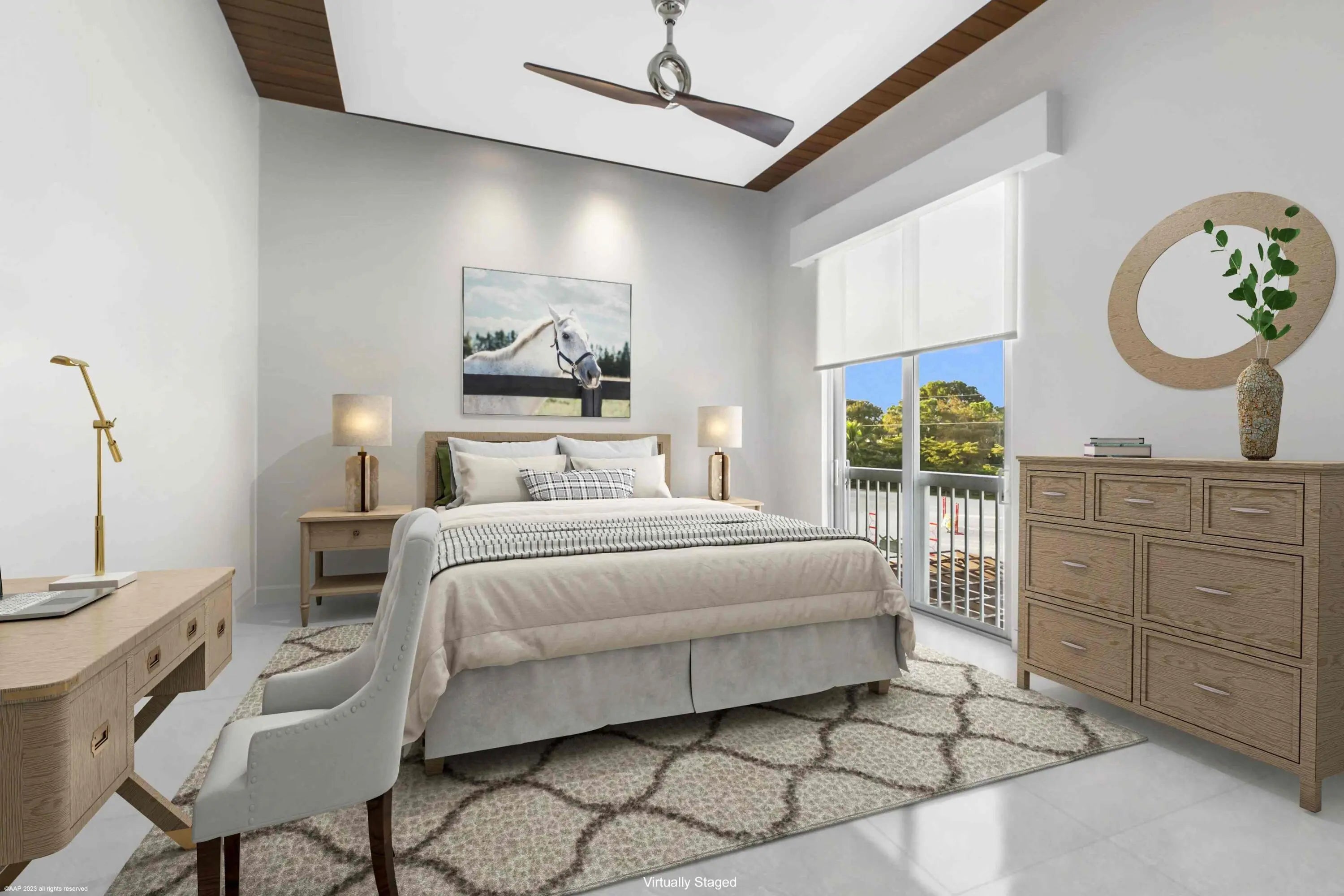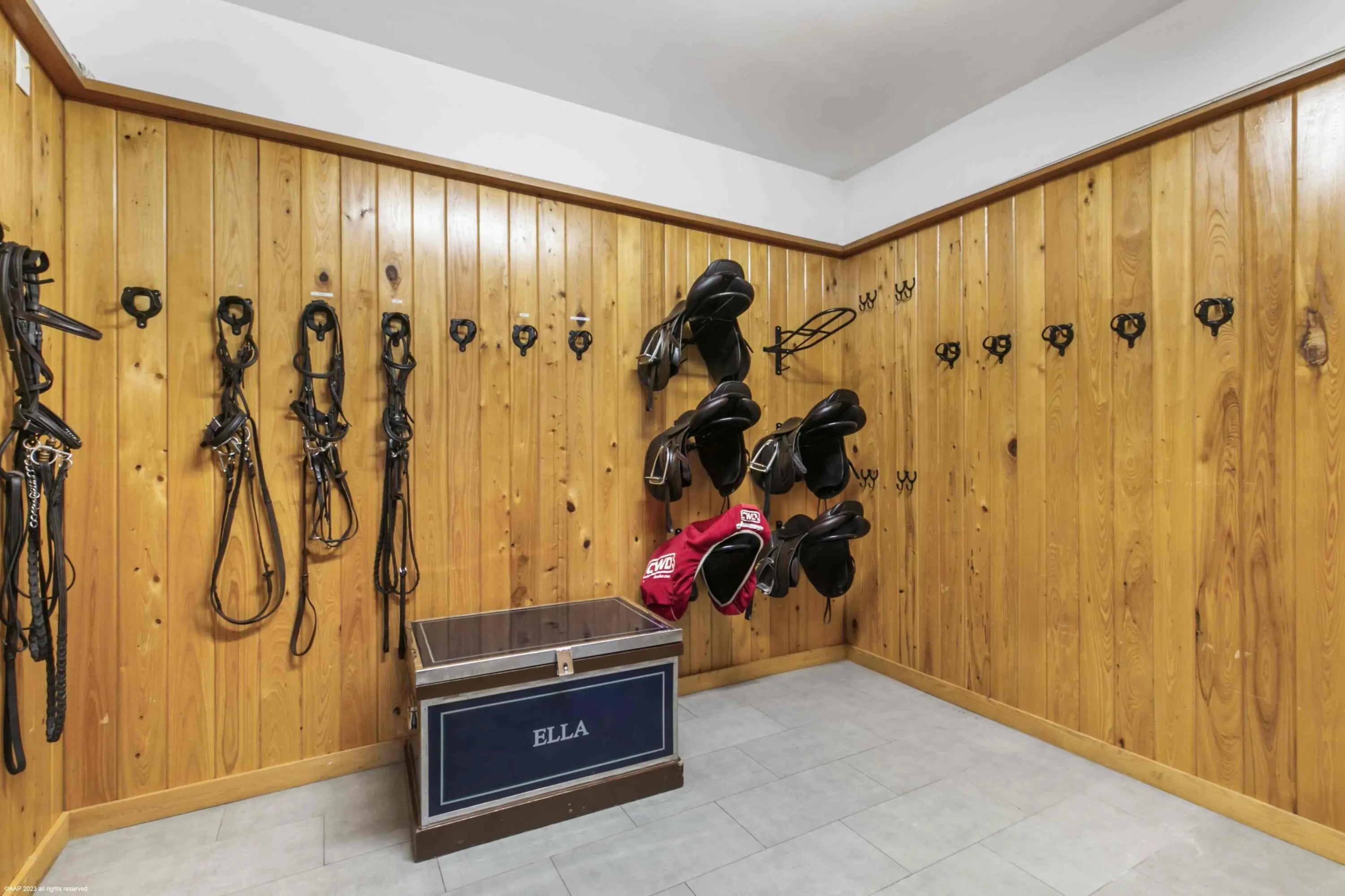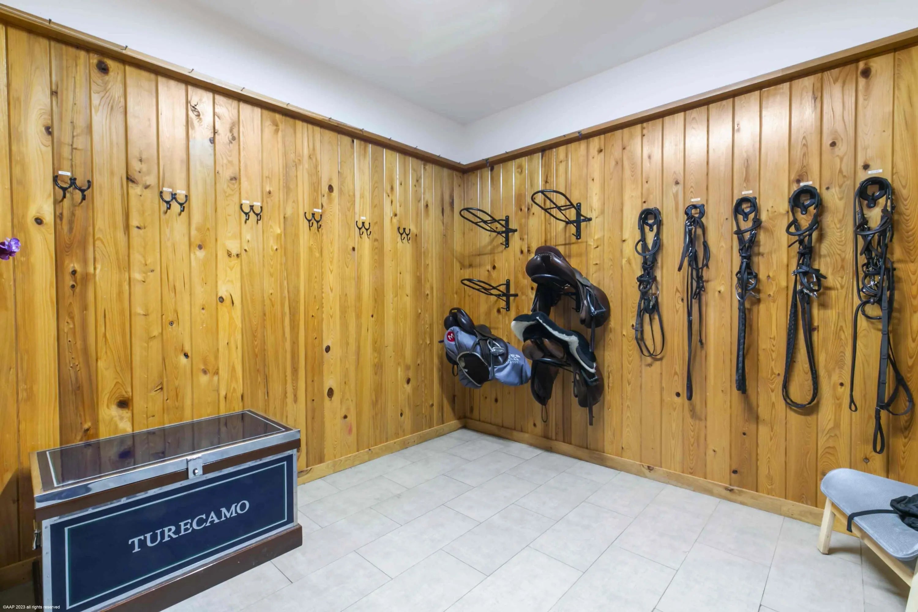 This first-class gated equestrian estate located in Saddle Trail of Wellington, within hacking distance to the show! Enjoy just about a one mile hack to Wellington International all on maintained bridle paths. This all-inclusive property boasts a beautiful and thoughtfully designed 16-stall barn, full equestrian amenities, and a luxurious, designer home, all nestled on over 4 acres in the heart of Wellington's horse country. The stately barn features wide rubber-matted center aisle-ways with 12x12' matted stalls, 2 tack and 2 feed rooms, fly spray system and outdoor grooming areas. There is also a rider's lounge, office and 2 full bathrooms. There are 2 all-weather riding arenas, a round pen and 8 grass paddocks. Property has city water. Seller financing possibly available The properties modern residence offers stunning marble floors, cathedral tongue and groove ceilings, a grand wood and glass staircase, state-of-the-art finishes throughout, and more. The sprawling home includes a 3-car garage, 4 bedrooms, 5 full and 1 half bathrooms, family room, formal living room with an exquisite fireplace, formal dining room, game room with full bar, and an indoor gym overlooking the pool area. The European-styled chef's kitchen is equipped with Thermador double ovens, steam oven, induction cooktop, oversized refrigerator, wine cooler, coffee maker & an ice maker. Plentiful outdoor living areas include an expansive second floor patio, the perfect place to entertain and enjoy views of the entire property. A spectacular pool area and a covered patio offers a summer kitchen with both gas and charcoal grills and a scenic view of the riding arenas. House: 6,942 sq ft under air 8,960 sq ft total 4 bedrooms/6 bathrooms