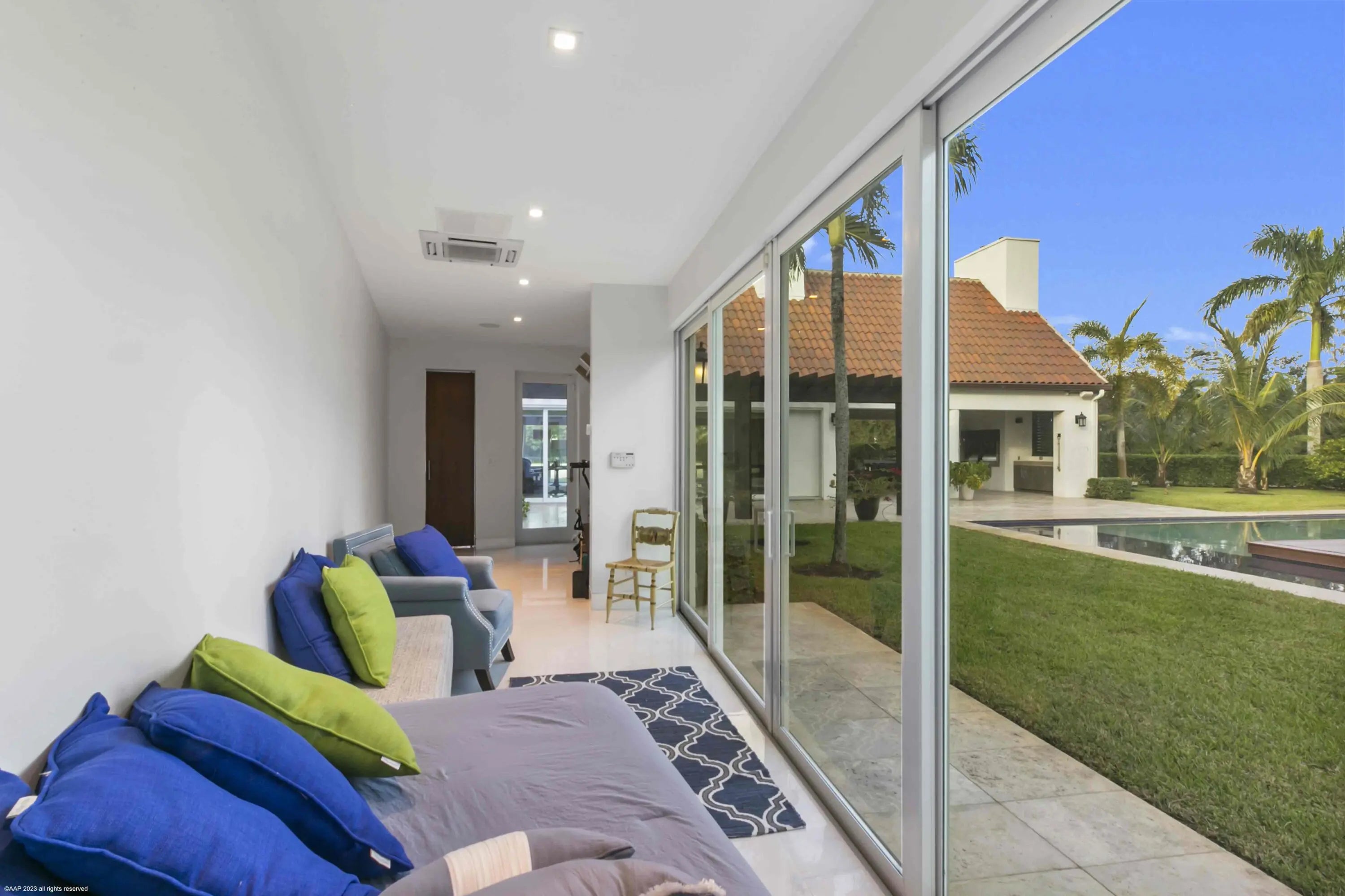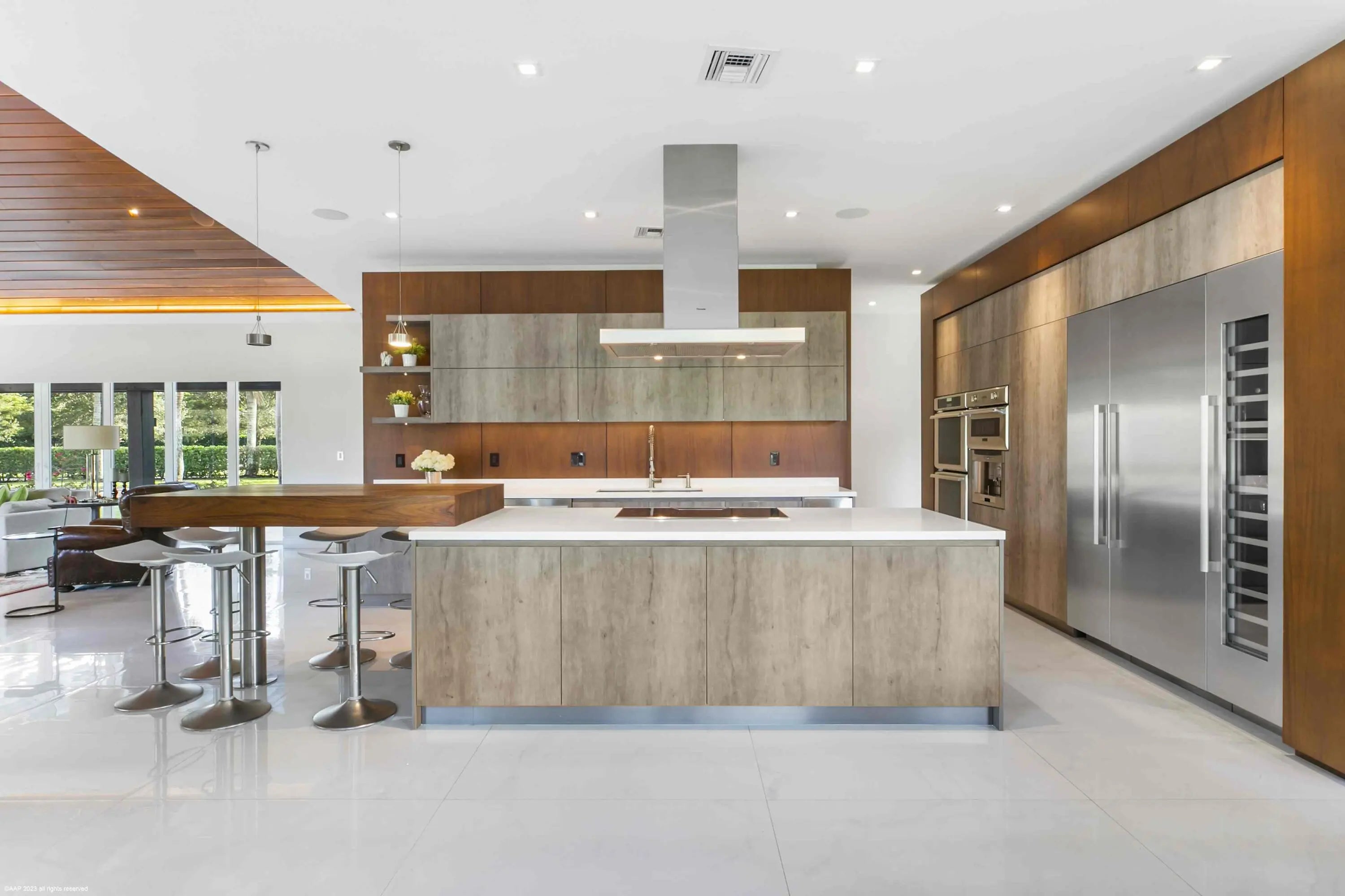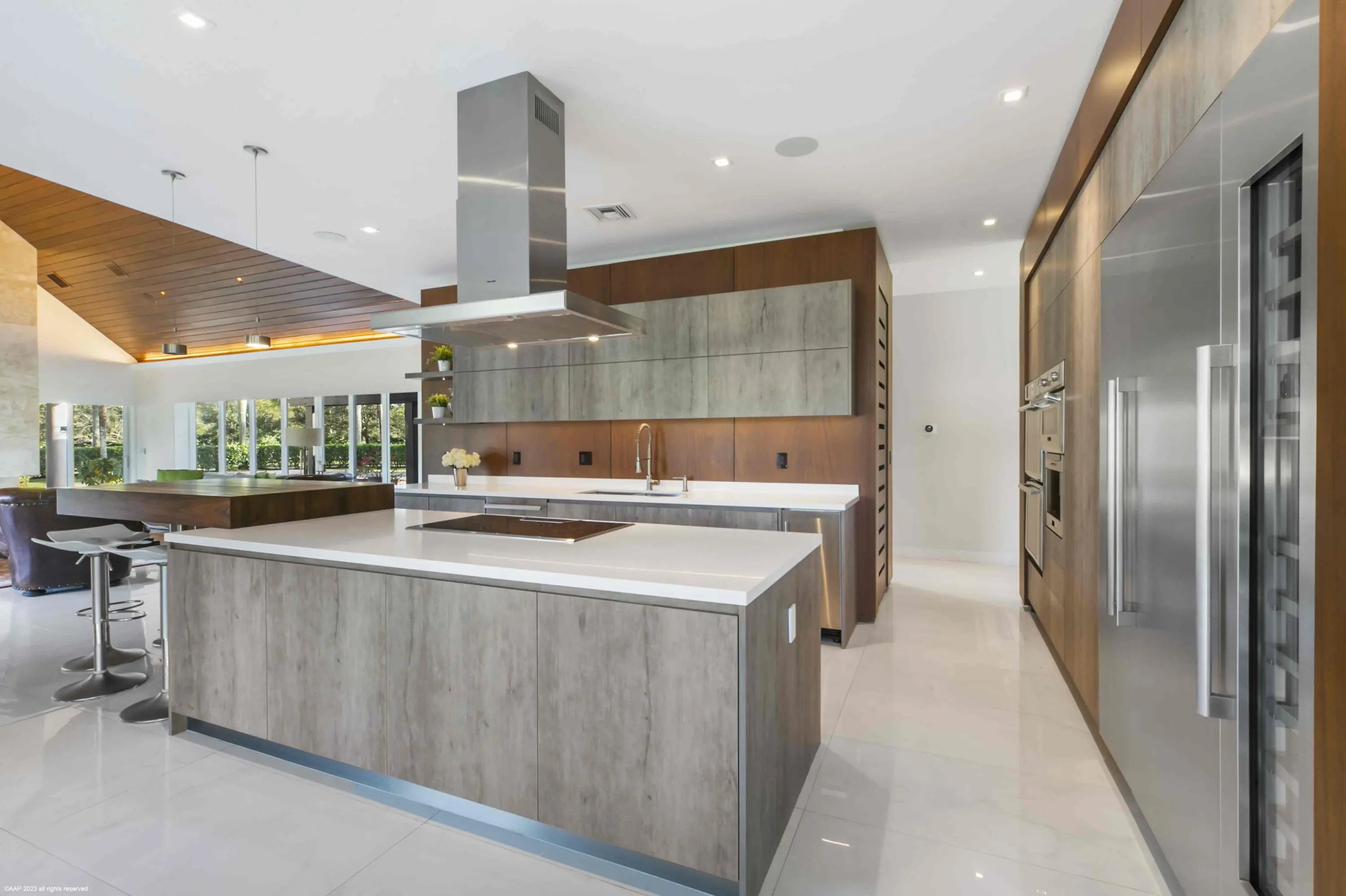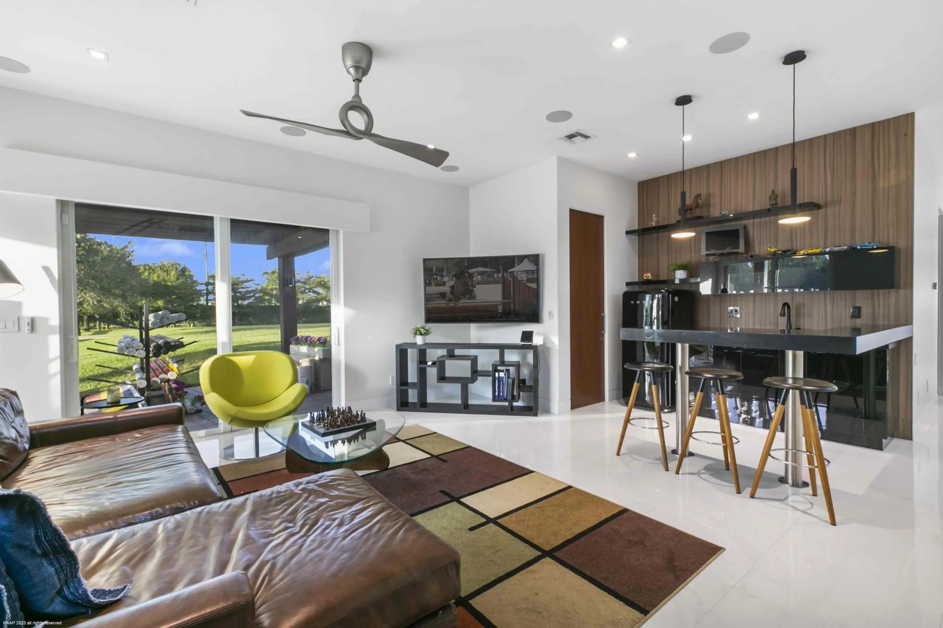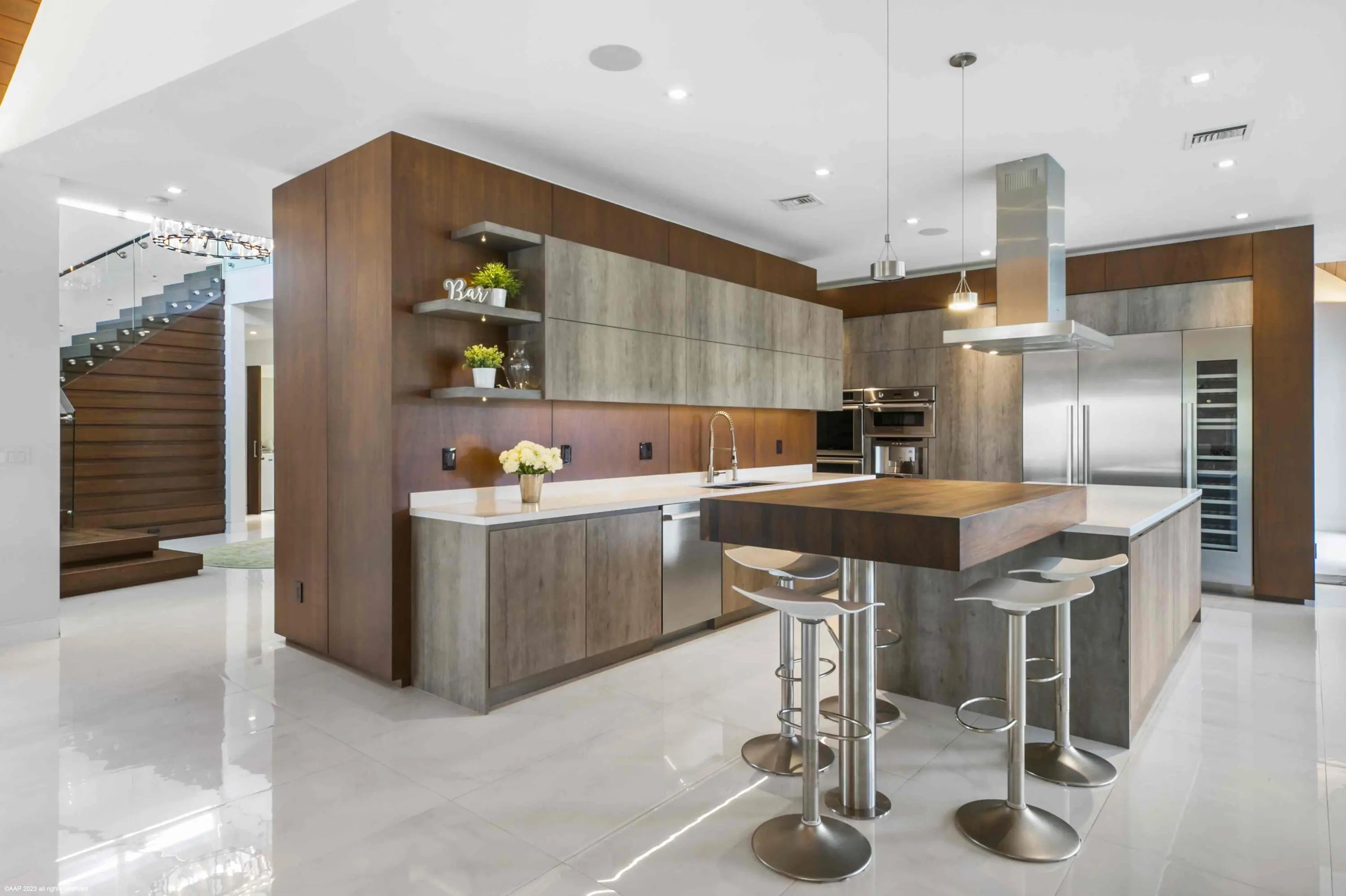 This first-class gated equestrian estate located in Saddle Trail of Wellington, within hacking distance to the show! Enjoy just about a one mile hack to Wellington International all on maintained bridle paths. This all-inclusive property boasts a beautiful and thoughtfully designed 16-stall barn, full equestrian amenities, and a luxurious, designer home, all nestled on over 4 acres in the heart of Wellington's horse country. The stately barn features wide rubber-matted center aisle-ways with 12x12' matted stalls, 2 tack and 2 feed rooms, fly spray system and outdoor grooming areas. There is also a rider's lounge, office and 2 full bathrooms. There are 2 all-weather riding arenas, a round pen and 8 grass paddocks. Property has city water. Seller financing possibly available The properties modern residence offers stunning marble floors, cathedral tongue and groove ceilings, a grand wood and glass staircase, state-of-the-art finishes throughout, and more. The sprawling home includes a 3-car garage, 4 bedrooms, 5 full and 1 half bathrooms, family room, formal living room with an exquisite fireplace, formal dining room, game room with full bar, and an indoor gym overlooking the pool area. The European-styled chef's kitchen is equipped with Thermador double ovens, steam oven, induction cooktop, oversized refrigerator, wine cooler, coffee maker & an ice maker. Plentiful outdoor living areas include an expansive second floor patio, the perfect place to entertain and enjoy views of the entire property. A spectacular pool area and a covered patio offers a summer kitchen with both gas and charcoal grills and a scenic view of the riding arenas. House: 6,942 sq ft under air 8,960 sq ft total 4 bedrooms/6 bathrooms
