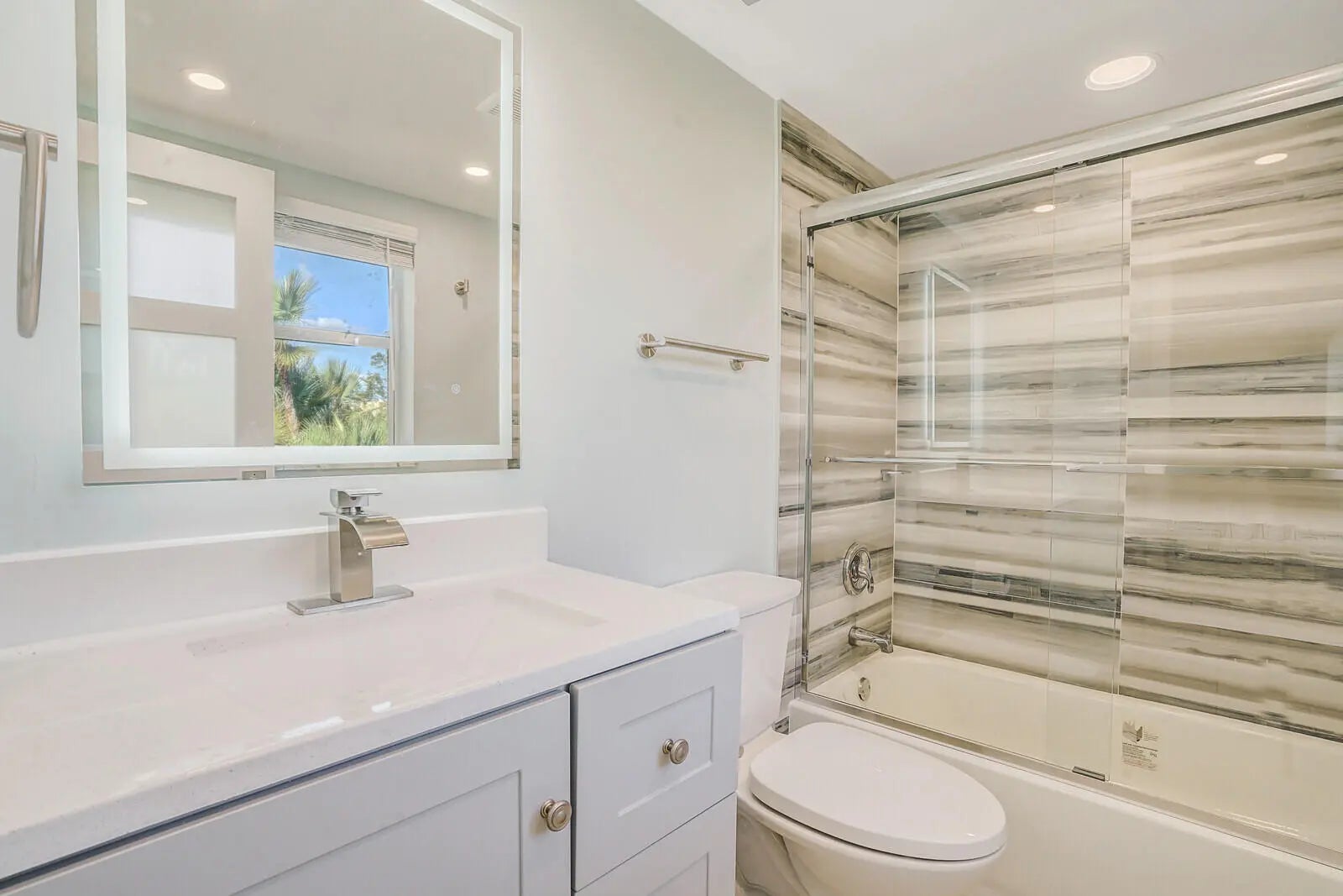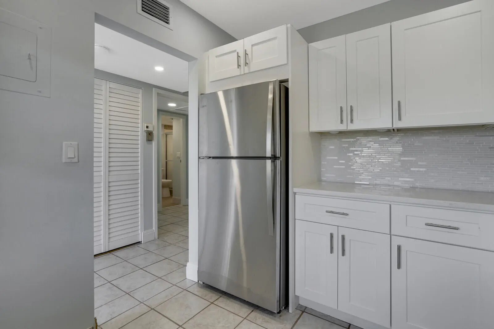 2BR/2BA unit in Abbey Village located in the Villages of Oriole. Beautifully renovated kitchen with white shaker cabinets, stainless appliances and quartzite counters. Both bathrooms, including primary ensuite, are new as well. Building laundry just steps away. Community clubhouse with 2 pools, exercise room and sauna, auditorium with stage, library and card room are just some of the amenities to enjoy. No pets, 1 person must be 55. Walk to shopping, restaurants and short drive to Delray's trendy Atlantic Avenue and to ocean beaches. Come check it out today!