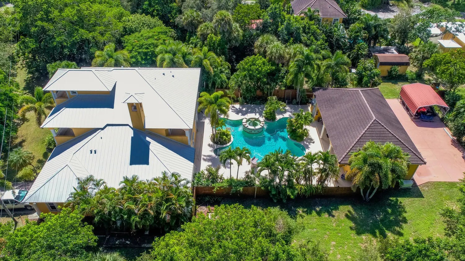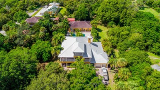 **3+ Acre Riverfront Estate Home with Attached 2-Car Garage and Detached 1,600 Sq Ft 4-Car Garage with/A/C, Featuring Bath, Gym, and Workshop, Generator, Carport, and Concrete Pad.**This property boasts a private 435-foot boat dock/pier, built in 2017, and is situated high and dry with a 30-foot el (as per the owner). Set back over 250 feet for added privacy, this home offers 4,600 square feet of a/c space and a total of 6,400 square feet, 10-foot ceilings spanning across three stories. It includes 4 bedrooms, 4 baths, a kit w/ granite counters, a double oven, a media room, and covered balconies front and rear, newer aluminum roof, impact windows 2nd and 3rd floors, and electric panel. Enjoy a stunning 60,000-gallon free-form saltwater pool Explore paradise on Florida's Treasure Coast
