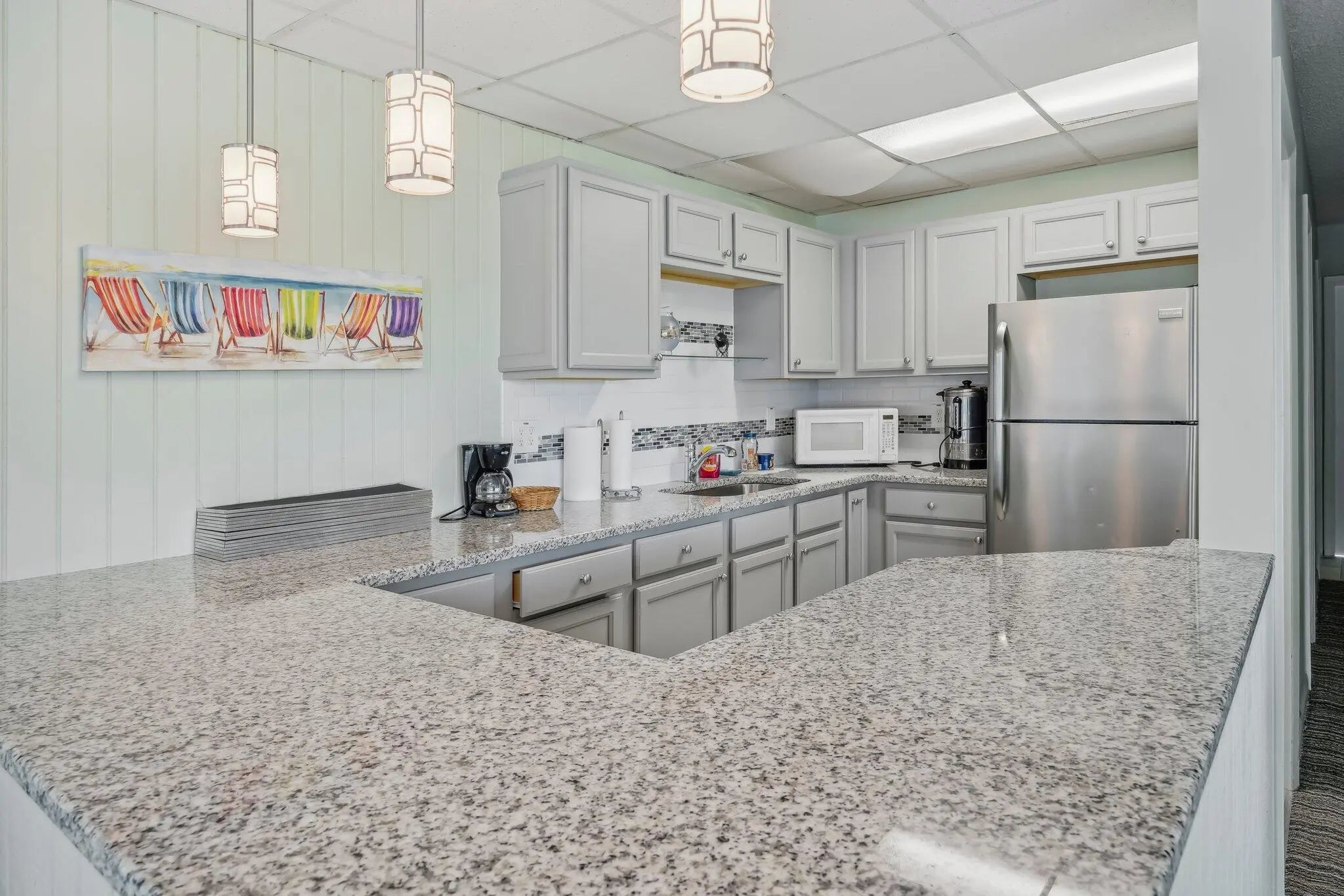 Experience relaxed coastal living in this furnished 2-bed, 2-bath Ocean Ridge condo on A1A. This spacious, updated 2nd-floor gem offers NEW impact windows ('23-'24), A/C and ducts ('22), appliances ('23 & '24), electrical panel ('22), a fully renovated kitchen with granite counters, kitchen bar seating and wine cooler, and updated bathrooms. Enjoy garden and pool views from the 18-ft enclosed patio. Exclusive amenities include private beach access, boat dockage, heated pool, two clubhouses, fitness center, and BBQ deck. Minutes to downtown Boynton Beach & Delray, shopping, dining, and recreation. Move-in ready!