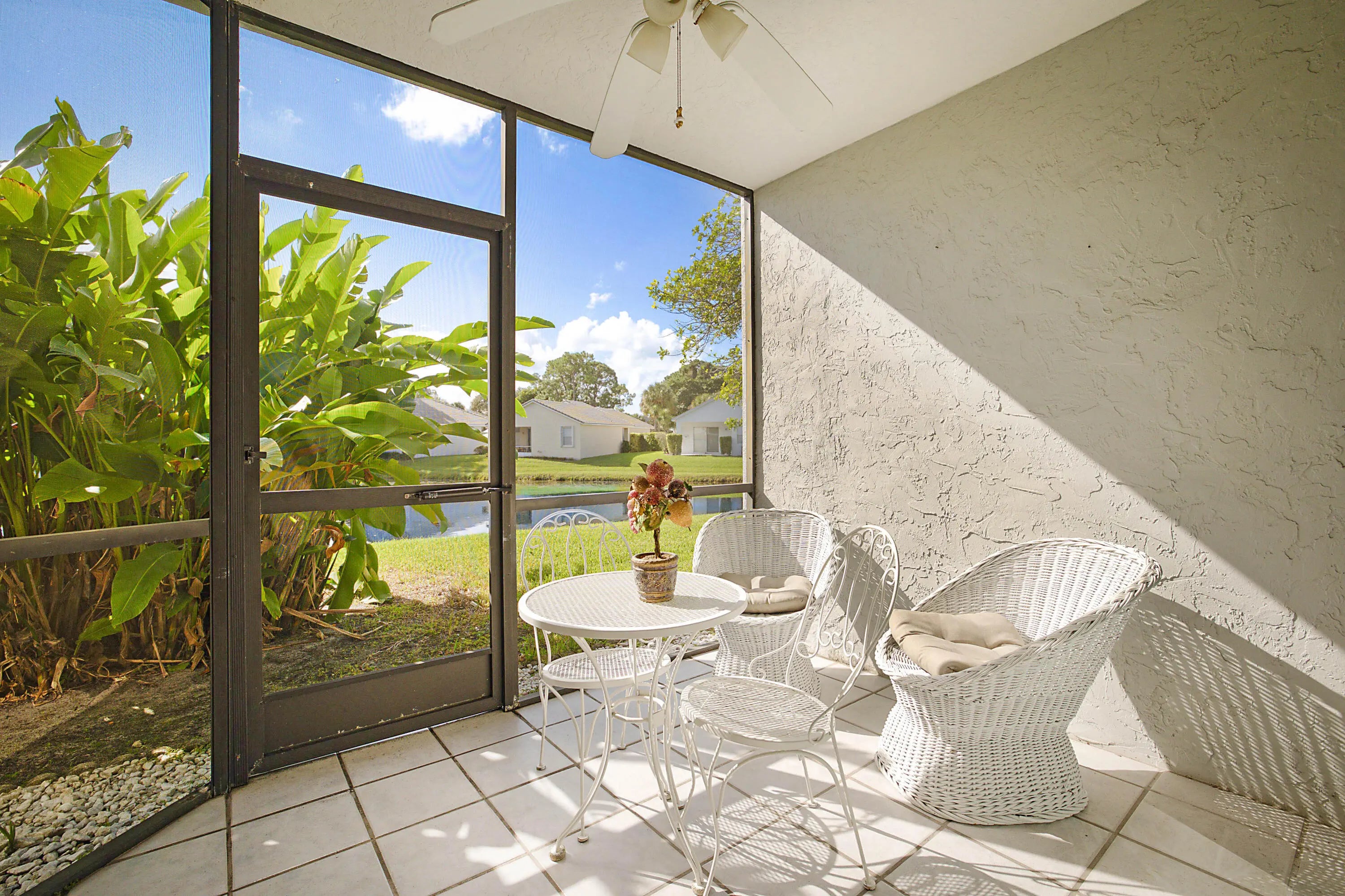Beautiful 2 Bed/2 Bath 1st floor Condo in the highly desirable developent of River Bridge. Relax on the Patio with its serene water view. Kitchen recently redone with white cabinets. Walking distance to the Pool. Manned-gated community with resort style amenities, Maintenance fees include access to 3 heated pools, spa, 6 lighted Tennis courts, basketball, pickle ball, billiard room, gym, playground, Performance Center, Cable and internet. Close to PBI Airport, shopping, beaches, dining & tons of recreational options including Okeeheelee Park with its public golf course, walking trails, bmx park, world class water skiing & the Tiger Shark Water Park.