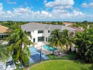 Experience luxury living in this breathtaking Vanderbilt model with 7,879 SF SF on a stunning lakefront lot with a lanai, pool and sports court. The grand entry with a formal living room has captivating views of the pool and lake, creating an atmosphere of tranquility and sophistication. The main floor features a living room, family room, formal dining room, kitchen, breakfast area, lounge/bar with media room, full cabana bathroom, powder room & ensuite guest room. On the second floor, there is a large loft area, master suite and 4 guest suites. The kitchen is modern and sleek with high-end appliances including a Wolfe natural gas cooktop, double oven, microwave and a double dishwasher. The coffee bar and butler's pantry make entertaining easy. Gather in the northern style ''basement'' with pool view on the main floor featuring a bar, lounge and media room all in one. The family room sliders open up onto a screened covered lanai for the best of indoor/outdoor Florida living. The private upstairs master suite is your own private oasis with extra large balcony & luxurious master bath featuring oversized shower, jacuzzi tub and 2 water closets. Both large master closets are fully outfitted with plenty of storage. The backyard has a covered patio with retractable shades and a summer kitchen for outdoor parties. Resort-style pool has shallow water lounge chairs for relaxing in cool comfort. Relax in the evening at the outdoor lounge with fire bowls. Enjoy a game of basketball or pickle ball on your own private sports court. Two 2-car garages are immaculate with epoxy floors and built-in shelving. This home has been meticulously maintained and includes the best upgrades including 4 A/C zones, whole house Sonos system, whole house water filtration with reverse osmosis system, new whole house generator, turf, central vacuum system, custom closets and pantry shelving and so much more. Seven Bridges in Delray Beach Is the ultimate luxury community that has it all. One of Florida's most elegant neighborhoods. there is a breathtaking entry, gorgeous residences & world-class amenities. Beautiful 30,000 Square Ft. clubhouse which has an on-site restaurant, resort style pools, gym, indoor and outdoor basketball court, 13 tennis courts with an on-sight tennis pro. Water Park. Relax in saunas and massage room. Great schools. Minutes from Delray Marketplace, the Turnpike and beaches.