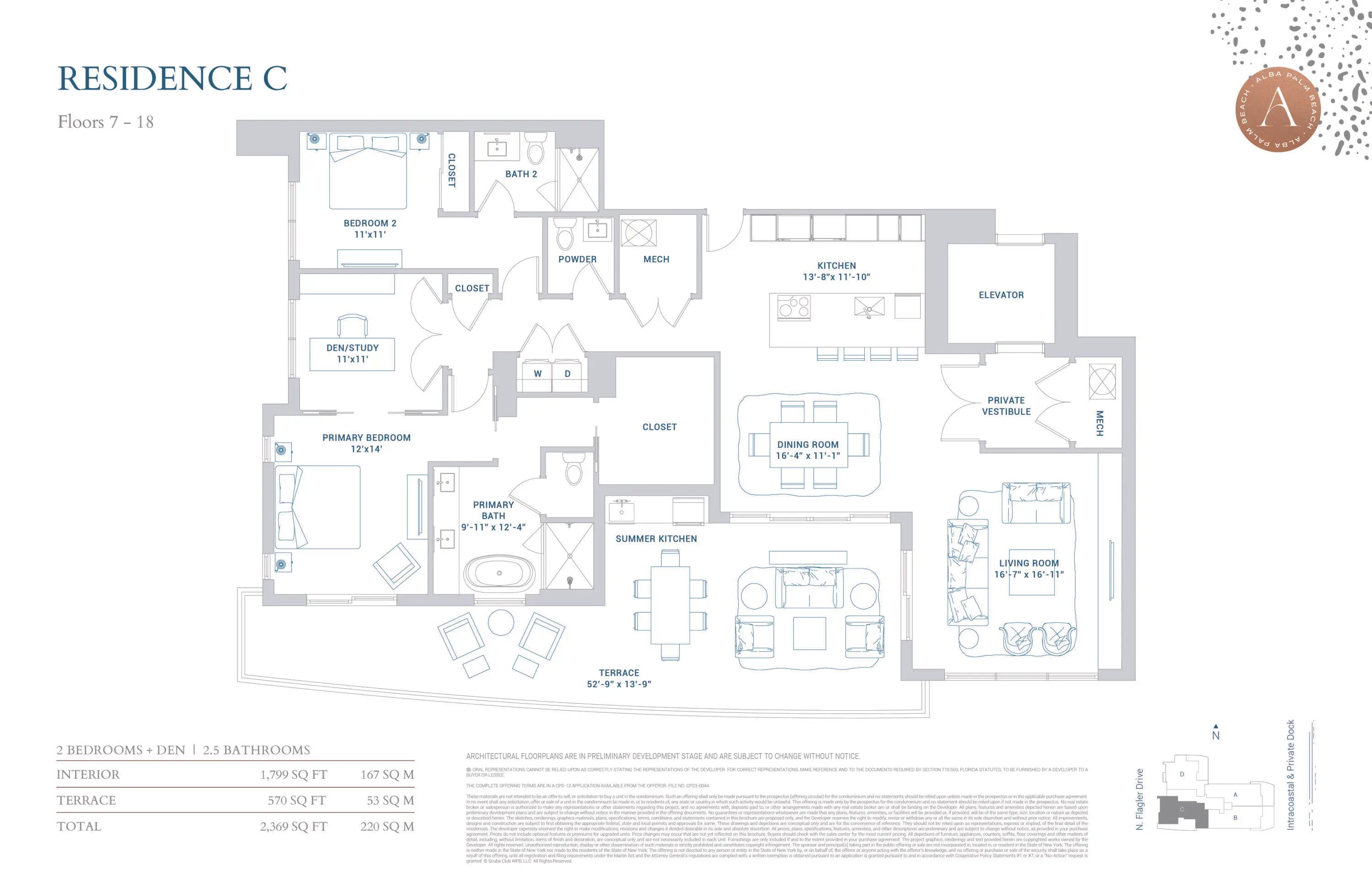 ALBA PALM BEACH - an exclusive, boutique waterfront retreat on the Intracoastal in West Palm Beach. ALBA offers just 55 residences with breathtaking views of Palm Beach, the Intracoastal, ocean, and city skyline. Residence 803 features 2 bedrooms, a den, and 2.5 bathrooms. The sought-after 'C' line boasts east-west exposures, delivering spectacular sunrise-to-sunset vistas. Enjoy over 570 sqft of outdoor living with a spacious terrace and summer kitchen. This new construction building offers refined waterfront living with a full-time concierge, valet, 25,000 sqft of amenities including sunrise & sunset pools, owner's lounge, private dining, and fitness center. Experience the pinnacle of luxury on the Intracoastal with 24hr Valet and Security.