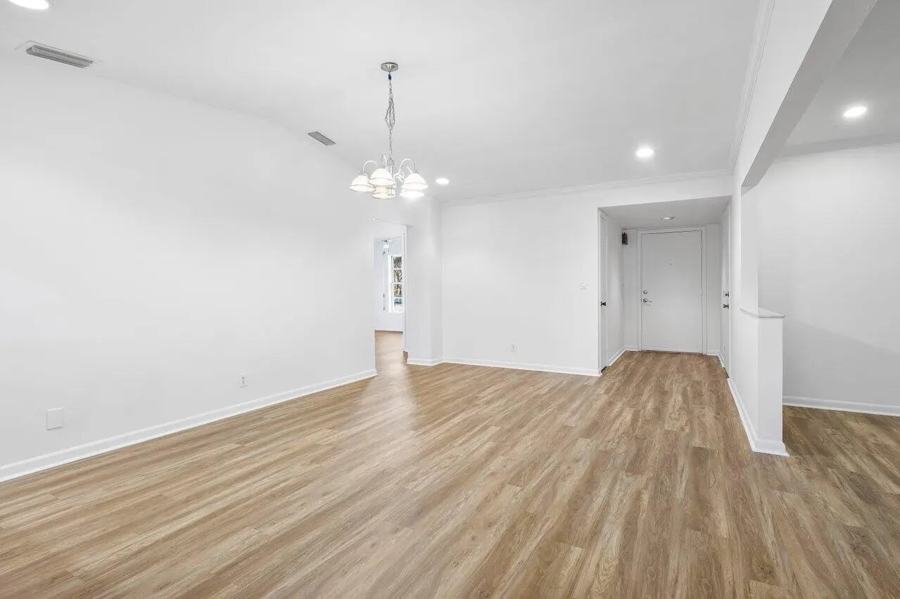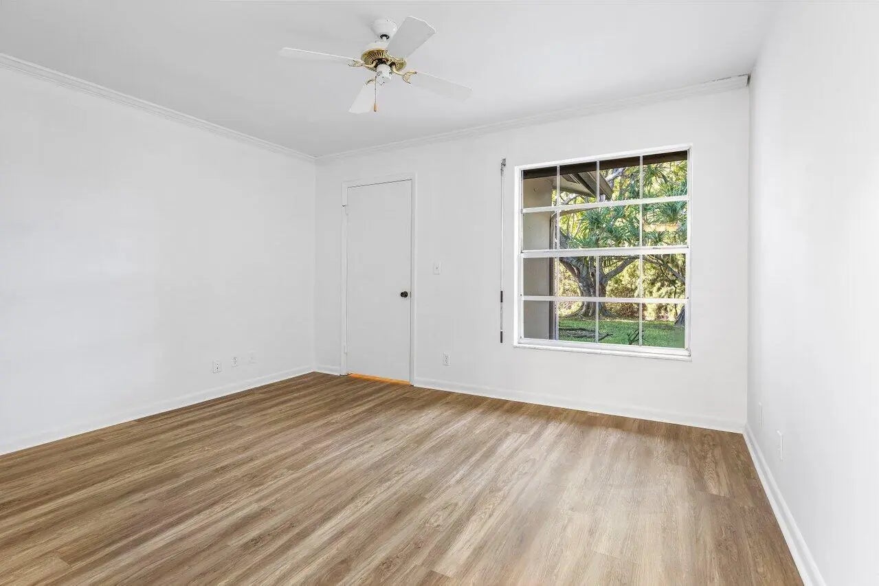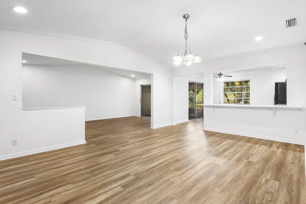 Welcome Home to this rarely available villa in Las Verdes! This lovely home offers gorgeous, private lake views and an abundance of natural light. Highly sought after 3 bedrooms, 2 baths, 1 car garage and full size washer/dryer! Boasting new luxury vinyl flooring and a beautifully updated kitchen with custom lighting throughout- this home checks all the boxes.Nestled in a resort-style gated community, you'll enjoy fantastic amenities including, pools, tennis, pickle ball, fitness center, clubhouse, billiards, basketball, shuffleboard and library. All of this for a low HOA fee. Don't miss the chance to make it yours!
