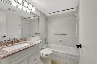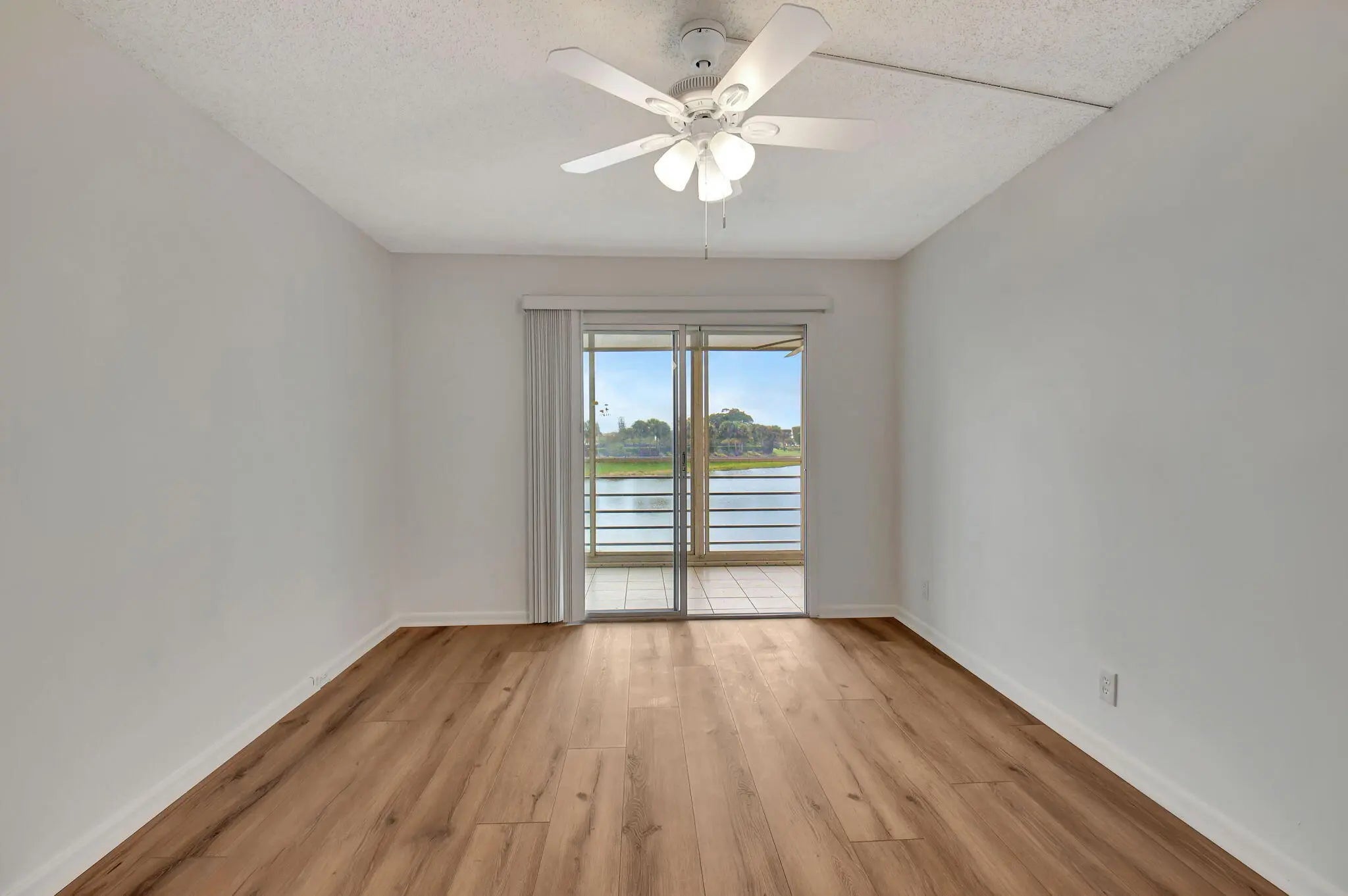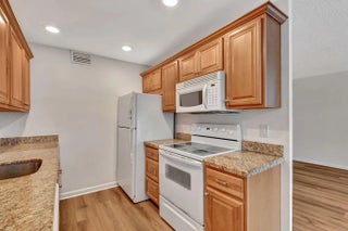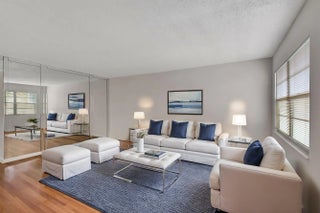 A MUST SEE!! New luxury vinal floors thruout. Gorgeous water view from glass enclosed patio with metal accordian shutters. Completely updated 2 bedroom 1-1/2 baths. Each bedroom has a sliding glass door to patio,. Walk in closet in master. Granite kitchen has newer appliances and upgraded cabinetry. All newly installed lovely luxury wood flooring throughout entire home and freshly painted. New window blinds have been installed. This building has a garbage shoot near elevator. Bring your fussiest buyers and sell!!!