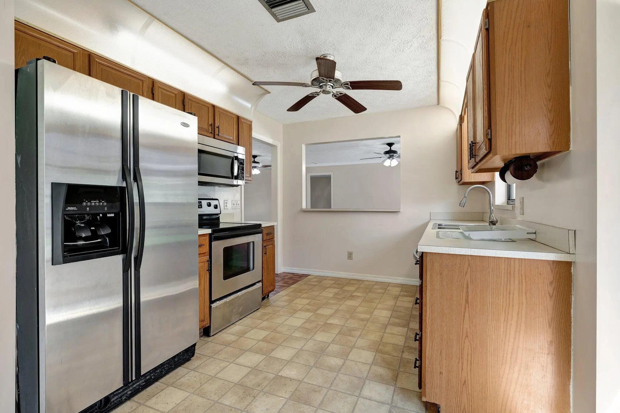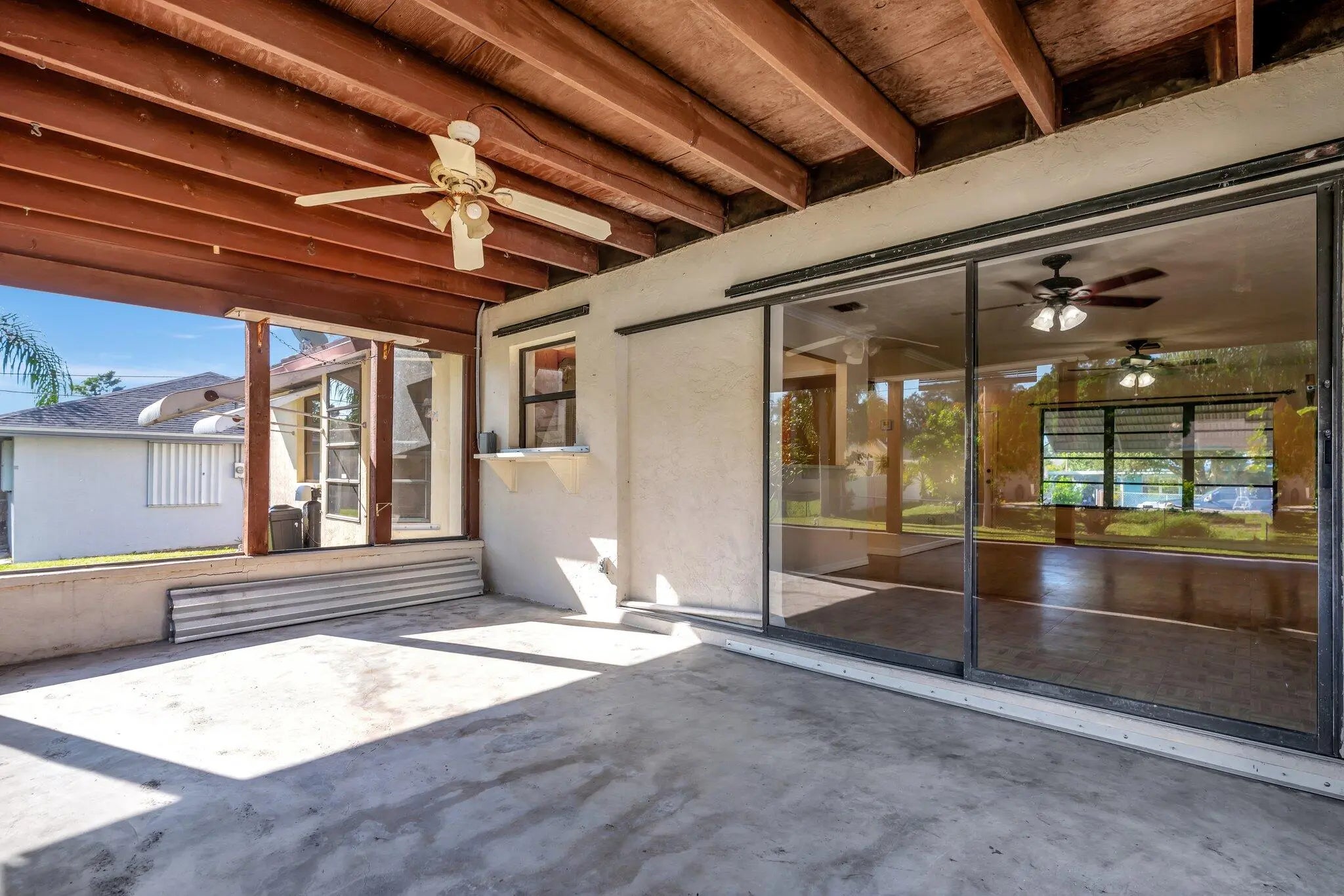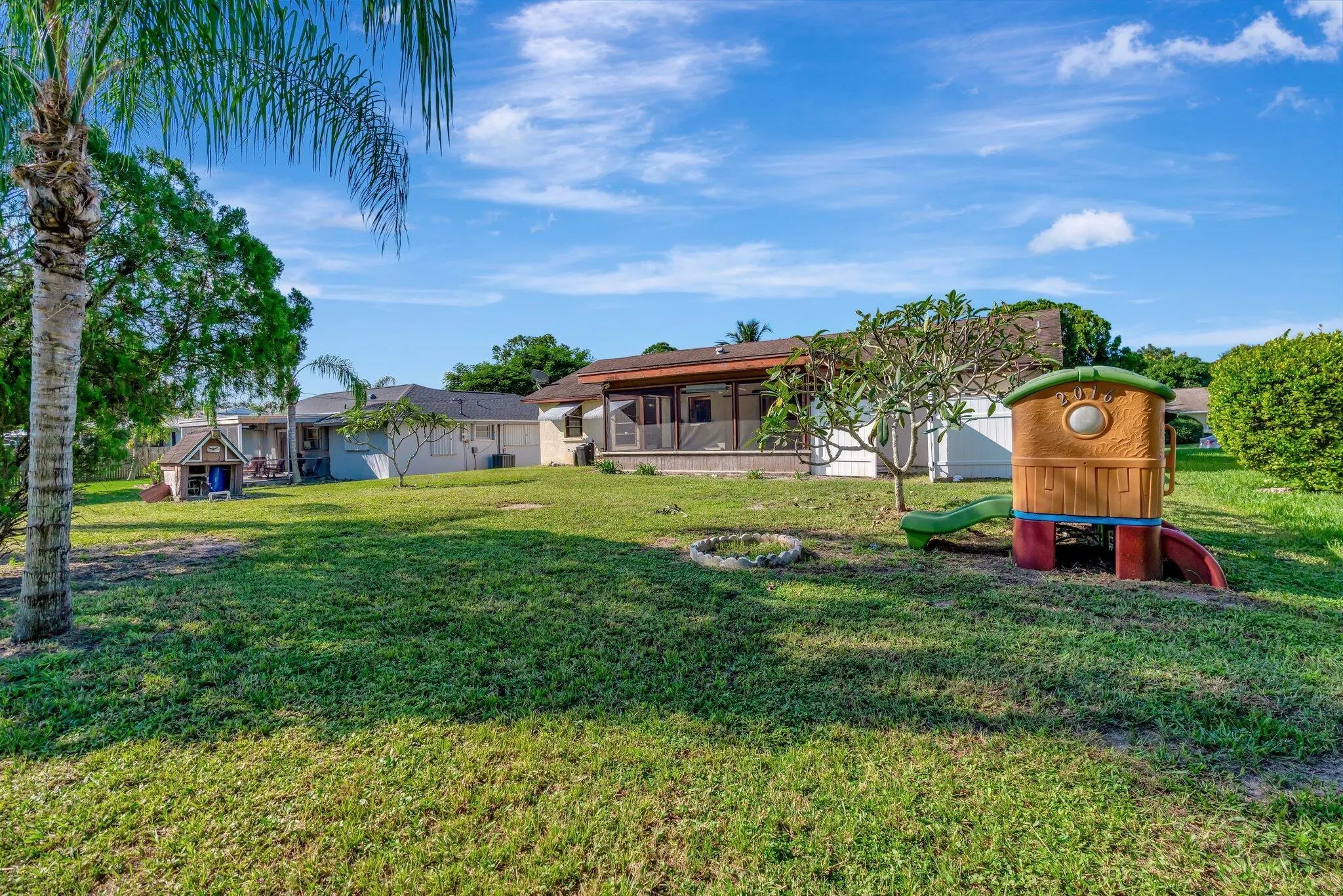 Sought after Poinciana Gardens! A two bedroom two bath split with 1,220sq ft of living space! This home is a wonderful family home with an eat in kitchen, stainless appliances, great room entrance opening up onto a newly screened in porch. The over sized primary bedroom has a huge walk in closet. A fresh coat of paint throughout the home, water softner system, and ceiling fans throughout, new garage door opener. Poinciana Gardens is a NO HOA community. Located close to all, shops, restaurants,Stuart, Jupiter, and I-95.