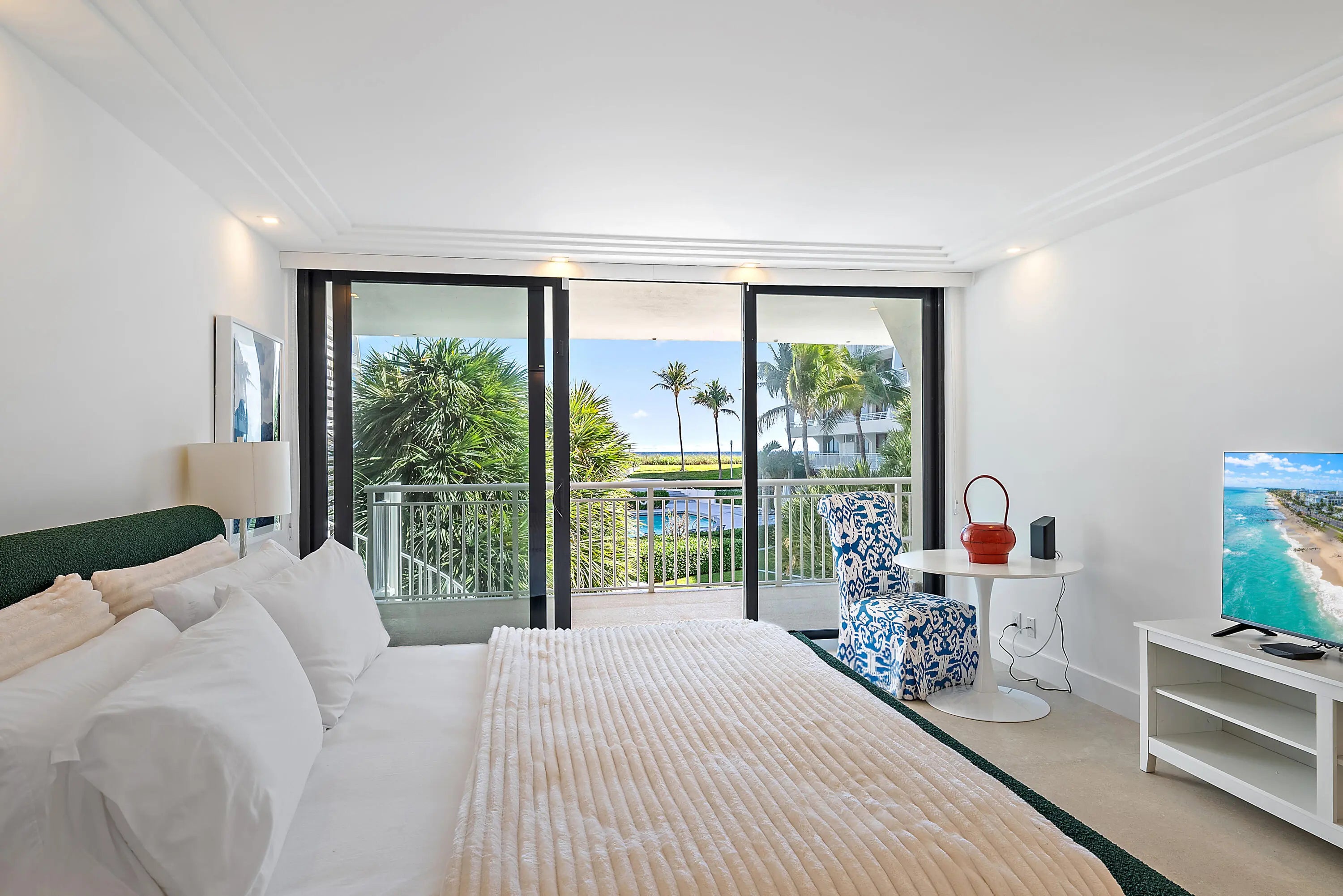 Impeccable, fully renovated 2 bedroom, 2 bath residence in the coveted, newly renovated oceanfront 2600 Building with no pending assessments. This beautifully appointed home offers stunning direct ocean views from a private patio with two spiral staircases leading to the spectacular pool area. The spacious split bedroom layout provides comfort and privacy. The sleek kitchen features custom white cabinetry, marble countertops and backsplash, integrated appliances, and a generous peninsula ideal for casual dining and entertaining. Enjoy top tier amenities including a renovated pool deck, state-of-the-art fitness center, Har-Tru tennis courts, and a wide, pristine beach--true Palm Beach oceanfront living.