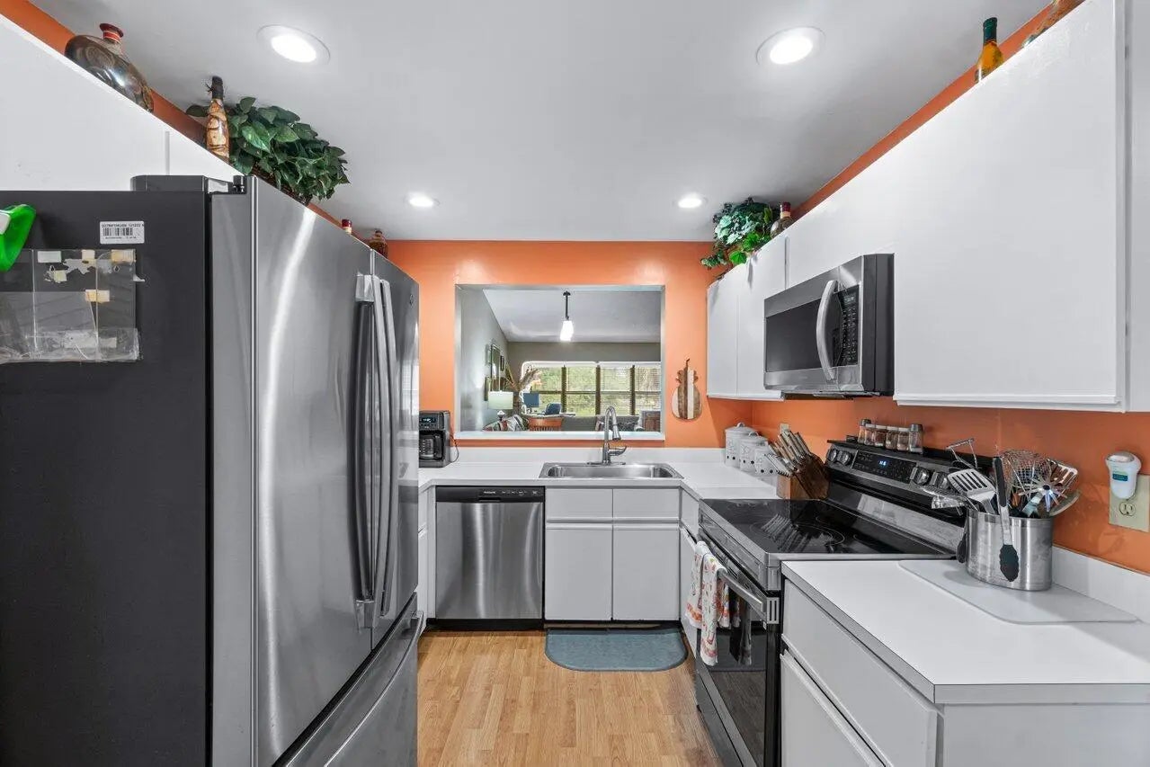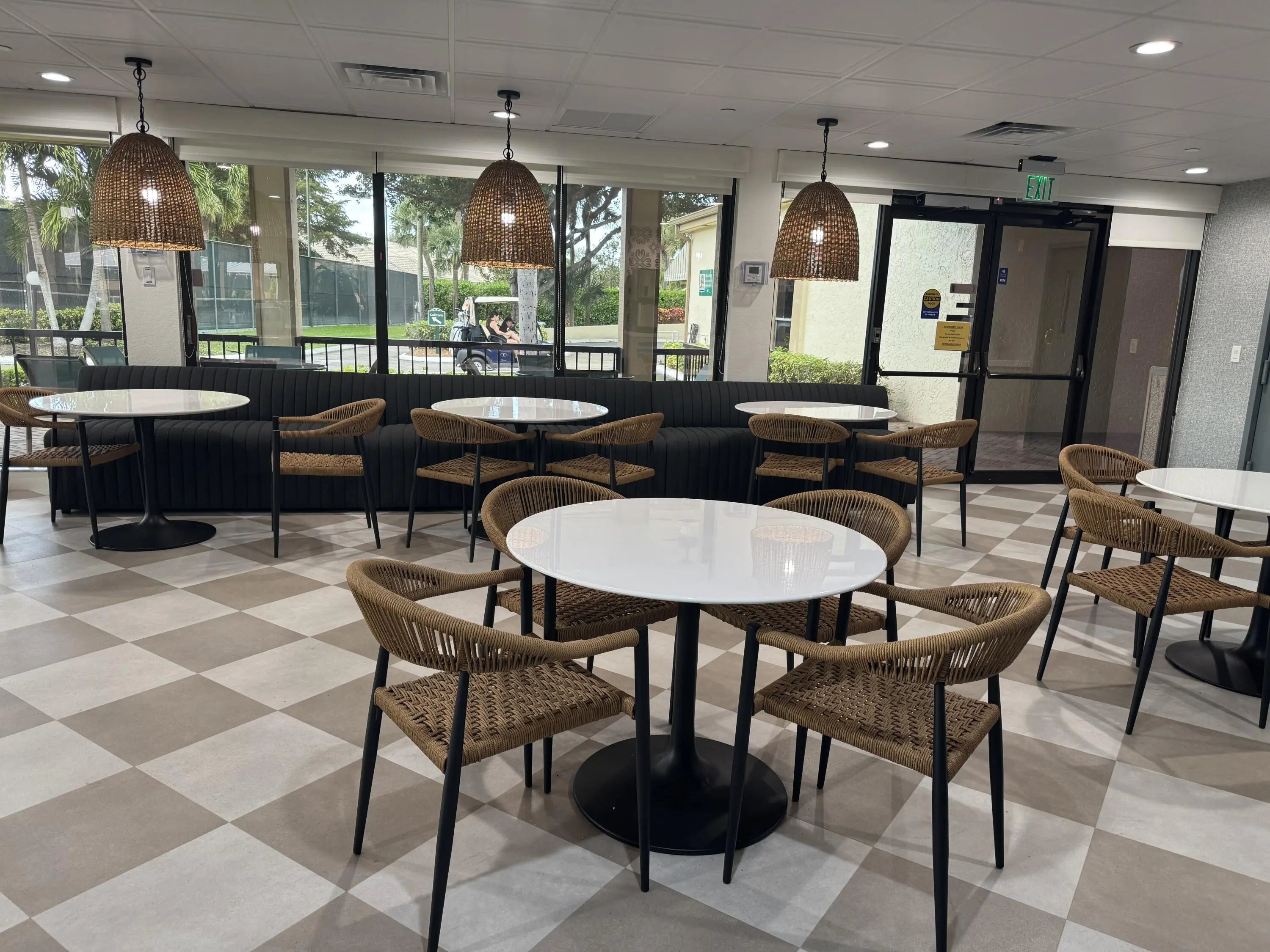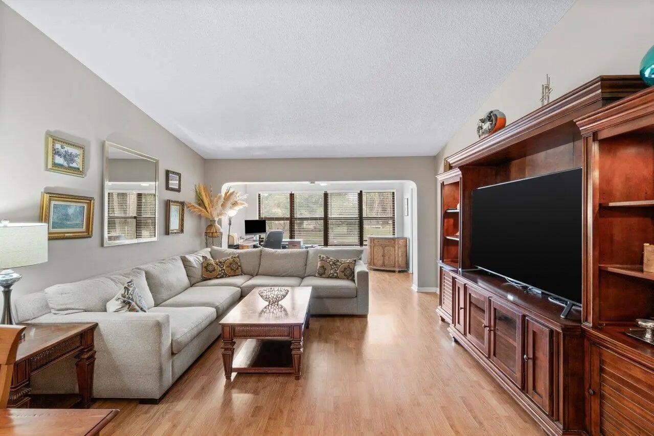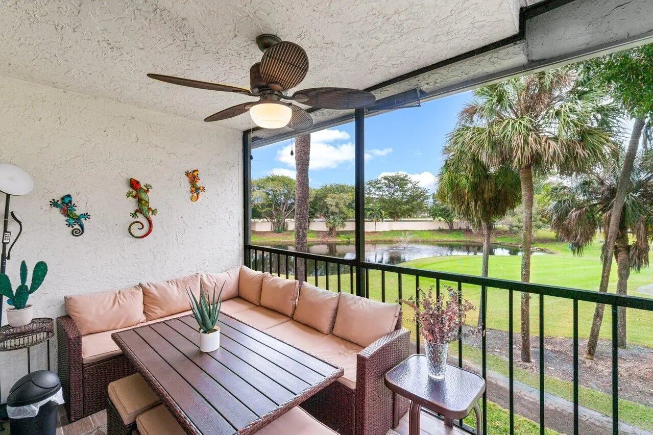 Welcome to Boca Delray Country Club, an active gated community no initiation fee, featuring an executive Par-60, 18-hole golf course set on 160 acres. This inviting three-bedroom end unit is filled with natural light and showcases vaulted ceilings, a versatile triple-split floor plan, and abundant storage throughout. The spacious primary suite offers a walk-in closet, dual sinks, and a step-in shower. The kitchen is equipped with newer appliances, a double-door pantry, an eat-in area, and generous counter space. Designed for entertaining, the open living area includes a bonus den, while two private balconies extend your living space—one screened-in with serene golf and water views, surrounded by lush greenery. Residents have access to a newly renovated clubhouse featuring an on-site café, pickleball and tennis courts, a heated pool, fitness center, vibrant social clubs, and live concerts.