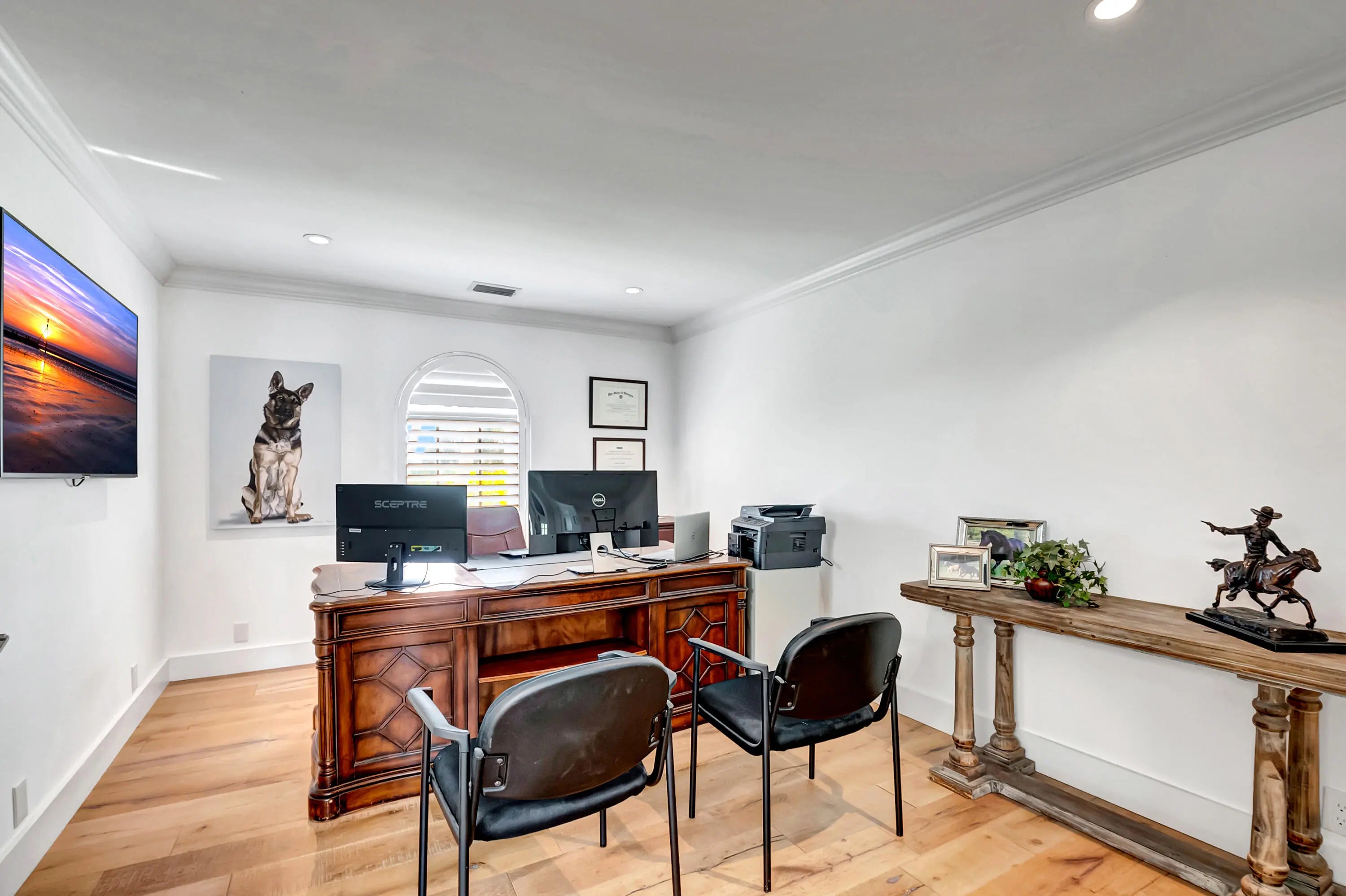 Discover unparalleled luxury in this breathtaking estate, nestled within an exclusive 24 hr. man gated community on 5 pristine acres. Offering panoramic lake views. This magnificent residence is a masterpiece of elegance and tranquility. Designed for both refined living and equestrian pursuits, the property features a beautifully appointed newly built 2700 SF CBS hurricane rated barn, ideal for horse or versatile use. The estate seamlessly blends timeless sophistication with modern comforts, boasting expansive living spaces, high-end finishes and outdoors areas perfect for entertaining. Downstairs office with 1/2 bath. A rare opportunity to own a sanctuary where luxury meets nature, just minutes from the Boca Raton Mall, fine dinning restaurants, top rated golf courses and AAA schools