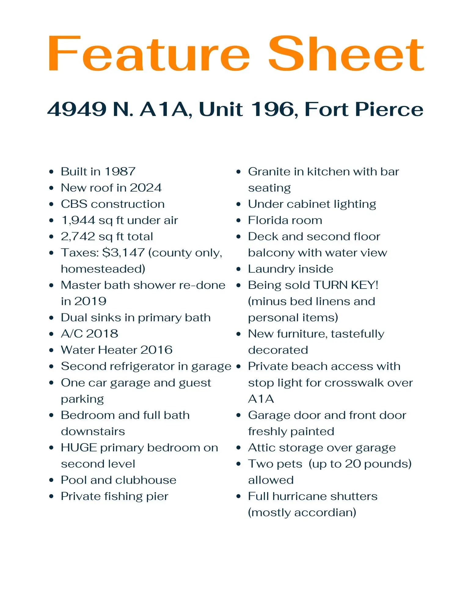 Here is your License to Chill! Evoking Key West vibes, this stunning 3 bed 3 bath condo is fully furnished with a lovely water view. Breakers Landing is directly across from the ocean with a stoplight crosswalk & deeded beach access. Enjoy a Cheeseburger in Paradise while relaxing on either the upstairs or downstairs waterfront porch. A bedroom & full bath on the first floor gives added privacy to any guests. The 2nd floor master is so massive you could have a party in it! Brand new roof means no hassle with insurance. With far too many features to list here make sure you ask for the full feature sheet. This highly desired gated community includes a pool, clubhouse & fishing pier. Change your latitude & attitude, this turn-key slice of heaven is waiting to welcome you home.