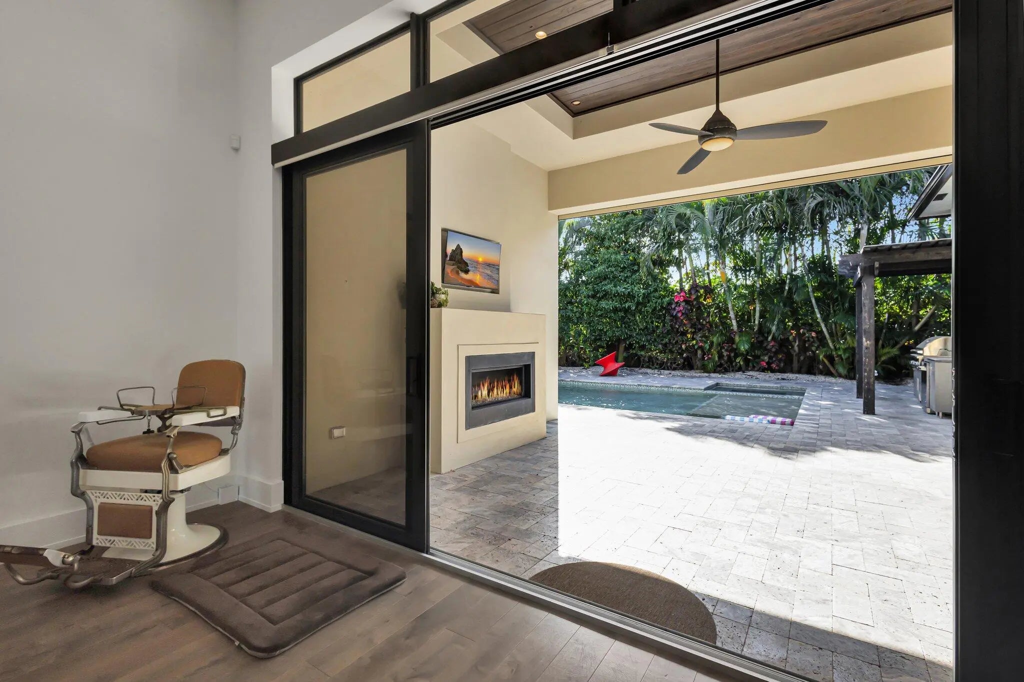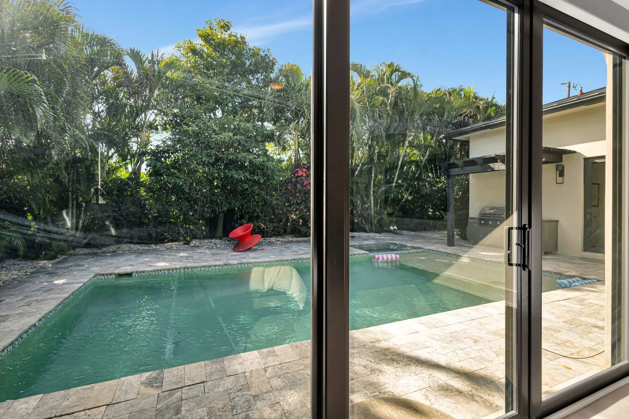 Luxurious 5-Bedroom Pool Home with Resort-Style Outdoor Living Step into refined Florida living in this stunning 5-bedroom, 4.5-bath estate offering 3,632 sq. ft. of beautifully designed space. From the moment you arrive, this home impresses with its grand entry doors, brass hardware, and a dramatic 14' foyer illuminated by statement lighting. The spacious primary suite is a true retreat--offering 270 sq. ft. of serenity, two generous walk-in closets, and a spa-inspired bath, overlooking the salt pool and spa. Each guest bedroom is thoughtfully sized, providing comfort, privacy, and flexibility for family, hosting, or a home office. Designed for effortless entertaining, the home features an expansive living room with volume ceilings, custom wet bar, and more The chef's kitchen boasts high-end appliances, a gas range, custom cabinetry, and a central island ideal for entertaining. Step outside to your private paradise, featuring a loggia with fireplace and tv, built-in barbecue, outdoor kitchen, shower, and custom lighting. The heated saltwater pool and spa offer year-round enjoyment, surrounded by lush landscaping and a fenced yard for privacy. So much toobserve, you must experience this home in person. Additional features include hurricane-impact windows, standing seam metal roof, a central vacuum, whole house generator and a decorative paver driveway leading to a spacious 2.5-car attached garage with golf cart parking. Located in a prime neighborhood, this home blends elegance, comfort, and modern convenience.