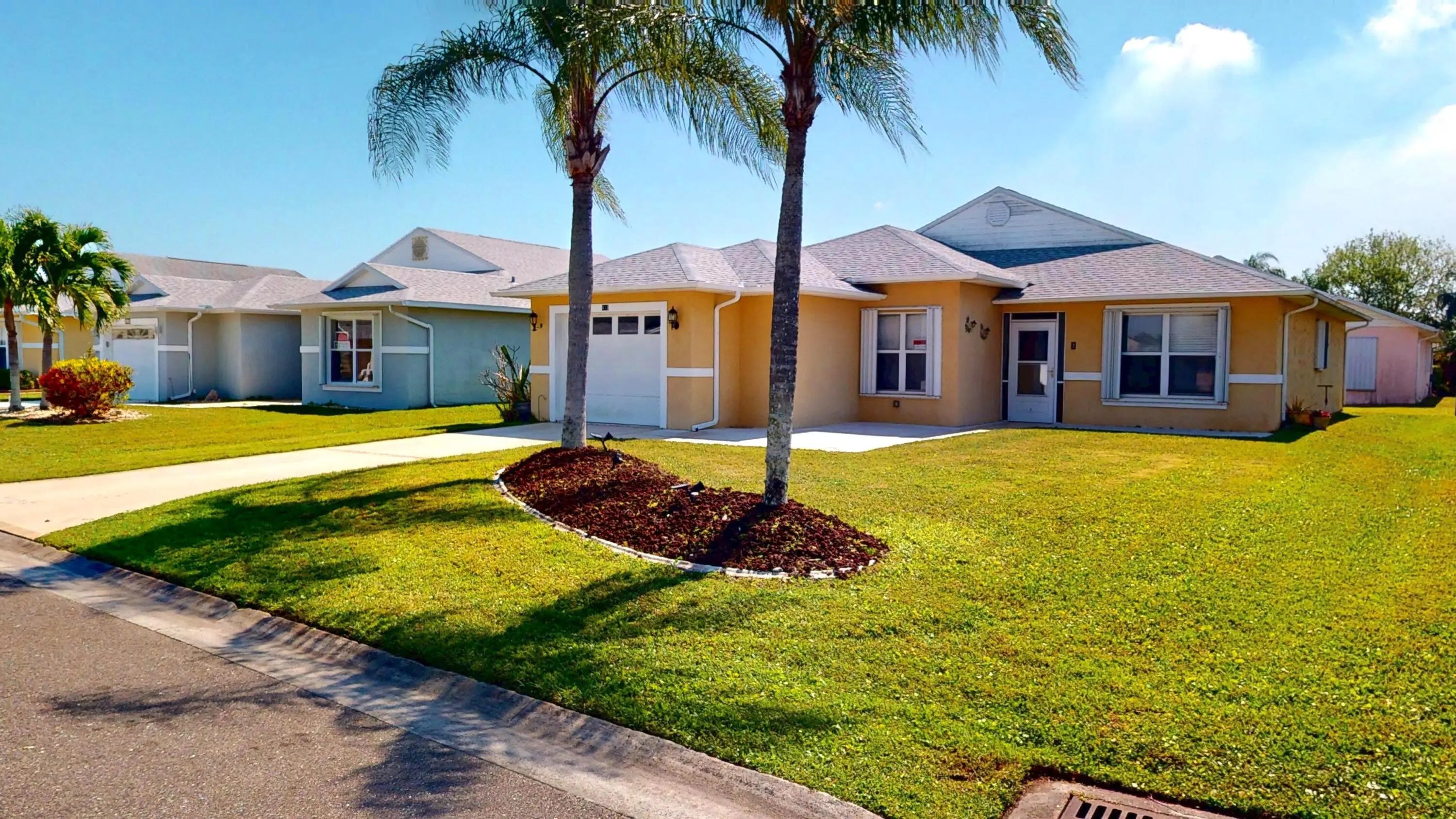 Discover this charming 2-bedroom, 2-bathroom CBS home nestled in the sought-after 55+ gated community of Palm Grove. This residence boasts a newly installed roof, ensuring peace of mind for years to come. The spacious layout includes a covered patio, perfect for enjoying Florida's serene mornings and evenings! Community Highlights: • Palm Grove: A well-maintained, active adult community offering a plethora of amenities. • Security: Benefit from 24/7 manned gate security, providing residents with a safe and secure environment. • Amenities: Enjoy access to a luxurious clubhouse, heated pool, tennis courts, pickleball, bocce ball, shuffleboard, and a variety of social clubs and events. • Convenience: Located just minutes from shopping centers, restaurants, hospitals, and beautiful beaches.