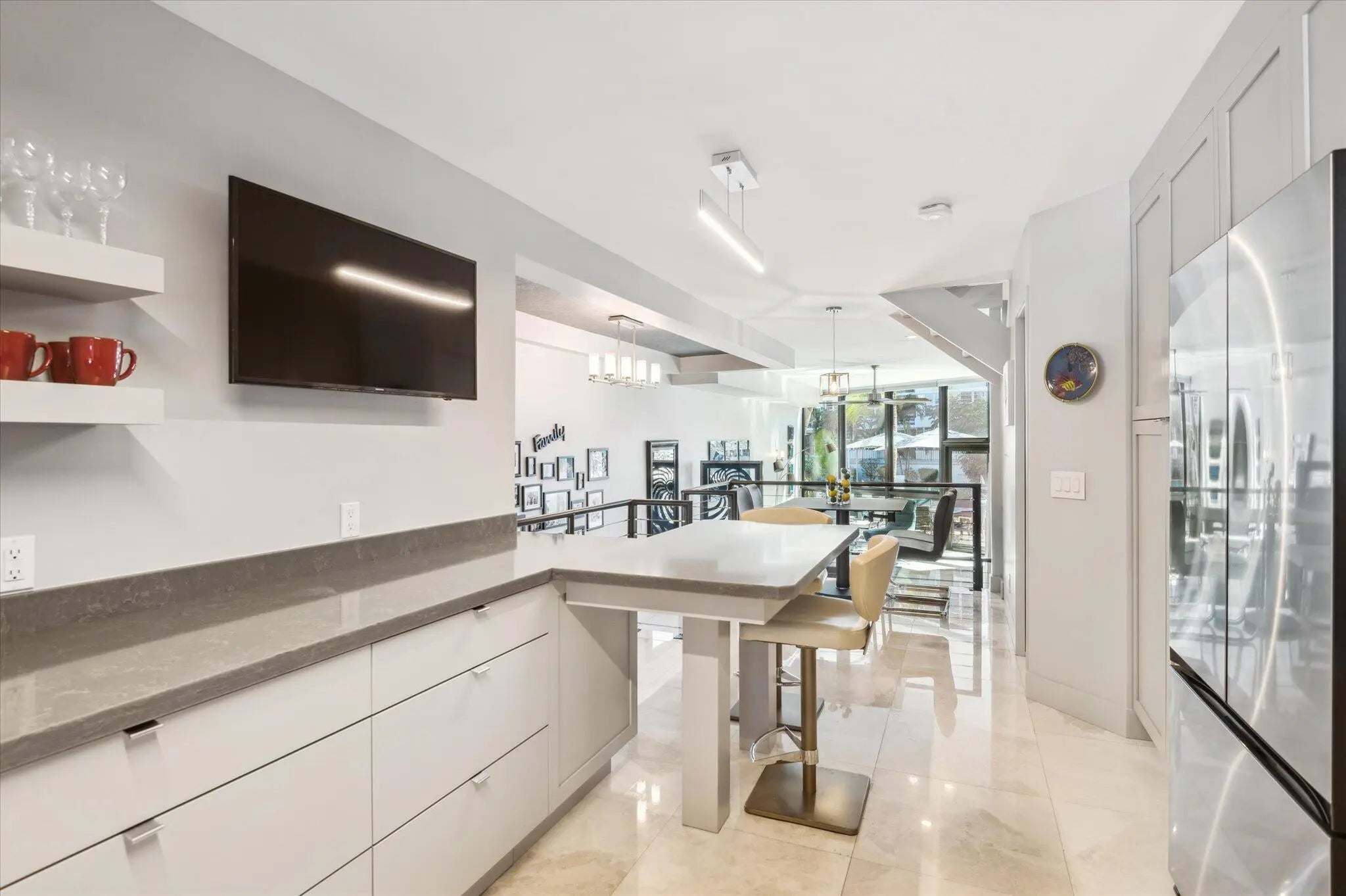 IMPECCABLY REMODELED- WATERFRONT tri-level townhouse with an assigned 24' boat slip (no fixed bridges) easy ocean access in exclusive Coral Ridge Country Club Estates. 2BR + loft, 2.5BA home offers EXPANSIVE WATER VIEWS from every level. Recent upgrades include new roof (2024), complete impact windows/doors, hurricane-rated garage door, Weardeck Composite back deck (2022) & boat dock (2024). Eat-in Gourmet Kitchen, Quartz counters, SS appliances, entire interior is freshly painted (2025) for a move-in-ready feel. Hunter Douglas remote blinds add elegance and convenience. Spacious PRIVATE deck with desirable Southern Exposure-perfect for entertaining. Just minutes from the beach, fine dining & shopping, this home is ideal for boating enthusiasts and luxurious waterfront living-A MUST SEE