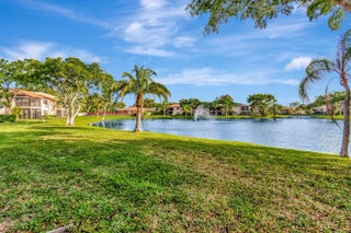 Great Waterfront 1st Floor condo in Beautiful Pines of Boca Lago, an Upscale Resort Style 55+ Gated Community. Updated and Very Spacious with lots of Closet space, No Carpet, No Stairs & newer Washer/Dryer in the Unit. High Speed Internet and Cable included in the rent! Very peaceful, calming water view from enclosed screened in patio with no rear neighbors, and lovely community with lots of greenspace in Central Boca featuring man gated security, 2 pools and clubhouse. Enjoy the wonderful lifestyle! Available immediately and can be rented for less than 1 year at a different rate.