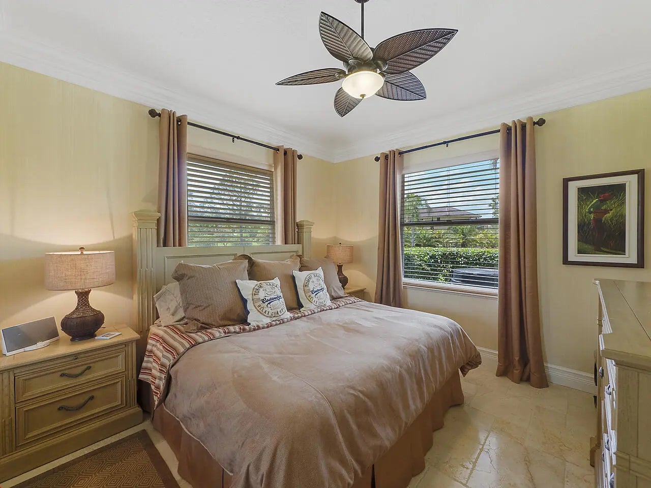 Estate home located in the prestigious community of PGA Village. Found in the Sabal Creek subdivision, this 2 story Mediterranean is situated on 1.7 acres. Property has a main house and an attached guest house, 3 car garage and large circular drive. Entire residence impeccably finished. French Cut Crema Marfil Marble flooring throughout, custom trim, crown molding, plantation shutters, 4000 SF main living quarters consist of 5BD and 3BA. Dramatic 2 story formal living room. Large dining room. Family room opens to a true chef's kitchen. State of the art appliances, custom cabinetry and a 6'x12' granite island. Adjoining Guest house complete with full kitchen, living room, 2BD and full BA. Large Screened Pool area with Tiki bar and covered Loggia. Grand home. Premier community. Paradise.