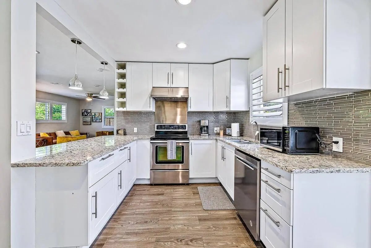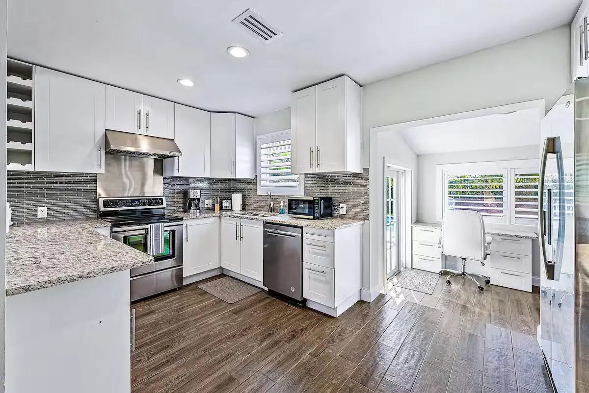 Introducing a newly renovated and meticulously remodeled 3-bedroom, 3-bathroom residence, a true South Florida retreat nestled in the heart of West Palm Beach. Thoughtfully reimagined with a redesigned open floor plan, this exquisite home features two spacious bedrooms and two full baths on the first floor, while the private upstairs owner's suite boasts a walk-in closet and a luxuriously appointed en-suite bath with dual vanity sinks. Step outside to an ultra-private, lushly landscaped backyard, where an expansive swimming pool and a covered lanai create the perfect setting for quintessential South Florida living. Offered fully furnished. Ideally situated minutes from dining, shopping, pristine beaches, PB Island, Kravis Center, and PBI Airport. The very best of PB, at your doorstep!