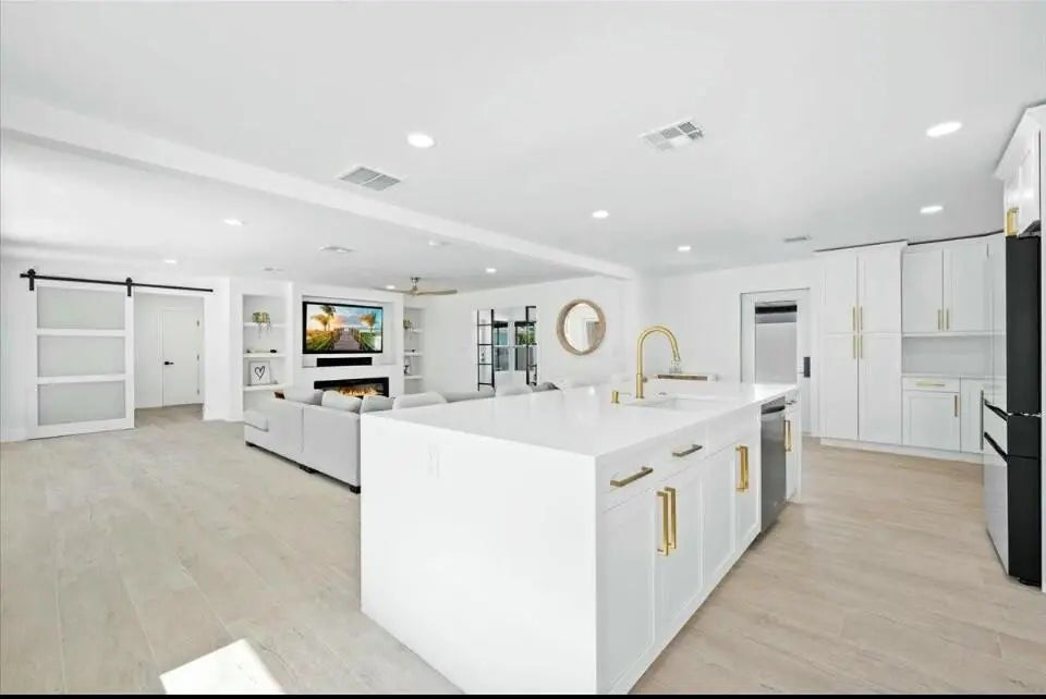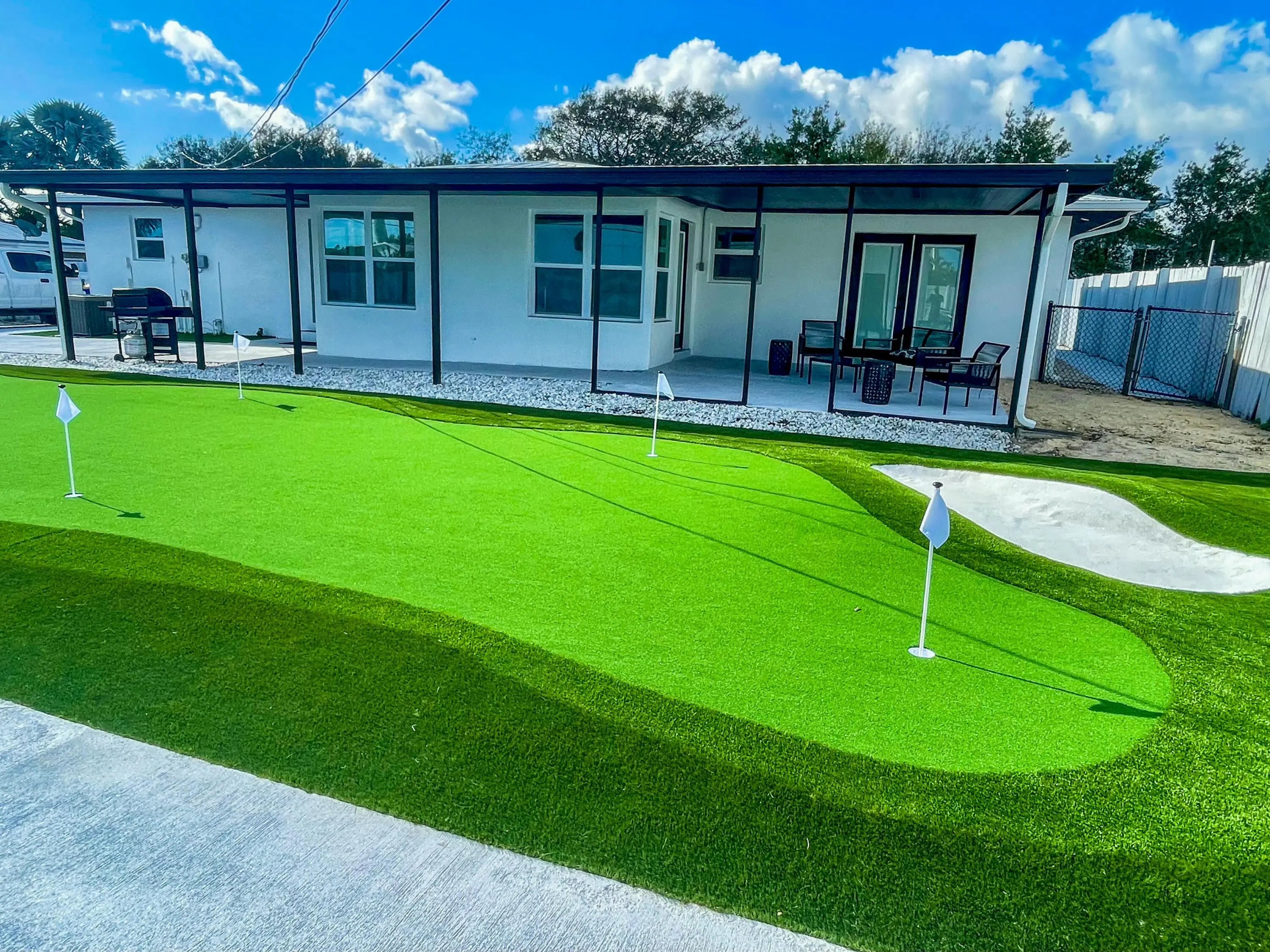 Experience unparalleled luxury in this breathtaking 3-bedroom, 2-bathroom single family home! Unwind in a modern paradise meticulously crafted with top-quality finishes and exceptional attention to detail. Gleaming quartz countertops with waterfall accents, brand new smart Samsung appliances, and gorgeous porcelain tile floors create a space that's both beautiful and functional. Relax in spa-like bathrooms featuring floor-to-ceiling porcelain tile and oversized walk-in showers. Fully Furnished turn key, Just bring your wardrobe and tooth brush, as this home sets beautifully staged. Outside is pristine landscaping in the front yard, the backyard it is all Turf with a mini putt-putt green for pleasure. Enjoy a covered back patio for all your BBQ and outdoor dining experiences. Ample room for parking and a 2 car garage. Located in Hobe Sound, a charming coastal community that embodies small beach town allure. Nestled between the Atlantic Ocean and Jonathan Dickinson State Park, it offers residents and visitors a unique blend of natural beauty and close proximity to Jupiter Island Beach, Intracoastal waters, best dining and restaurants, Boutique shopping and access to all the water sports that South Florida has to offer.