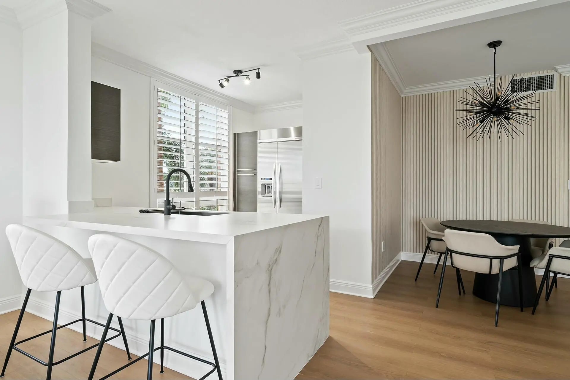 Beautifully updated and fully furnished, 3-Bed 2-Bath condo in the prestigious and centrally located City Place South Tower. This stunning unit boasts a beautiful updated kitchen, quartz waterfall peninsula, and stainless steel appliances. Light, bright, and spacious, this apartment is tastefully furnished with a rich, neutral and calming aesthetic. South Towers incredible amenities include valet parking, a beautiful water view infinity pool deck, and top of the line spa and gym facilities. The building is located in the heart of downtown, just a two minute walk to the shops and restaurants of City Place, only blocks from Clematis or the intracoastal, and just a quick drive to Worth Avenue and Palm Beach.