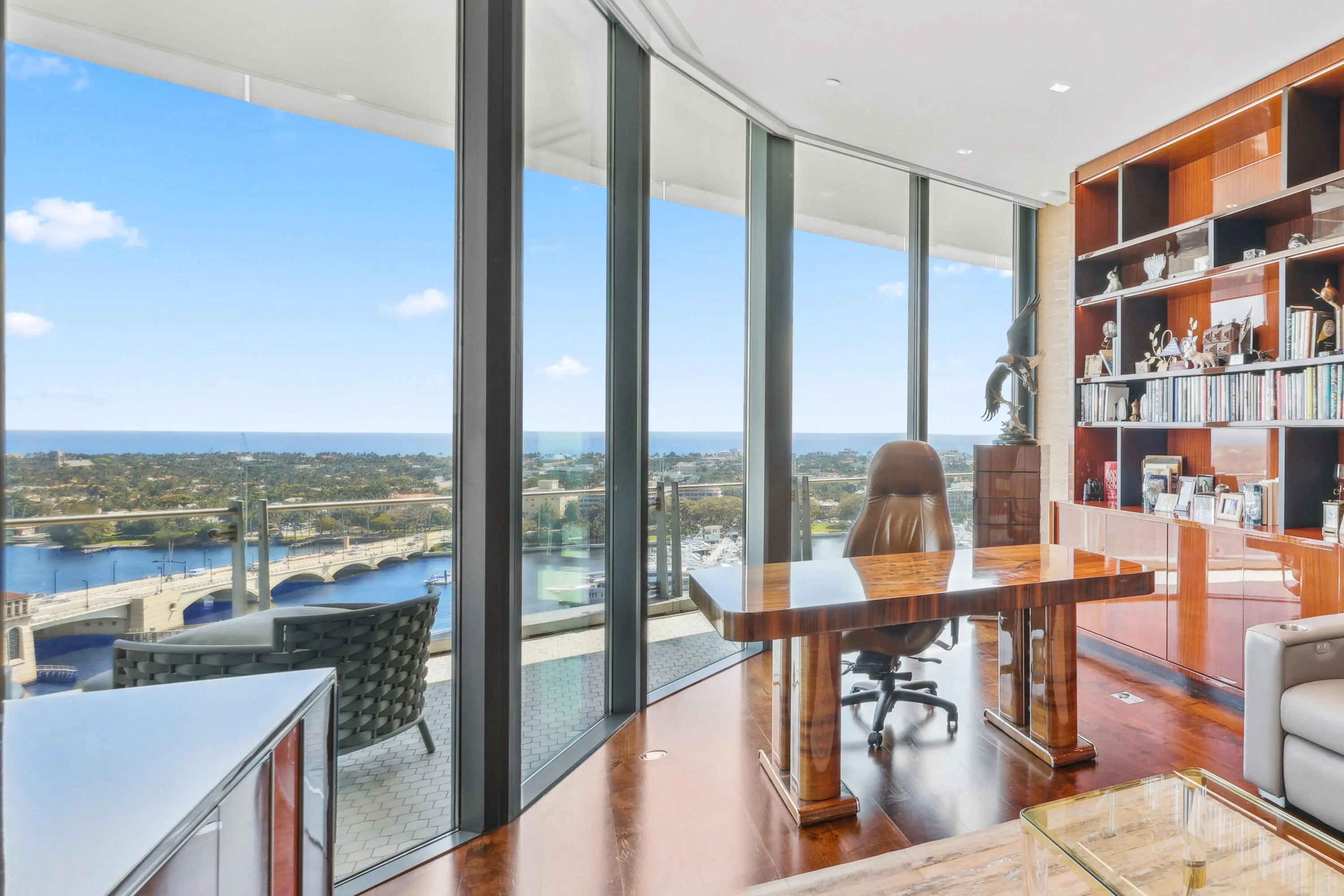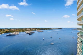 THE ONE YOU'VE BEEN WAITING FOR!! An extraordinary completely custom one-of-kind residence including a rare private garage designed for 3 vehicles. An elevated architectural masterpiece designed for those who demand the finest. This contemporary 4-bedroom, custom built by Shapiro Pertnoy, includes a substantial waterfront office and an abundance of light-filled entertaining areas that span an impressive 5,544 interior sq ft. Experience the grandeur and comfort of your own private estate within the most exclusive ultra-luxury building in Palm Beach County. An exquisite primary suite features unrivaled ocean & Intracoastal views which can also be admired from each of the two bathrooms surrounded by marble ceilings, walls, & floors. The dual oversized & elegantly appointed dressing room definitely do not disappoint. The gracious and thoughtfully designed kitchen consists of Miele and Wolf appliances, gas and induction cooktop, dual ovens, steam oven, dishwasher, refrigerator drawers and 2 spacious pantries. Conveniently located between the kitchen and formal dining area, you will discover a beautiful meticulously curated bar and a hidden wine fridge. Expansive 11-ft floor-to-ceiling glass surrounds the entire residence, seamlessly blending indoor and outdoor living while taking in breathtaking panoramic views and the yachts at the Palm Beach Marina. A sprawling 1,500-sq ft wraparound terrace provides the ultimate retreat for entertaining or relaxation. A state-of-the-art air and water filtration system with UV purification ensures a healthy living environment, while a thoughtfully customized private storage closet near the service entrance enhances convenience and organization. The Bristol offers a truly exceptional lifestyle, including the most impressive 5-star amenities and special attention to detail including on-site professional concierge, two spas, a cold plunge, beauty salon, waterfront fitness center, 75-ft swimming pool, club lounge, and indoor/outdoor dog park (pet friendly). Three house vehicles equipped with a driver, gated entrance, valet and front desk both available 24-hours. Just moments from Palm Beach Island, the world-renowned Worth Avenue, premier private aviation, Palm Beach International Airport, and the exclusive Palm Beach Marina. This is not just a home, it is a lifestyle and a statement of sophistication and prestige.