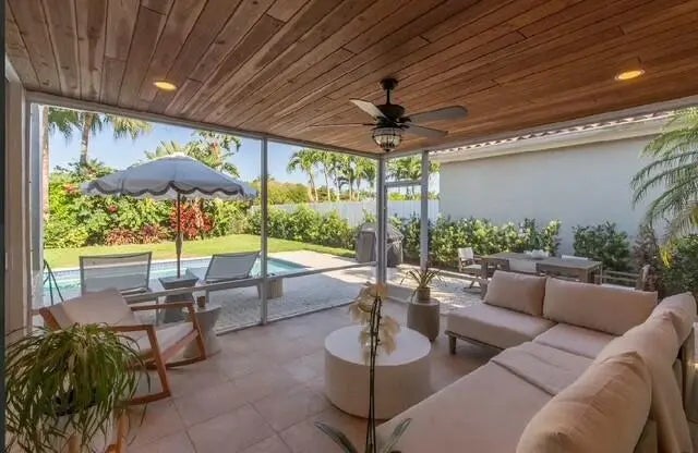 Located in Wellington's prestiges Palm Beach Polo & Country Club, this 3 bedrooms|, 2 full bathrooms home is the perfect place to enjoy your season! Freshly updated, new floors , new bathroom and kitchen counters and cabinets. This cozy space is move in ready. Overlooking the golf course, with a screened in porch, perfect for entertaining, as well has its own private pool. Just minutes from WEF. . Showings will start on May 10,2025.
