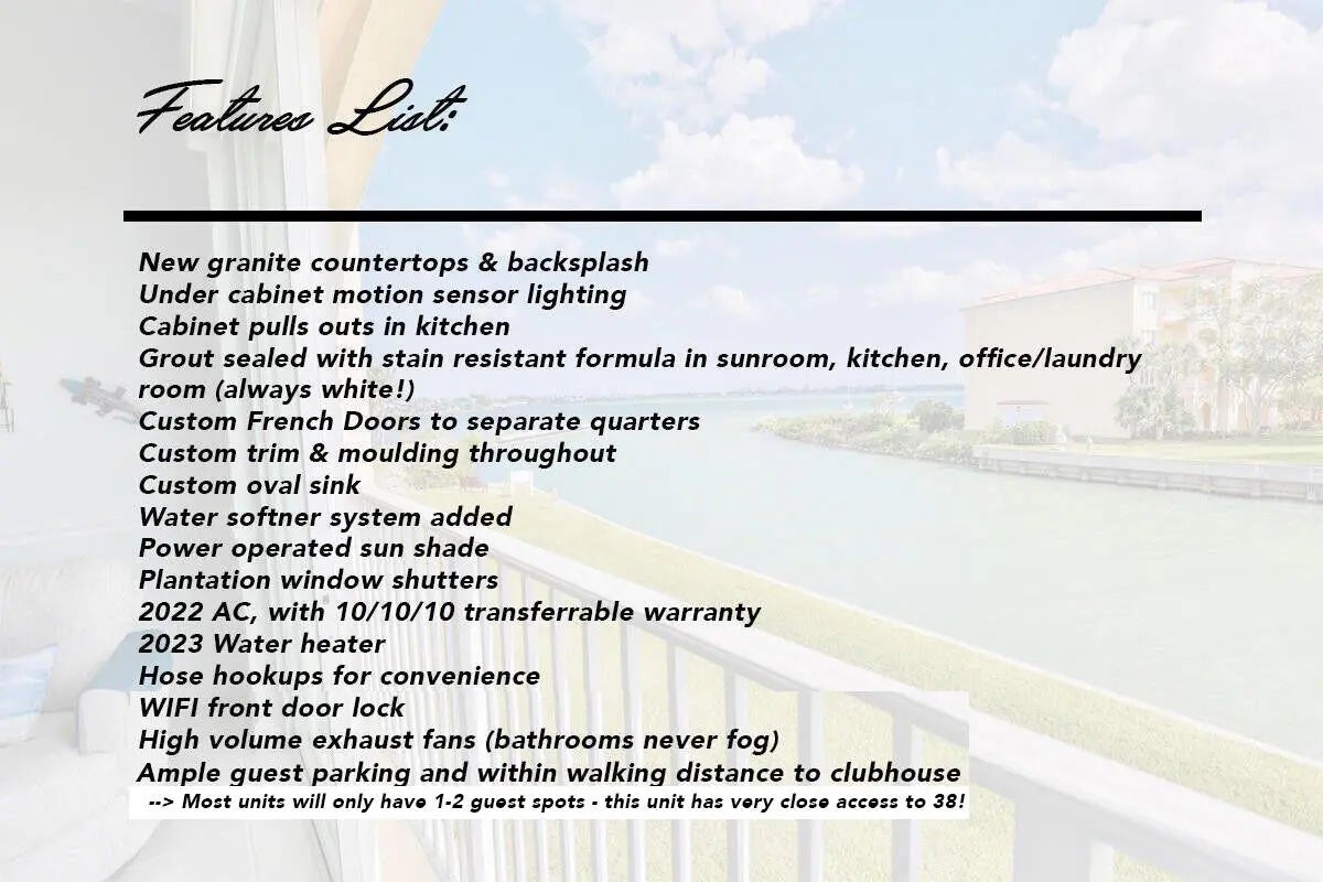 ***FULLY RENOVATED AND BEST PRICED LISTING, VIEW & UPGRADES*** This beautiful condo on S. Hutchinson Island is located in THE premier building on the East side of Harbour Isle. Enjoy the spectacular view of the inlet with boats leaving the marina from your sunroom, gorgeous morning sunrises & long range views of the Indian River. Features include fully renovated kitchen, all wood plank tile flooring, french doors separating 2nd bedroom & bath, drink from the tap with whole house water filtration, auto blinds & plantation shutters & lots more. Ample guest parking is available in front of the building & walking distance to the NEWLY renovated clubhouse, gym, pool, tennis, pickle ball, & grills. Please see feature sheet in pictures for ALL the upgrades this beautiful unit has!