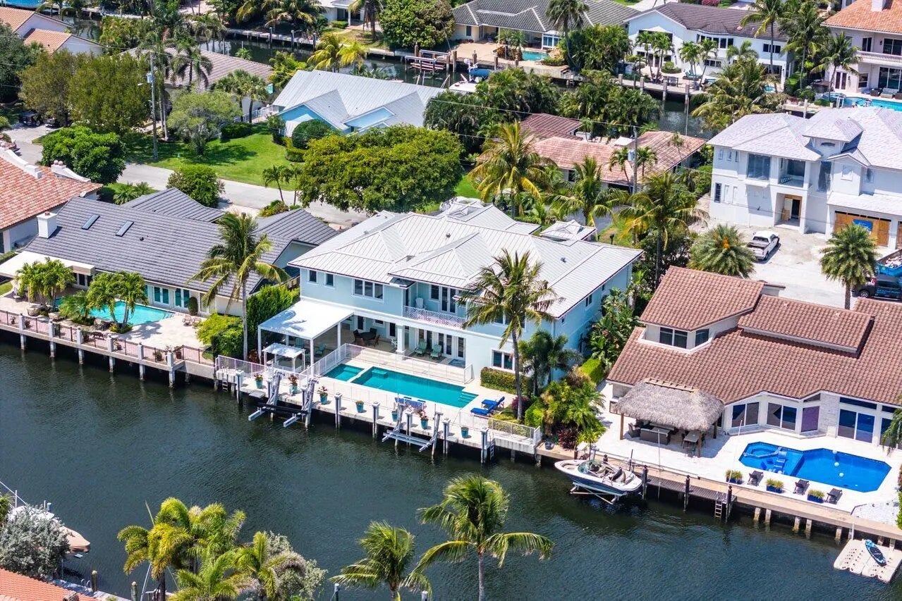 **Exquisite British West Indies/Key West-Inspired Waterfront Estate in Tropic Isle, Delray Beach** Welcome to this truly one-of-a-kind residence offering the perfect blend of luxury, functionality, and coastal charm. Situated just four homes off the point in the coveted waterfront community of Tropic Isle, this expansive 6,000 sq ft estate features 5 spacious bedrooms plus a versatile media room (easily convertible to a 6th bedroom), 6.5 baths, and a 3-car garage. Enjoy serene very wide canal views from nearly every room, with a custom-designed pool and spa as your private outdoor oasis. Boaters will appreciate the two boat lifts, concrete dock, and 90 feet of seawall—an ideal setup for the marine enthusiast. Inside, this Key West-style home—built in 2012—MORE delivers timeless elegance and thoughtful design. Highlights include 8-foot solid core panel interior doors, a 5'x5' state-of-the-art elevator, a central vacuum system, and a comprehensive security system. For added convenience, the home includes a large upstairs laundry room, as well as a washer and dryer on the main level. The heart of the home is the gourmet kitchen, featuring custom cabinetry, premium Thermador appliances, and a well-appointed butler's pantry with sink, perfect for entertaining and a generator for peace of mind. The loft area upstairs, complete with a beverage fridge and built-in storage, offers a casual gathering space with access to a breezy balcony overlooking the water. Each bedroom boasts its own private en-suite bath, offering comfort and privacy for family and guests alike. The media room is a cozy retreat for movie nights, or can easily serve as an additional bedroom if desired. The home's exterior exudes curb appeal with its standing seam metal roof, custom-crafted gable end details, covered balconies and lanai, and lush tropical landscaping. Interior features like Key West-inspired wall and ceiling finishes, and a handcrafted wood staircase with custom wood handrail, elevate the home's unique character and warmth. A true gem in one of Delray Beach's premier waterfront neighborhoodsthis home must be seen to be fully appreciated.