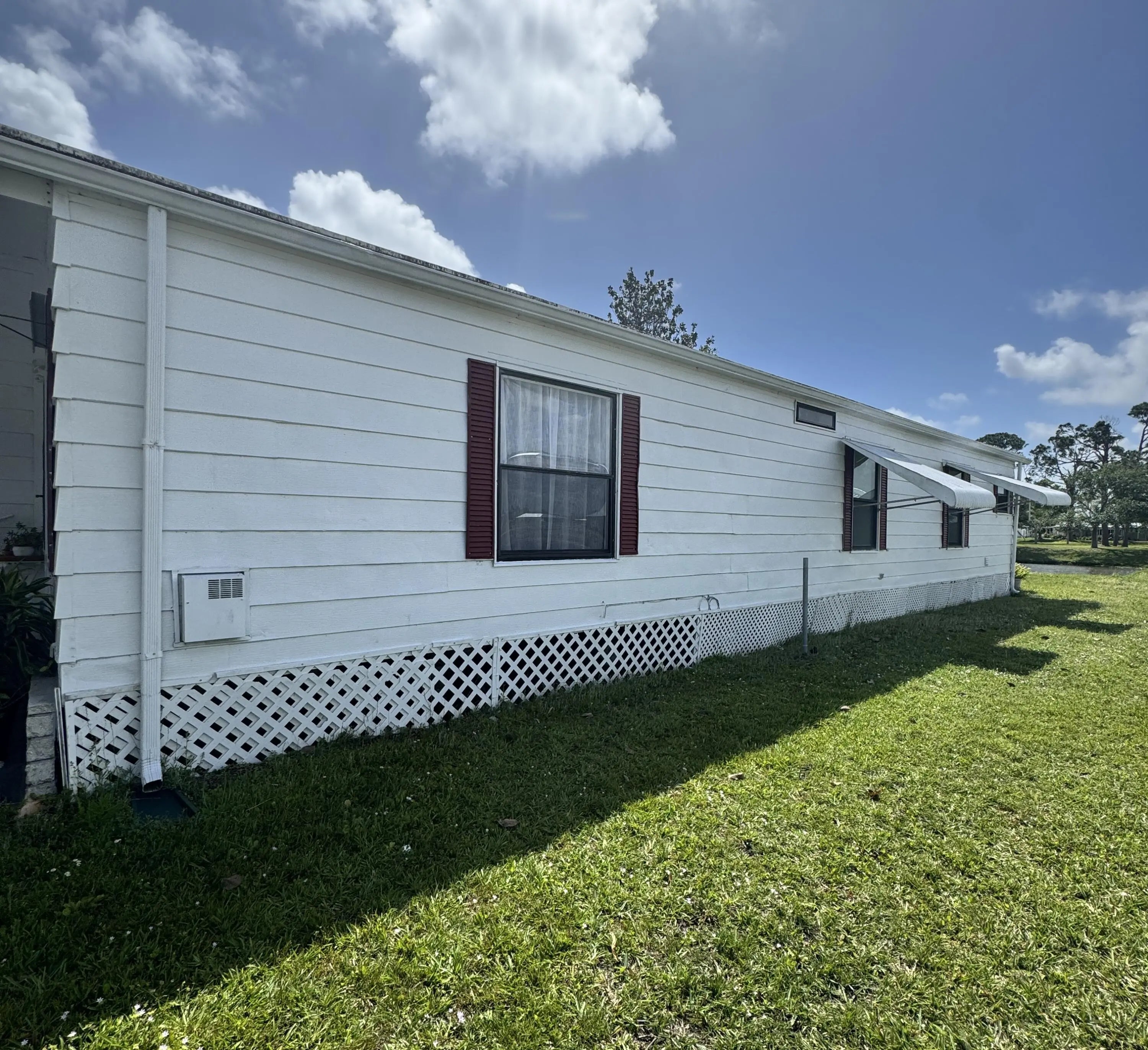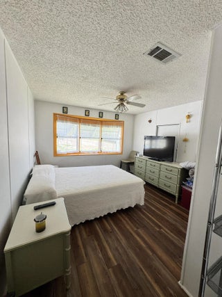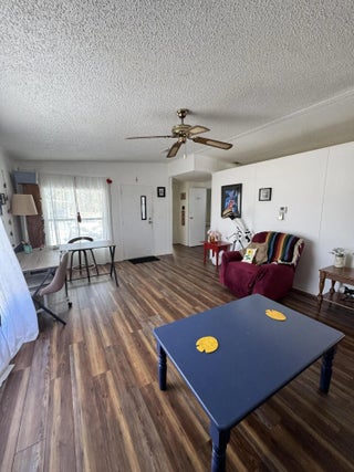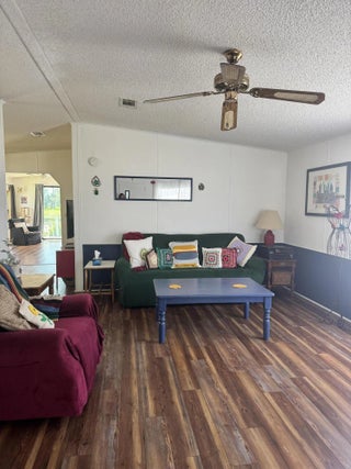Lovely 2-bedroom 2-bath home with LAKE VIEW. Home is in the desirable 55+Spanish Lakes Country Club community. No carpet. NEW LAMINATE FLOORS. NEW WATER HEATER 2025. Split floor plan. Florida room with a deck off the back of the home for enjoying morning coffee or evening cocktail, looking out at the beautiful lake view. Lawn care, trash removal, and golf are included in lot rent. 2 pools, tennis, pickleball, bocceball, and shuffleboard. clubhouse and much more.