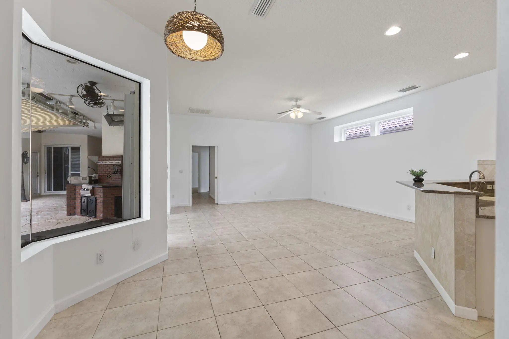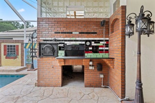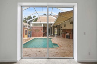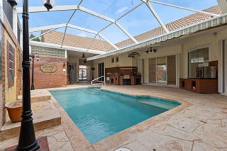 Incredible 4BR 3BA courtyard pool home and detached 4th bedroom— in-laws, guesthouse or private office. Added privacy with family, living, dining areas and breakfast nook. Step into your own quaint pizzeria! This stunning lanai, complete with commercial pizza ovens, grill, fryer and prep stations—all included. Screened pool with privacy wall, retractable awning, and vintage lighting set the scene. Inside: open, split floor plan, vaulted ceilings, tile throughout living areas, and sliders from cottage, master and living room to pool. Gas: whole home generator, dryer, stove, and instant hot water. For added strength and security the home is CBS construction with accordion shutters. Lake Charles offers clubhouse, tennis, and more—minutes from dining, golf, and I-95. Homes like this are rare