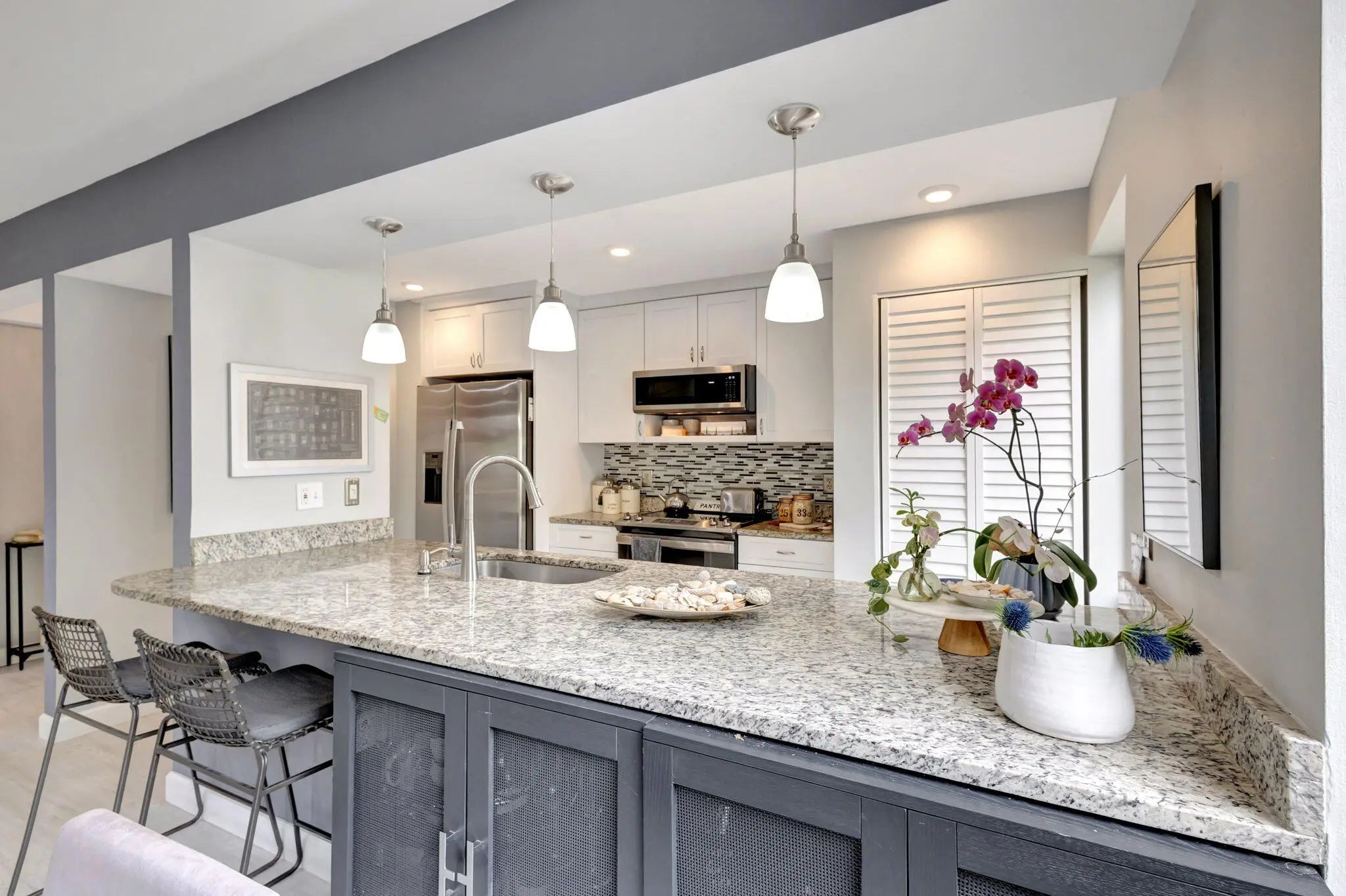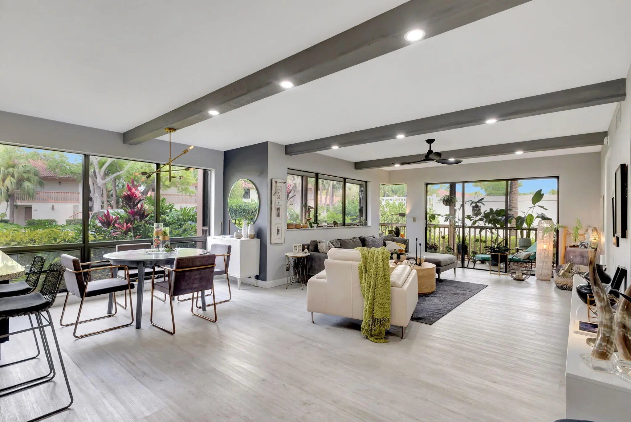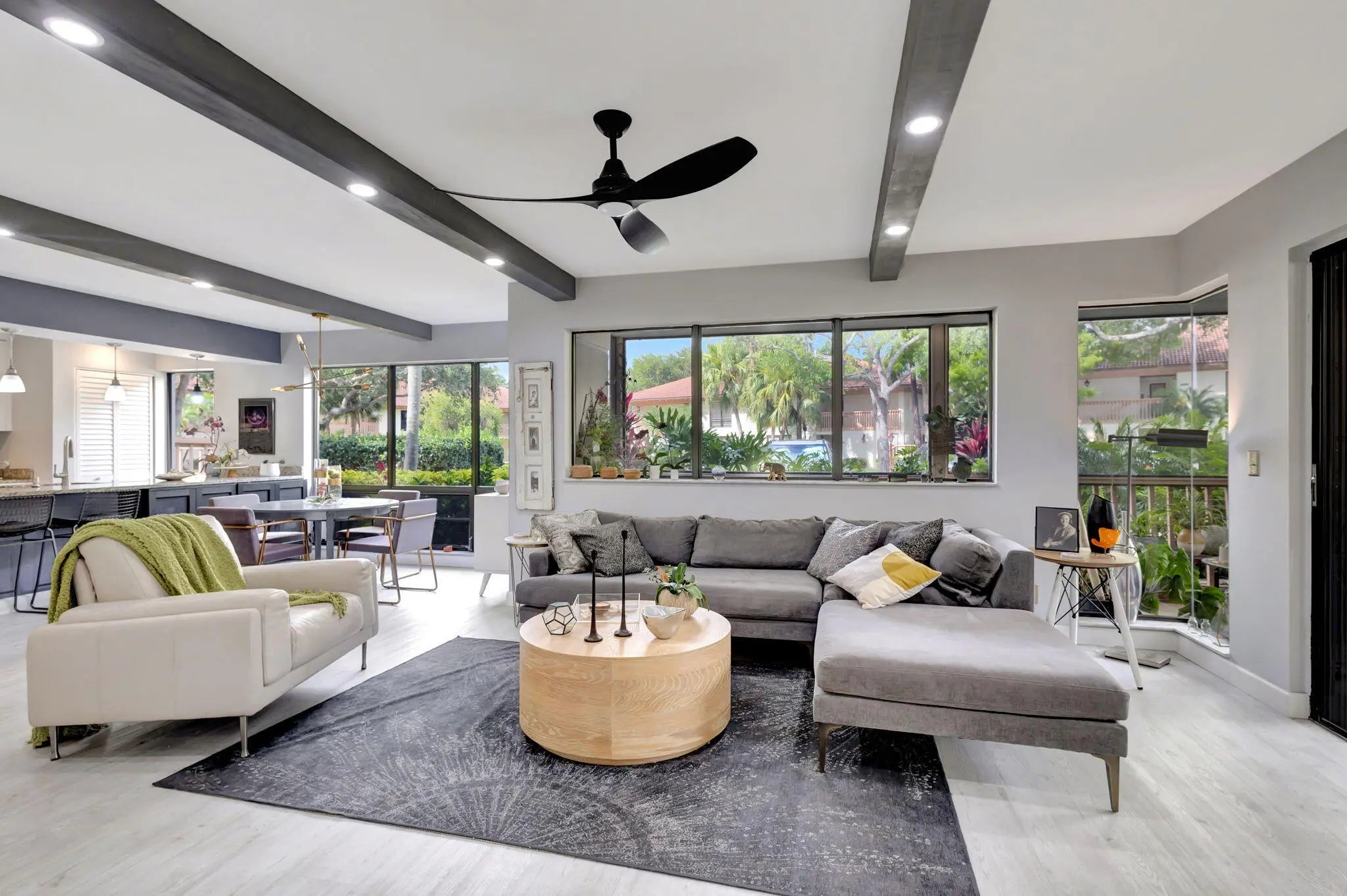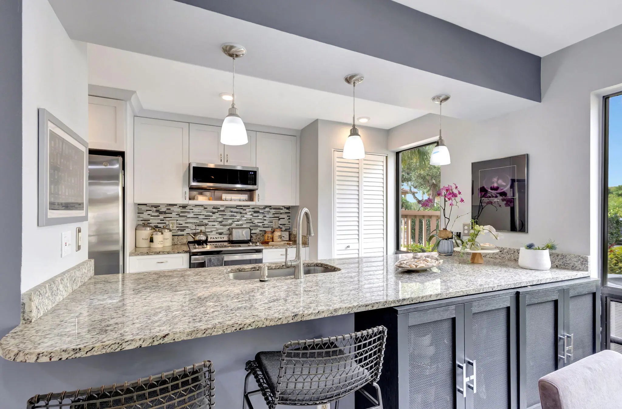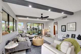 Tastefully Remodeled 1st Floor Golf Villa Unit. Kitchen w/Large Center Island, New Refrigerator, New Stove, New Washer/Dryer & Garbage Disposal. Open Floor Plan Creates a Lovely View from the Kitchen to the Dining Area & the Expansive Living Room. Bedrooms and Living Room Boast Custom Made Ceiling Beams with recessed Lighting, and Remote Controlled Ceiling Fans add a Modern Touch. (*All Popcorn Ceilings Have Been Removed). Both Bathrooms Have Been Tastefully Remodeled (*Bathroom Mirrors are Excluded). Expansive Windows w/ Plenty of Sunlight Throughout the Unit. New Tropical Foliage Installed for Privacy. Watch the Florida Sunsets from the Wraparound Screened-In Porch. Easy Access to Restaurants & Shops