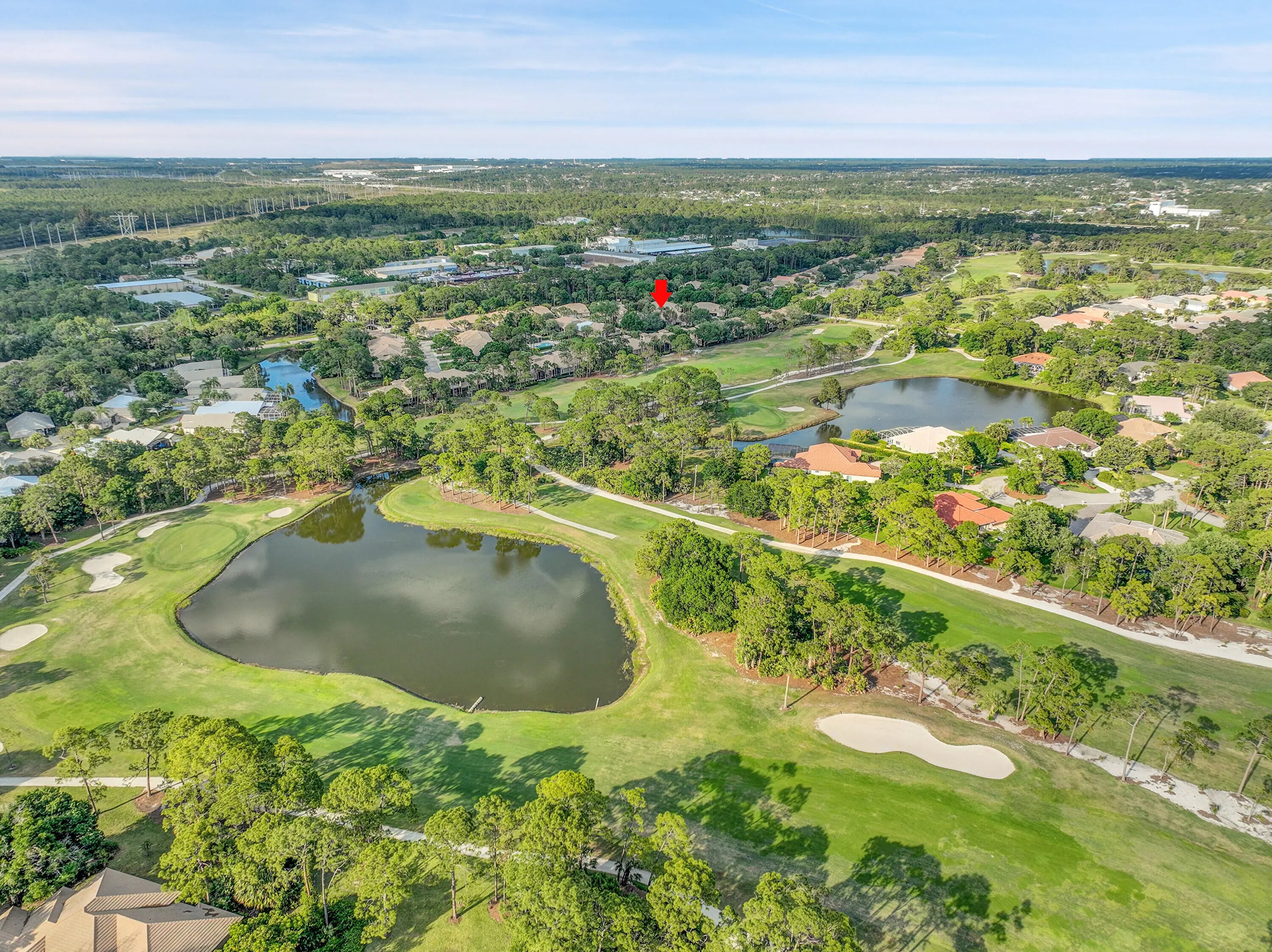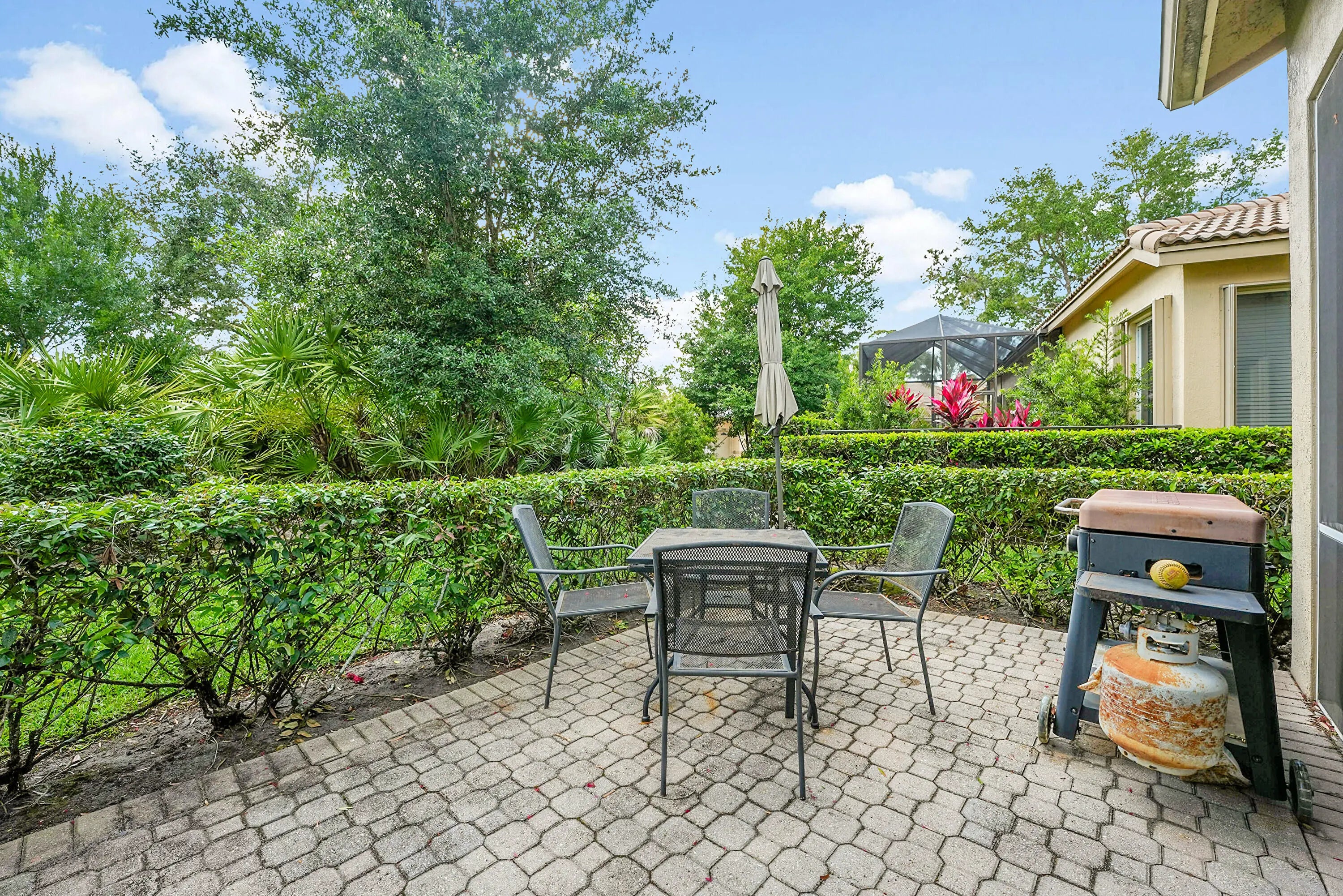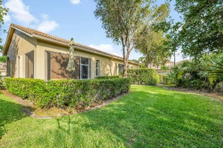 Beautiful Essex Floor Plan in Desirable Torrey Pines - PGA Village Don't miss this inviting 2-bedroom, 2-bath home with a versatile den (easily used as a 3rd bedroom) and 1-car garage, located in the highly sought-after Torrey Pines subdivision of PGA Village. This light and bright home features diagonally laid tile throughout all main living areas, offering both elegance and easy maintenance. The updated kitchen boasts a quartz countertops, a stylish backsplash, stainless steel appliances, and a convenient bar that seamlessly opens to the spacious great room and dining area - perfect for entertaining! Retreat to the large master suite with private access to the screened and covered lanai. The luxurious master bath includes a walk-in shower, separate soaking tub, and double vanity sinks. Enjoy peaceful mornings or relaxing evenings on your private lanai surrounded by lush landscaping. The home also includes accordion shutters for full storm protection and peace of mind. As a resident of Torrey Pines, you'll have access to your own private clubhouse and pool, along with full access to the Island Club's extensive amenities including fitness center, tennis, pickleball, social events, and more. This home offers comfort, style, and resort-style living - schedule your showing today!