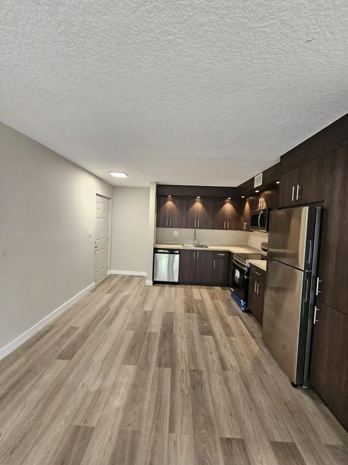 Completely renovated from top to bottom! Stunning 2-bedroom, 1-bathroom 3rd-floor corner unit in an investor-friendly community—rent immediately! Featuring a brand-new A/C, new stainless steel appliances, custom modern kitchen with sleek cabinetry, and luxury vinyl plank flooring throughout. Bright and airy layout with updated bathroom and fixtures. Walking distance to Palm Beach Outlets and minutes to I-95, beaches, and downtown West Palm Beach. A perfect opportunity for both investors and end users!
