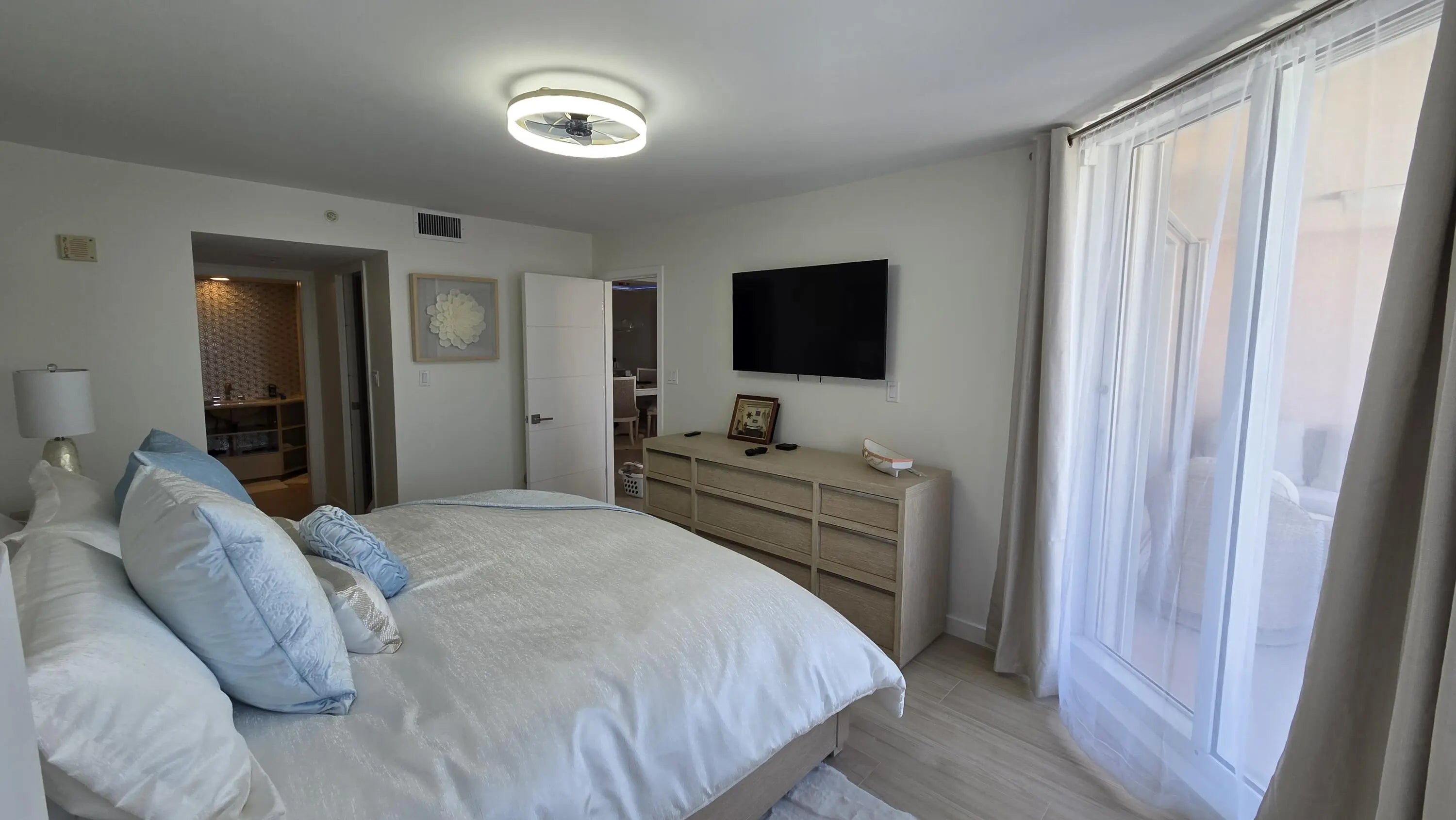 Beautiful, fully renovated 5th Floor 2 bedroom, 2 bathroom condo with Marina and Intra Coastal Views for rent in Ocean Harbor North. 2 pools, pickle ball, tennis, direct access to private beach. Smart Home with smart appliances, smart master shower and toilet. Ocean Views from the kitchen and second bedroom. Enjoy sunrises from the beach and sunsets on your balcony.