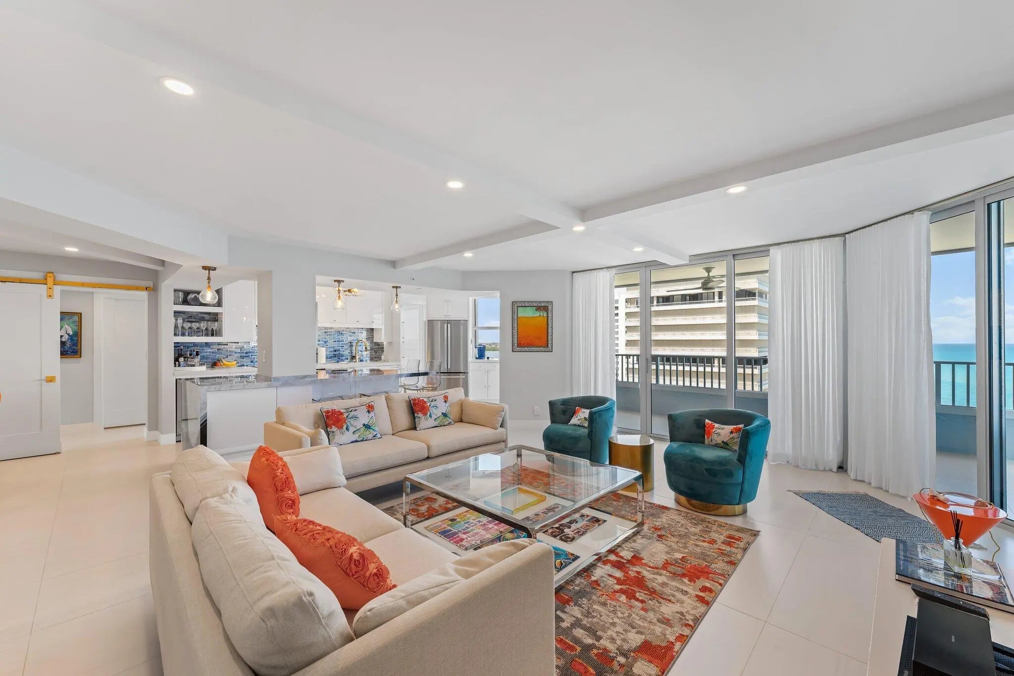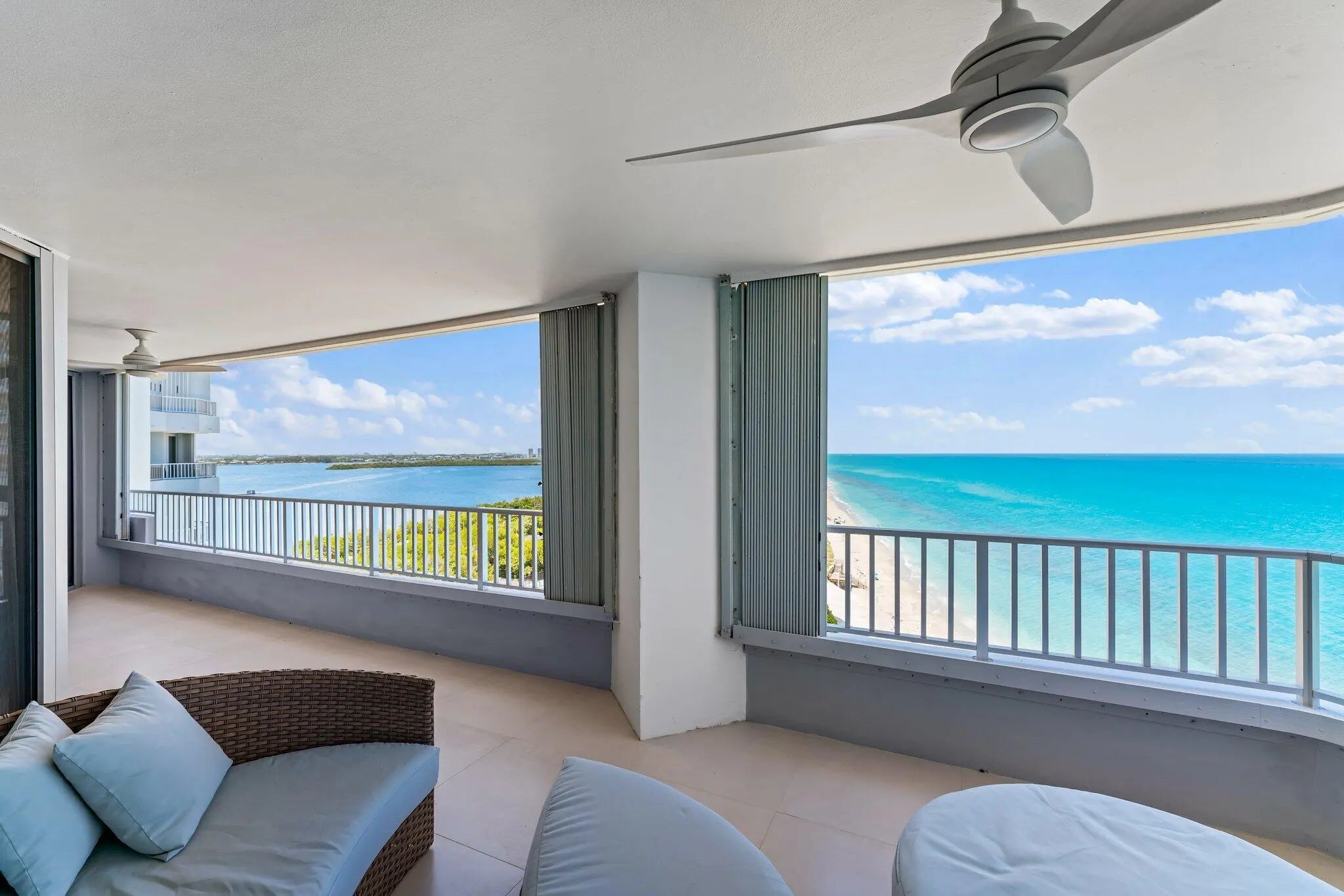 Looking for the finest in oceanfront living next season? Condo just went through a complete renovation with hi end finishes including furnishings and artwork. Enjoy relaxing on the extra large patio with beautiful direct ocean plus Intracoastal views. Split bedroom plan offers King in owners suite and two Queens in guest suite. Features new large Samsung TV's in bedrooms & living area w/ two cordless Sonos music speakers. Fully stocked kitchenware plus beverage and wine bar. Two sets of sheets for all beds plus beach towels. 24 hour Concierge. One garage space plus guest parking. Community features fitness center w/ ocean views plus tennis. No pets allowed per building.
