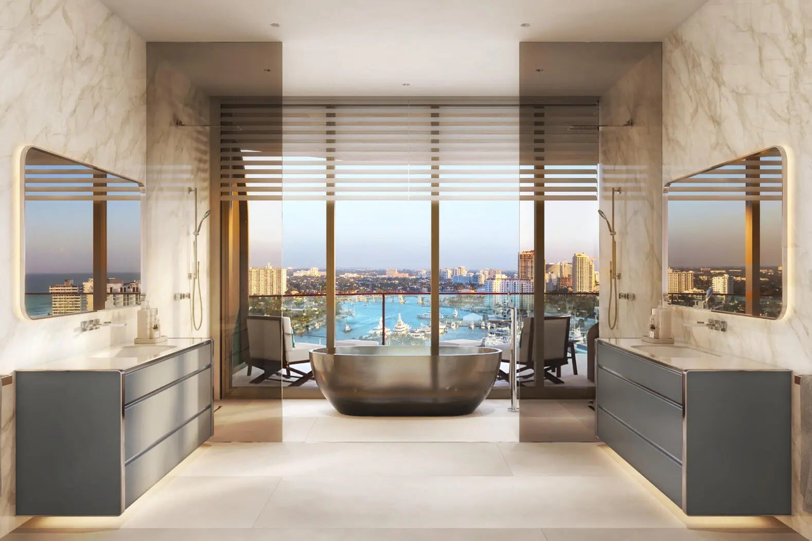 Introducing the first yacht-branded residence, drawing on the legacy of world-class yachting lifestyle company Riva Yachts, is Riva Residenze. A careful and thorough expression of unique yacht design and understated modern style, envisioned in 36 luxury residences that mirror the singular beauty and tranquil rhythm of life on the water. Rising gracefully above the heart of Fort Lauderdale Beach, this boutique waterfront building offers an unparalleled sense of privacy, serenity, and sophistication with 3 levels of amenities, a limited collection of residences and 6 exclusive private dock slips With a cascading façade that mirrors the movement of water, Riva Residenze is thoughtfully positioned to capture panoramic views of the Atlantic Ocean, Intracoastal Waterway, and t he glittering city skyline. A world-class private marina anchors the lifestyle experience, inviting effortless yachting and seamless connection to the sea. Inside each residence, floor-to-ceiling glass and soaring 10- to 11-foot ceilings frame breathtaking views. Expansive outdoor terraces, some spanning up to 12 feet wide, extend the living space into the horizon. Private elevator foyers open to spacious living, dining, and gathering areas with yacht-inspired curved walls, linear edge details, and large-format European stone flooring. The Italian-designed gourmet kitchens are appointed with sleek European countertops and a full Sub-Zero and Wolf appliance suite, including a concealed refrigerator and freezer, gas cooktop with ventilation, convection and steam ovens, wine fridge, and dishwasher, crafted for culinary excellence and aesthetic cohesion. Primary baths are spa-inspired sanctuaries, featuring freestanding soaking tubs and elegant Italian fixtures. Each residence also includes a full laundry room with a side-by-side washer and dryer. Crowning the building are two extraordinary full-floor penthouses, offering almost 9,000 square feet of refined interior space. These sky residences feature panoramic ocean and Intracoastal views, over 4,000 square feet of outdoor living, a private pool, and a fully equipped summer kitchen designed for ultimate indoor-outdoor entertaining. At Riva Residenze, every amenity has been artfully conceived to complement the rhythm of waterfront living with over 20,000 square feet of common area space. The Sky and Sun Decks offer two swimming pool, tranquil lounge areas, a gourmet chef's kitchen and dining room, Jacuzzi, private cabanas, and a poolside summer kitchen for effortless al fresco dining under the South Florida sun. Indoors, the Resident's Salon is a curated collection of luxurious spaces designed for leisure and connection including a private cinema, wine room, library, and a media lounge featuring a professional golf simulator. The Wellness Center rivals the world's finest retreats, featuring a state-of-the-art Techno Gym fitness studio, dedicated yoga and Pilates room, steam room, sauna, heated spa, cold plunge, and a serene restoration lounge. A private spa suite is also available for custom treatments and personal services. For visiting guests, Riva Residenze offers a rare and thoughtful amenity: Cabin Suites, inspired by the staterooms of luxury yachts, providing exclusive accommodations for friends and family with the same attention to detail as the residences themselves. Riva Residenze redefines coastal luxury: a rare harmony of architectural precision, refined materiality, and an enduring connection to the water. *ORAL REPRESENTATIONS CANNOT BE RELIED UPON AS CORRECTLY STATING THE REPRESENTATIONS OF THE DEVELOPER. FOR CORRECT REPRESENTATIONS, MAKE REFERENCE TO THIS BROCHURE AND TO THE DOCUMENTS REQUIRED BY SECTION 718.503, FLORIDA STATUTES, TO BE FURNISHED BY A DEVELOPER TO A BUYER OR LESSEE This is not intended to be an offer to sell, or solicitation to buy, condominium units to residents of any jurisdiction where prohibited by law, and your eligibility for purchase will depend upon your state of residency. This offering is made only by the prospectus for the condominium and no statement should be relied upon if not made in the prospectus.