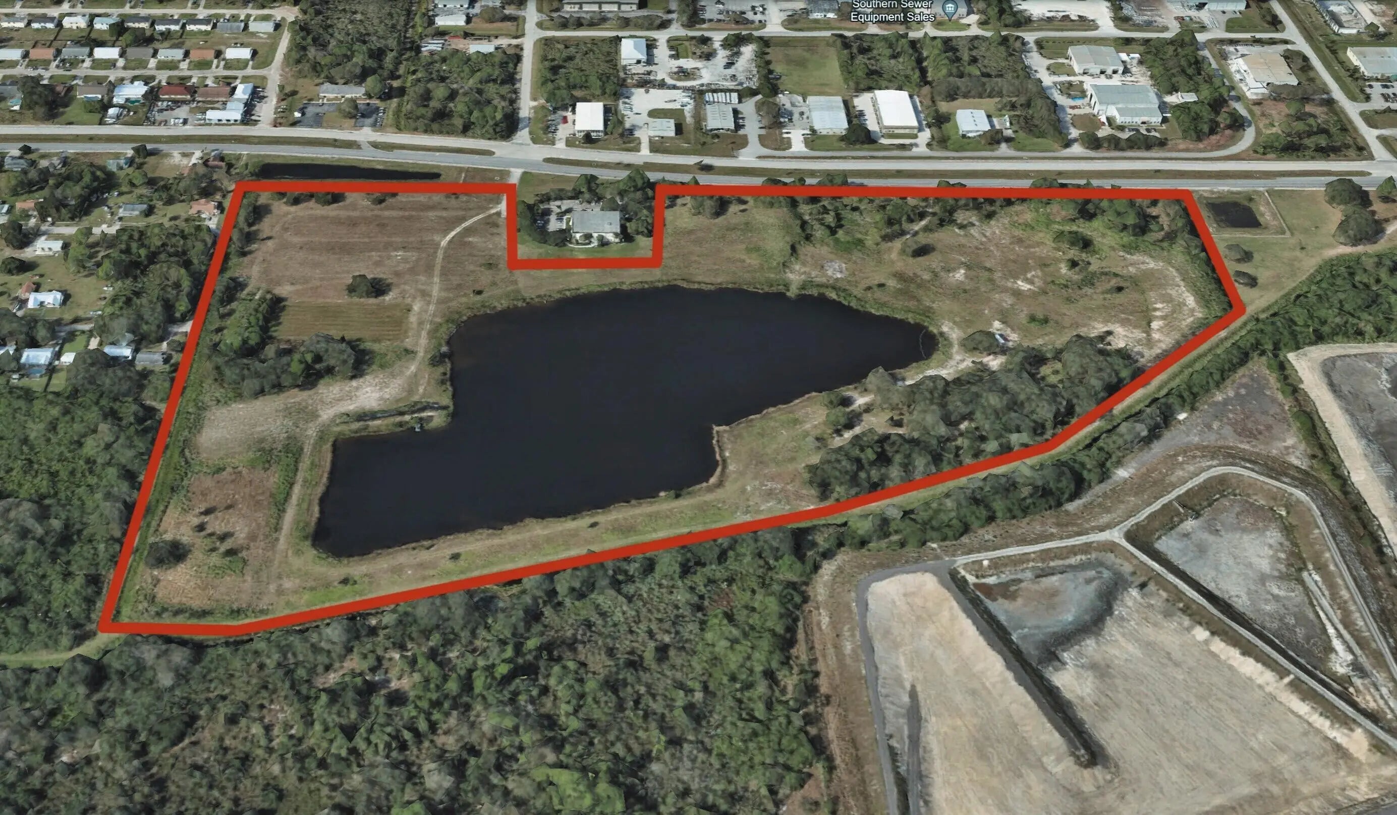 44.57 acres of land zoned IX-Industrial Extraction, with Industrial FLUC land Use. A 11,476 Class B Office Bldg on 1.35 acres is available separately. The owner has plans for 100,000 SF of whse. and concept plans for RV Storage and truck parking. Also a concept plan for a 250-space RV Campground uses the office building as a clubhouse. The RV Campground requires both a land use and zoning change. The industrial uses require a zoning change to Industrial. The future land use is industrial. The site has city water, sewer, and a lift station. DD docs are available including site plans, surveys, environmental reports: underground, architectural plans, and more. The SE 4.99 acres has rock, catch basins, and drainage for 2 buildings, 52,000 sf. Will work for a Live Local project.