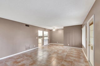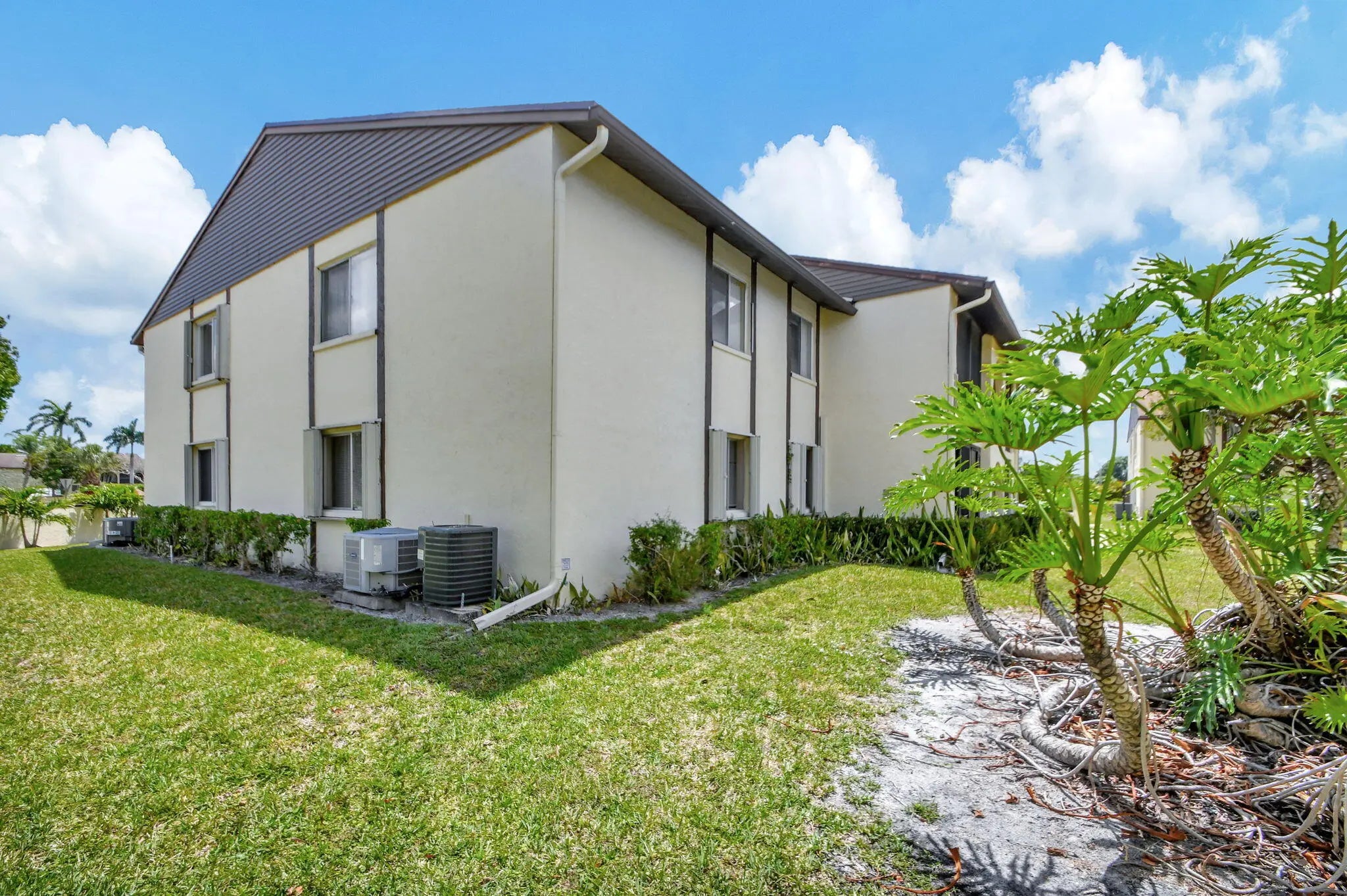 Desirable first floor 2-bedroom condo in a well-maintained 55+ community, just a short walk from the clubhouse and pool. Enclosed front patio with sliding glass doors offers year-round comfort and views of the large serene grass courtyard. Features include ceramic tile throughout, two-tone paint, and a large living/dining area. Renovated kitchen (2023) with white shaker cabinets and slow close doors, granite counters, stainless sink, new plumbing, LED lighting, flat-top range, microwave, dishwasher. Utility room with washer/dryer. Updated full bath (2023) with modern vanity, Kohler fixtures, LED lighting, and high-efficiency toilet. Brand New electrical panel installed and permit process is pending approval from City. Additional powder room perfect for guests. Walk-in closets in both bedrooms. Accordion hurricane shutters installed. One full-time resident must be 55+, additional occupants 35+.