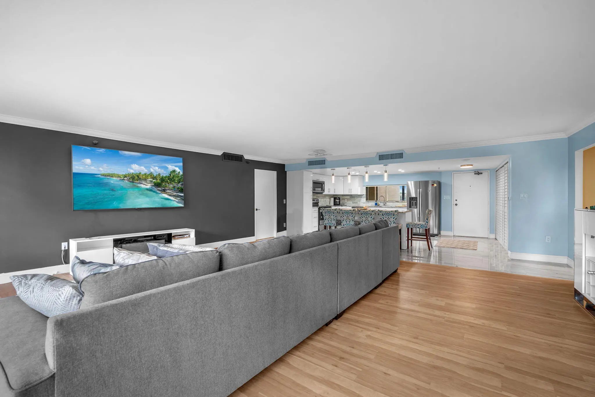 Welcome to 2480 Presidential Way unit 303, where style, comfort, and convenience come together in a fully remodeled space you'll be proud to call home. This 2-bedroom, 2-bath condo on the third floor has been thoughtfully updated from top to bottom with modern finishes and a clean, fresh aesthetic. The split-bedroom layout offers privacy, while the open-concept living and dining area is perfect for everyday living or weekend hosting. The kitchen shines with sleek updates, and the private balcony adds that extra space to enjoy a breeze or a quiet moment. Located in a secure, well-maintained building with great amenities, you're just minutes from downtown West Palm Beach, the beach, shopping, dining, and I-95.