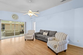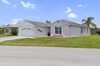 Welcome to the wonderful community of Spanish Lakes! This lovely, move-in ready home offers the perfect blend of comfort and Florida charm. Inside, you'll find three bedrooms and 2 bathrooms, along with a convenient two-car garage. The highlight is an amazing Florida room, ideal for relaxing and entertaining guests.This home also features practical updates, including a new AC unit installed in 2024 and a newer hot water heater. It's also available partially furnished for an easy transition. For added peace of mind, accordion storm shutters are installed throughout. This property is on a land lease within an active community, offering resort-like amenities in a beautiful and quiet setting. The monthly lot rent is an attractive $595.86. Spanish Lakes boasts a fantastic location, close to a variety of shopping options and excellent restaurants, allowing you to truly enjoy the Florida lifestyle. Come and experience the best of Florida living today!