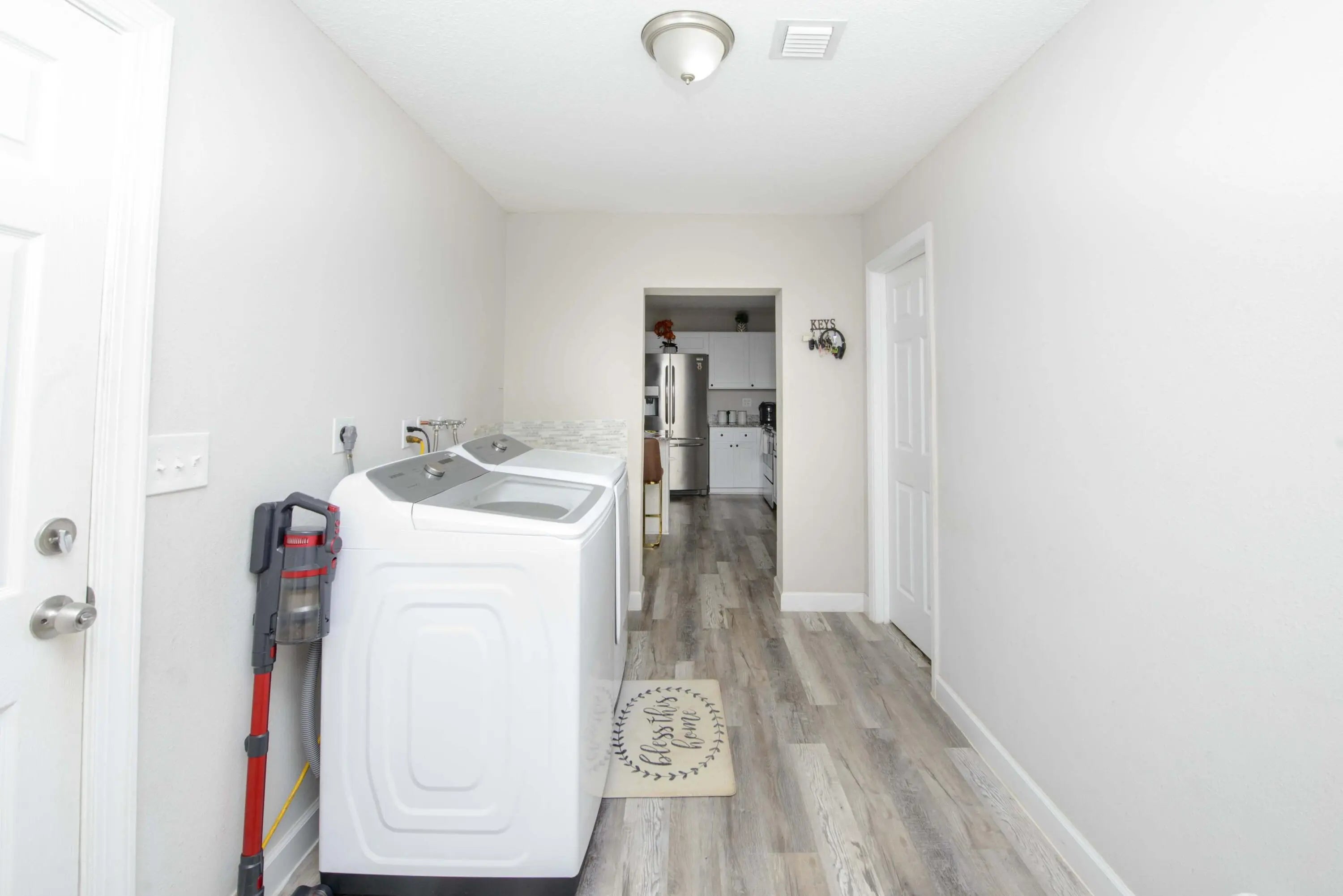 Experience the charm of country living in this well-maintained two-story home situated on a spacious 0.39-acre corner lot. The flexible floor plan offers the option of a primary suite on either the main or upper level, catering to various lifestyle needs. The kitchen features granite countertops and a central island, complemented by barn wood-style luxury vinyl plank flooring throughout the home. All 2.5 bathrooms are equipped with updated vanities and fixtures. The oversized two-car garage provides ample space beyond standard dimensions, suitable for storage or a workshop. The generous lot offers ample room for a flower or vegetable garden, allowing you to create your own outdoor oasis. Located with easy access to major highways, including the Turnpike and I-95, this home combines the tranquility of country living with modern conveniences.
