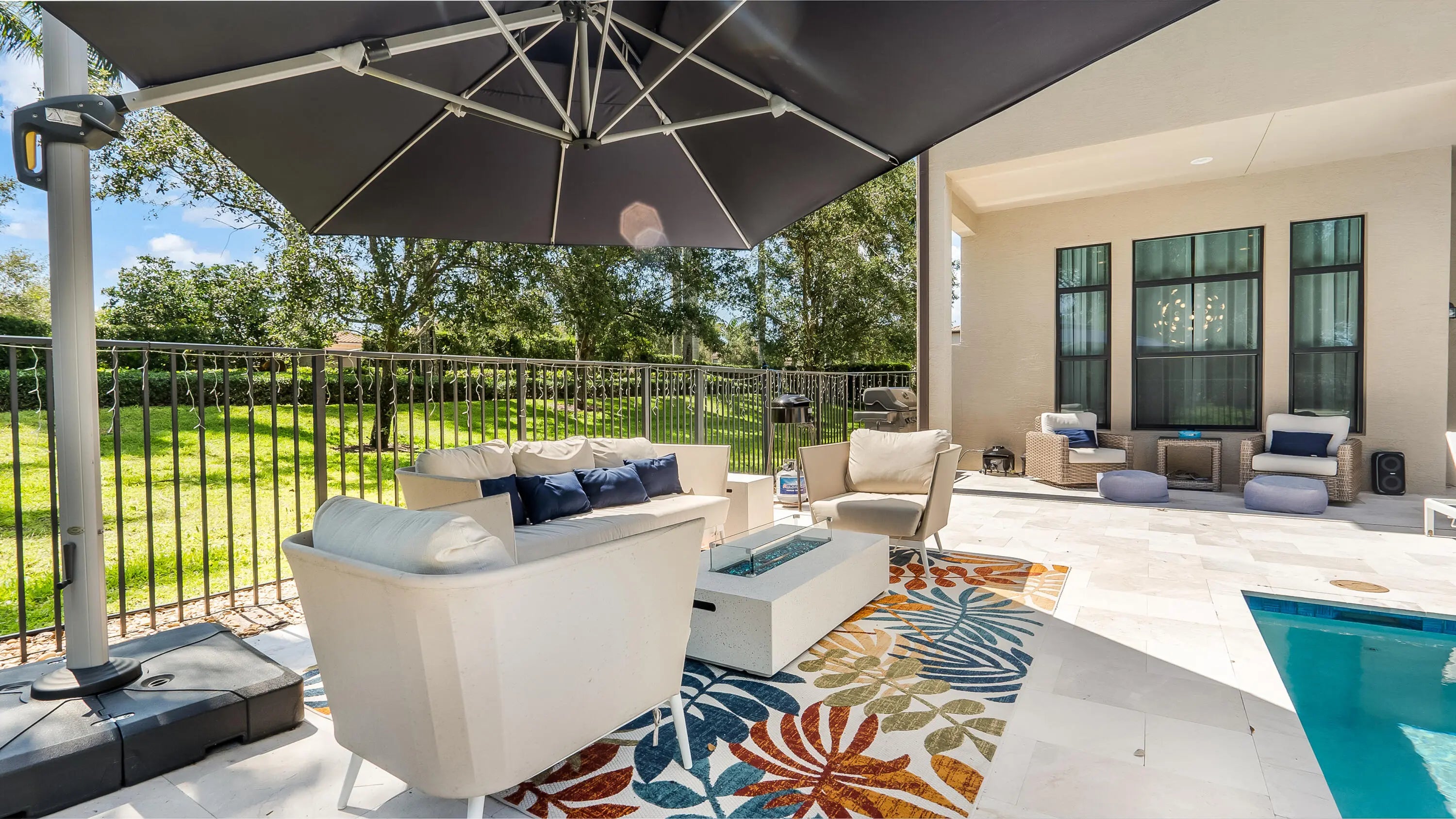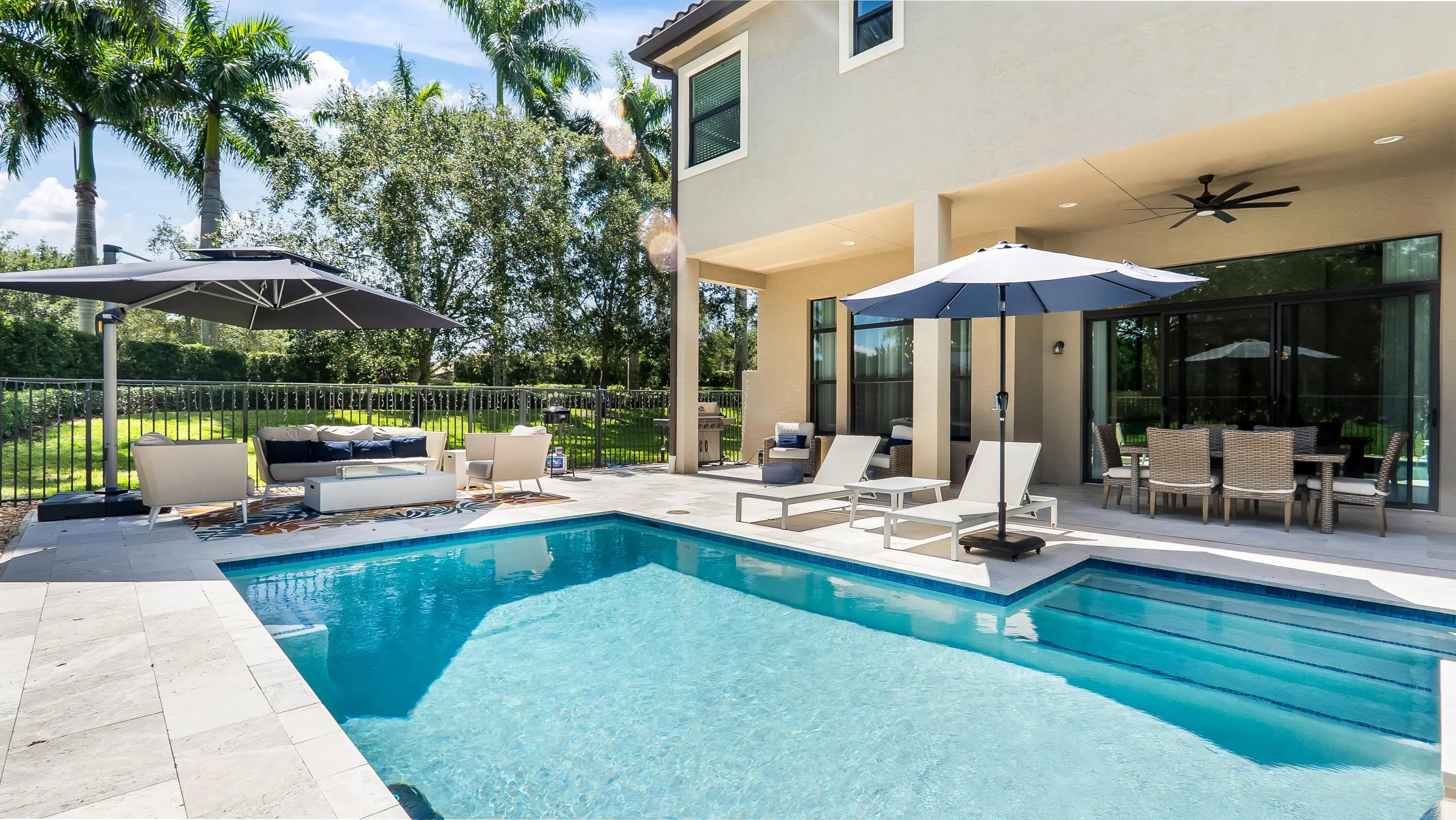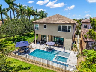 Located in the prestigious, gated community of The Bridges in Delray Beach, this Sanibel model is the perfect blend of elegance, space, & functionality. With 5 bedrooms, 7.5 bathrooms, a 3-car garage, & almost 5,200 square feet under air, this 2-story estate offers luxurious living on a desirable corner lot. Before you even enter the main residence, a courtyard-style approach welcomes you with the option to access a separate clubroom, featuring its own private entry. Perfect for an in-home office, guest quarters, or creative space, this flexible room offers the ultimate in privacy & functionality for today's modern lifestyle. Inside the home, light fills the open floor plan, enhanced by impact glass throughout, 30x30 porcelain tile floors, & refined finishes at every turn. The gourmet kitchen is a showstopper with ceiling-height cabinetry, KitchenAid appliances, & natural gas for the stove, dryer, water heater, & outdoor BBQ. A downstairs bedroom with en suite bath offers a private space for guests or extended family. Upstairs, you'll find the primary suite plus 3 additional en suite bedrooms, providing privacy & comfort for everyone. The primary suite is a true retreat, complete with his-&-her spa-style bathrooms, 2 oversized walk-in closets, & abundant natural light. A spacious loft & full laundry room complete the upper level. Step outside into your private paradise, where a brand-new (2024) saltwater pool & spa awaits. With a sunshelf, waterfall feature, & remote-controlled heating & cooling, this space is built for year-round enjoyment. A cabana bath with shower & a fully fenced yard add both style & convenience. Additional features include two A/C units, & ample storage throughout. Living in The Bridges means access to world-class amenities, including a 17,000+ square foot clubhouse with a full-service restaurant & outdoor bar, resort-style pool with shaded cabanas, a state-of-the-art fitness center, indoor sports complex, & seven lighted tennis courts with on-site pro shop, instructor and NEW pickleball courts being built. Families will appreciate the splash park, shaded playground, game room, & a robust calendar of community events curated by a full-time lifestyle director. This home checks every box for luxury, flexibility, & lifestyleschedule your private showing today & discover everything The Bridges has to offer.